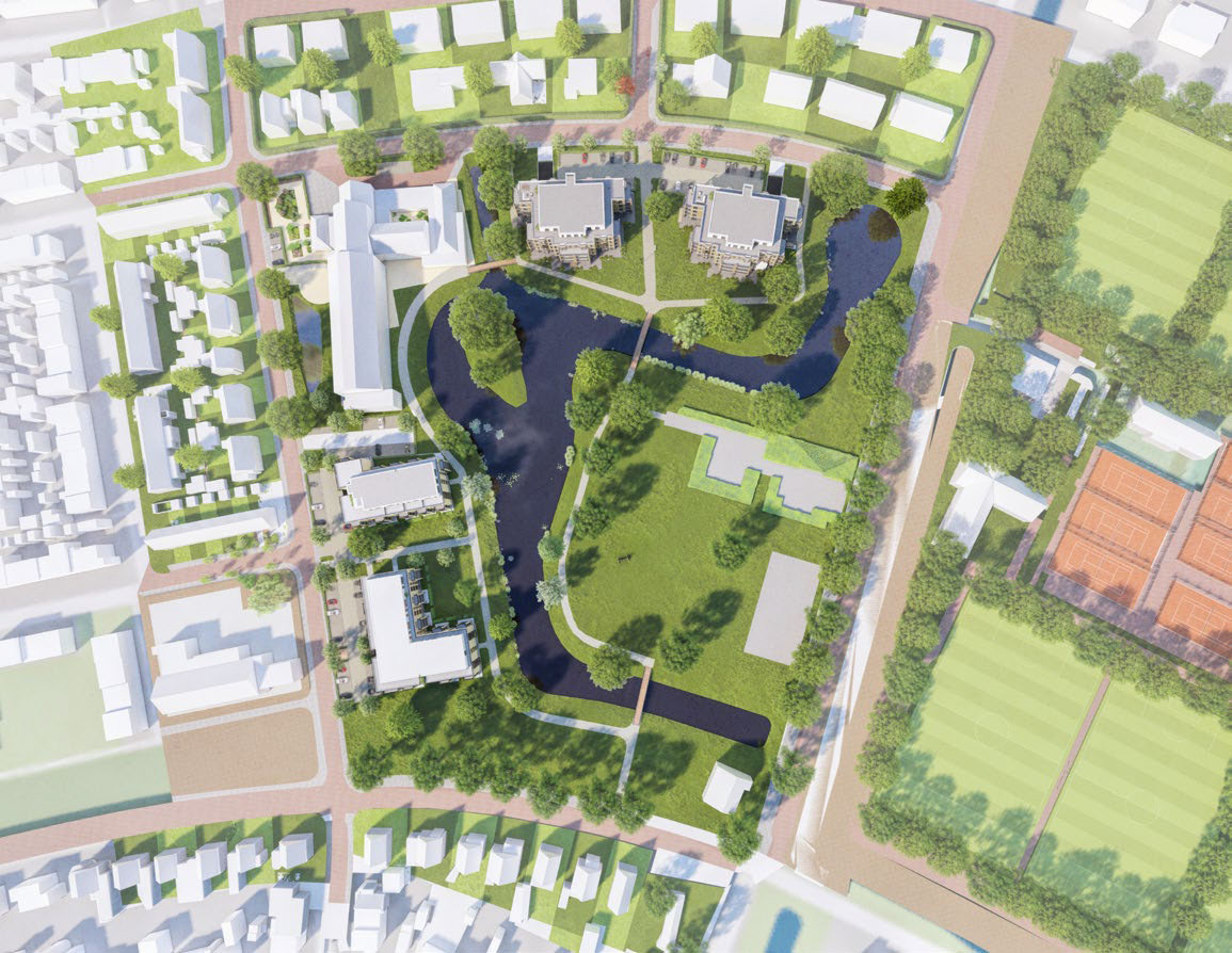 In het plan met de naam ‘Vijverparck’ gaat het om appartementencomplexen met vijf bouwlagen, waarbij de bovenste bouwlaag enigszins inspringt. Dat levert een bouwhoogte van zestien meter op. Twee complexen met een parkeerkelder moeten aan de Piet Heinlaan komen te staan, daarbij gaat het om in 44 luxe koopappartementen. De twee andere complexen komen aan de Hazenboslaan. Daarin moeten 43 sociale- en middeldure huurappartementen en 50 middeldure en dure huurappartementen komen.