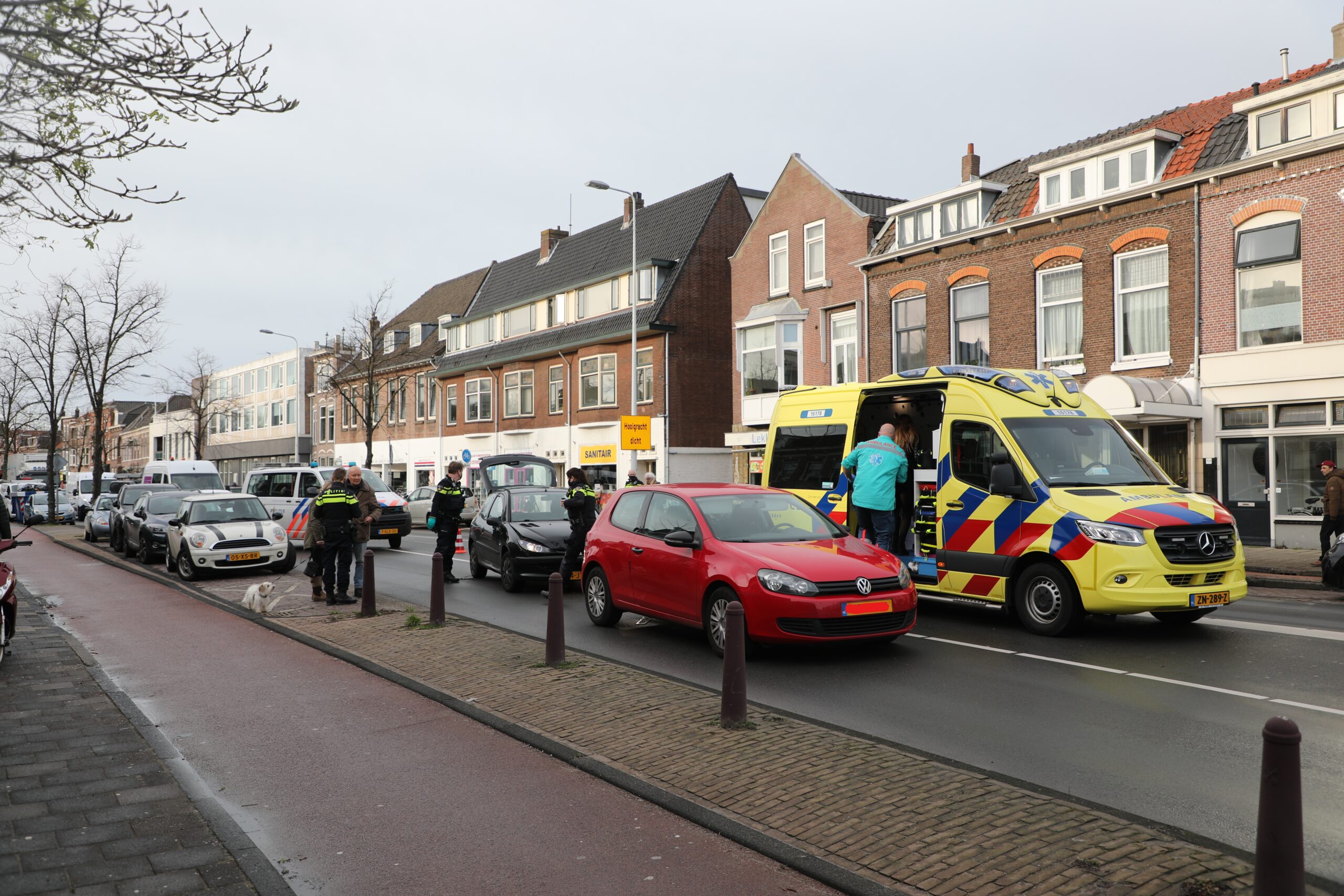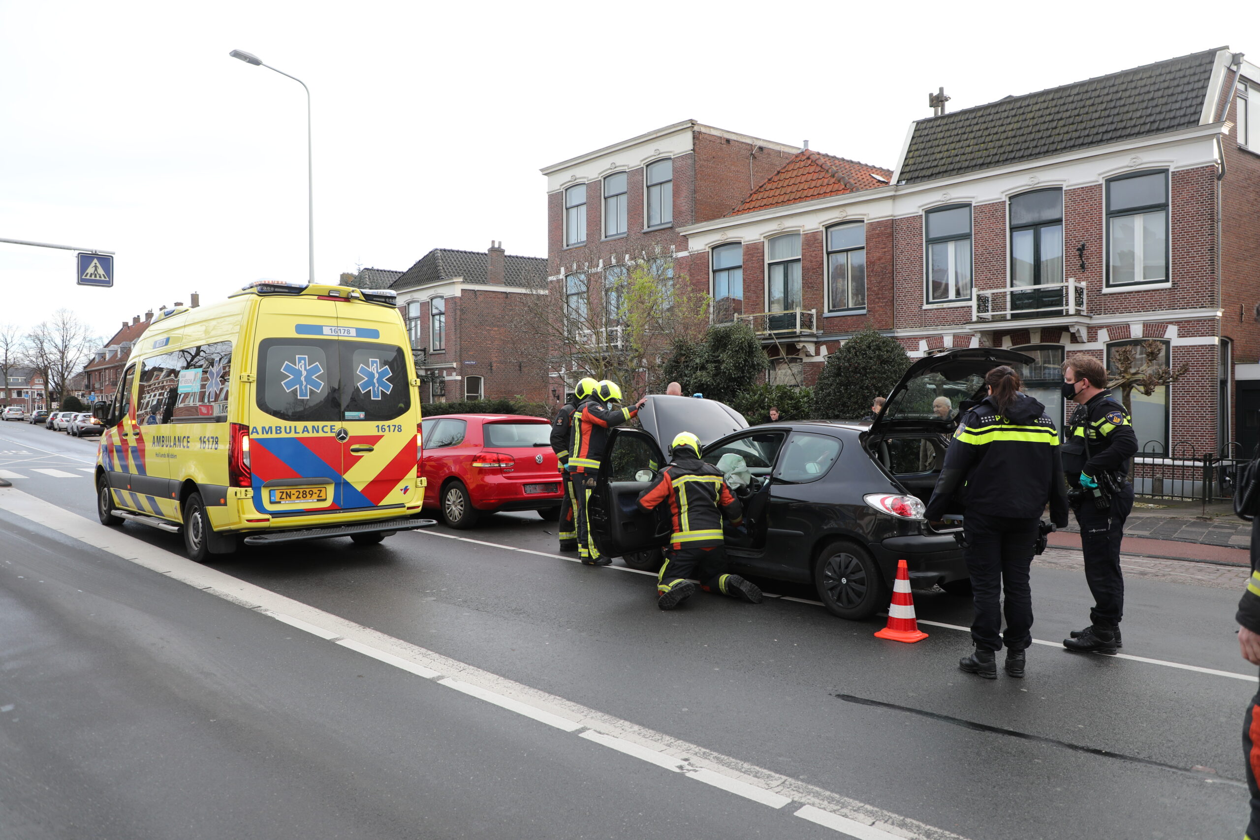 Twee auto’s zijn maandagmiddag betrokken geweest bij een kop-staartbotsing voor een zebrapad op de Hoge Rijndijk in Leiden. Het ongeval vond plaats toen de bestuurster wilde stoppen voor een voetganger die wilde oversteken. De bestuurder van het achterste voertuig zag dit over het hoofd en botste op zijn voorganger.