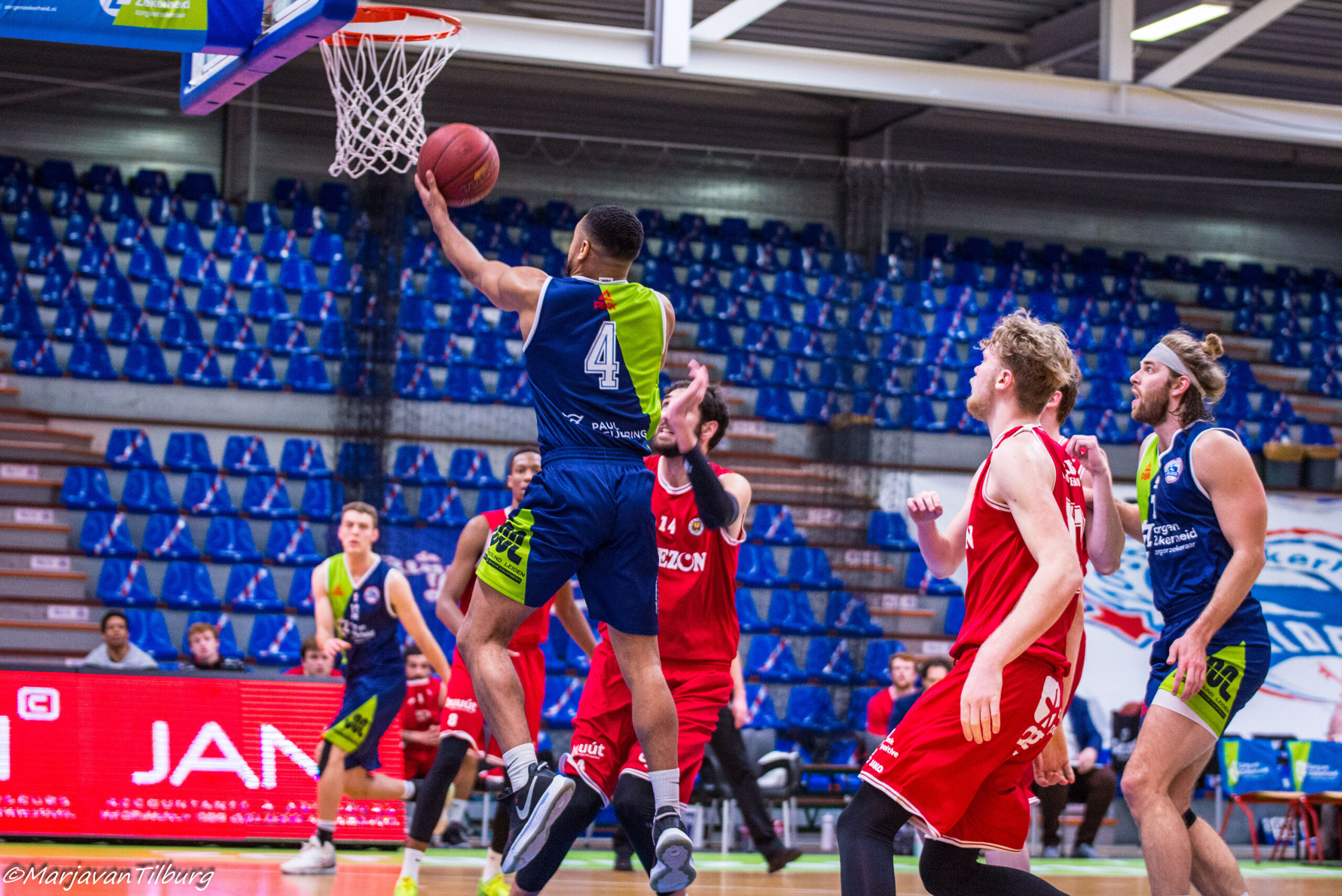 Mede door twee and-1’s en een dunk van Worthy de Jong boog Zorg en Zekerheid Leiden de achterstand om in een voorsprong van 16-11. In het tweede kwart leek de thuisploeg de voorsprong vast te houden. De Jong zette met zijn 14e punt 24-20 op het scorebord. Daarna viel de formatie van coach Hammink vijf minuten stil.