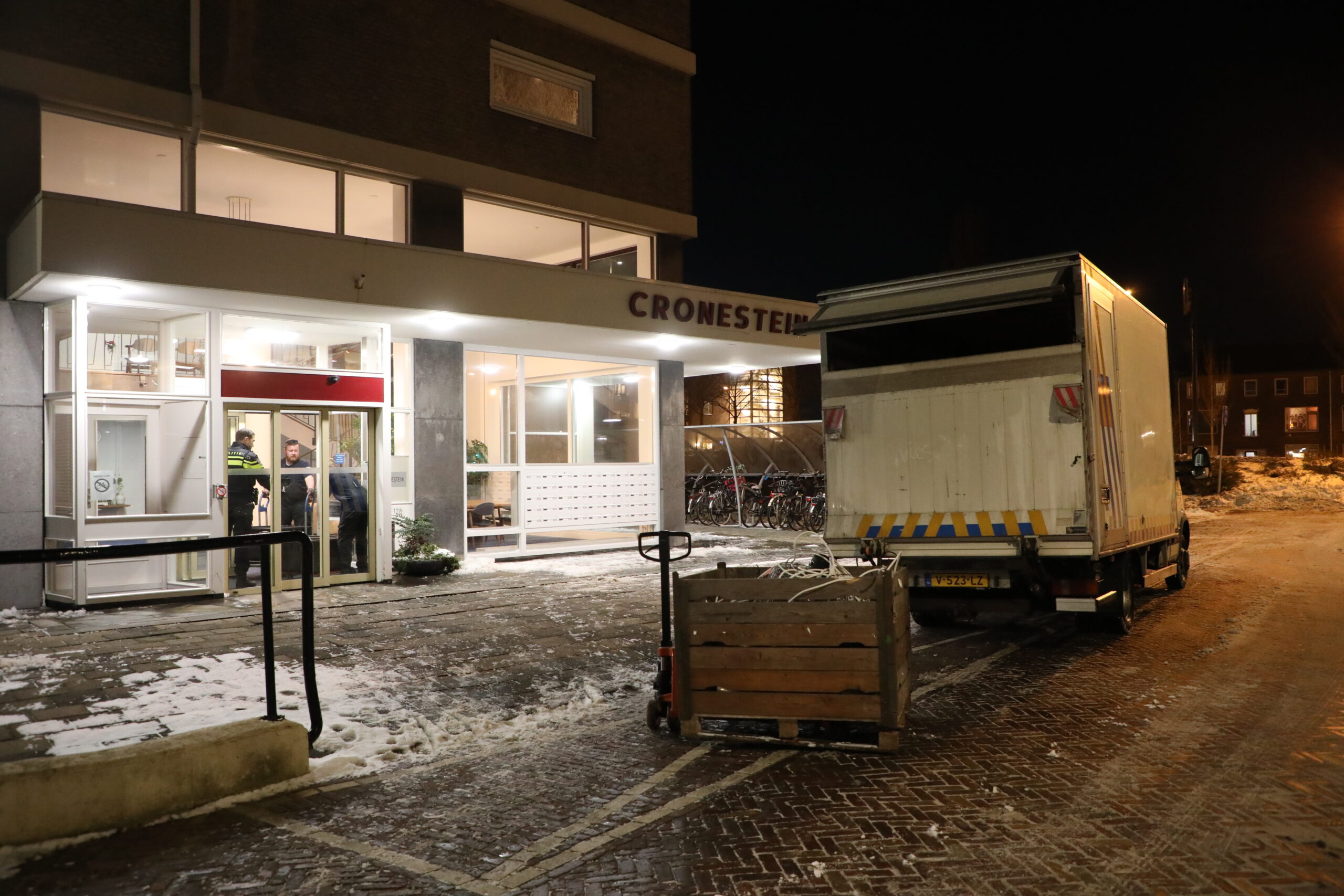 In een appartement van de flat Cronestein heeft de politie vanmiddag een kwekerij ontdekt. Er zijn ongeveer 200 planten aangetroffen die door een hennepteam worden geruimd. Een gespecialiseerd bedrijf in het verwijderen van kweekapparatuur zal de installatie ontmantelen.