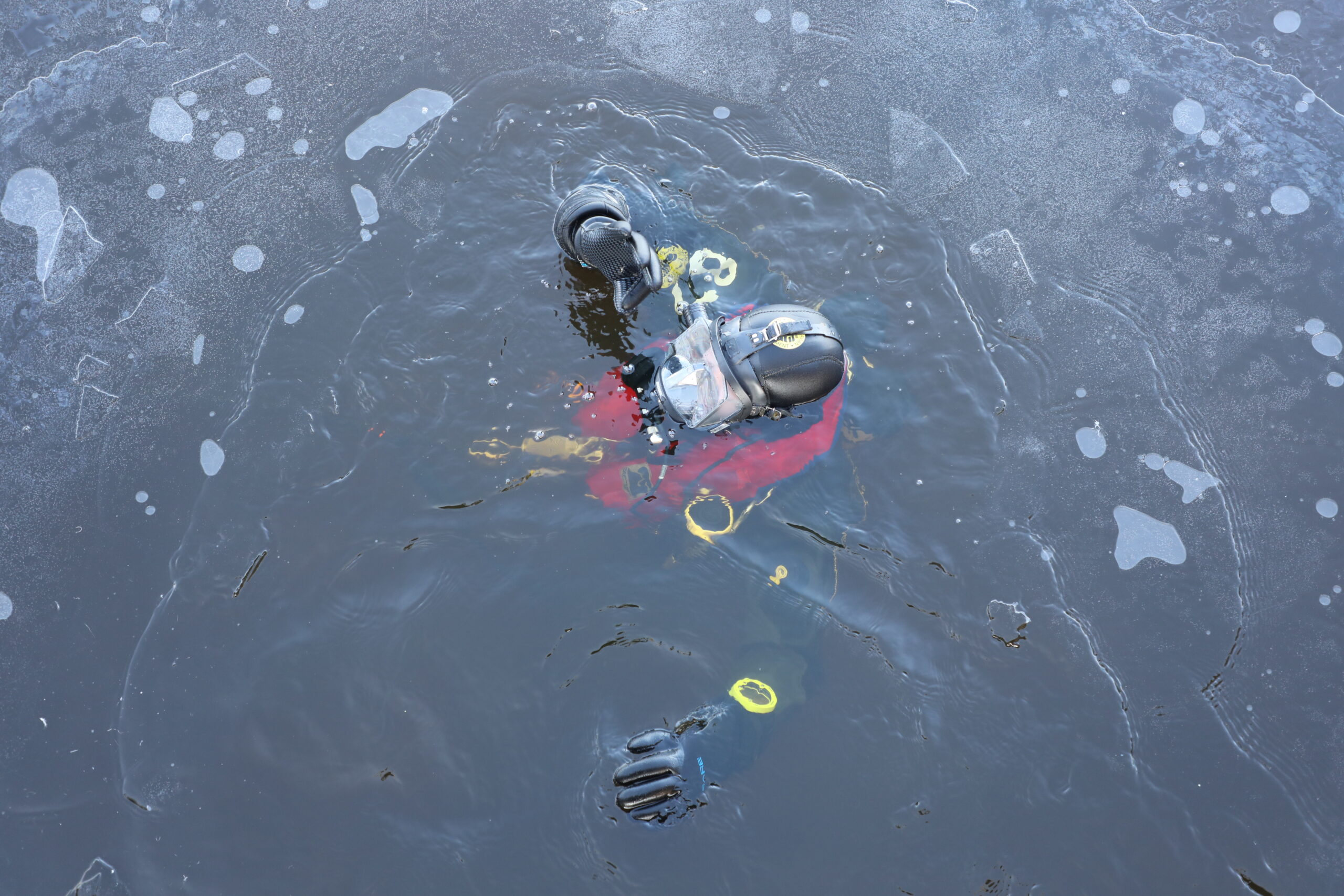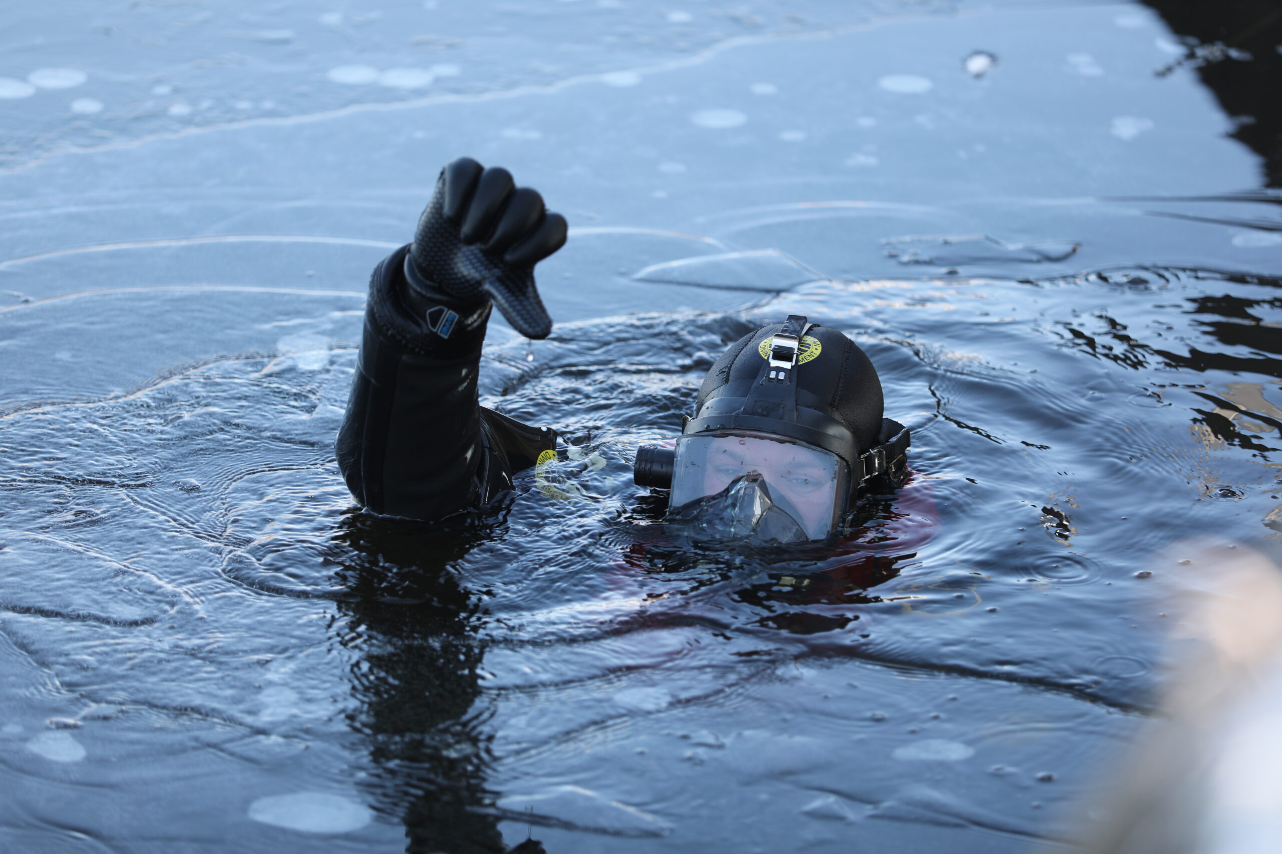 Het duiken via een wak kan doorgaans alleen in een zwembad worden geoefend, dus als er natuurijs ligt, is de brandweer er vaak als de kippen bij om van zo’n gelegenheid gebruik te maken.