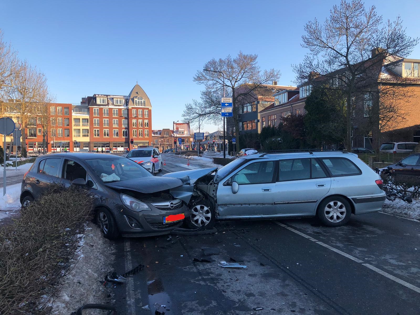 Twee personenauto’s zijn vanmiddag op de Wijngaardenlaan in Voorschoten frontaal met elkaar in botsing gekomen. Eén persoon raakte bij de aanrijding gewond. Het slachtoffer is per ambulance met onbekend letsel overgebracht naar het ziekenhuis.