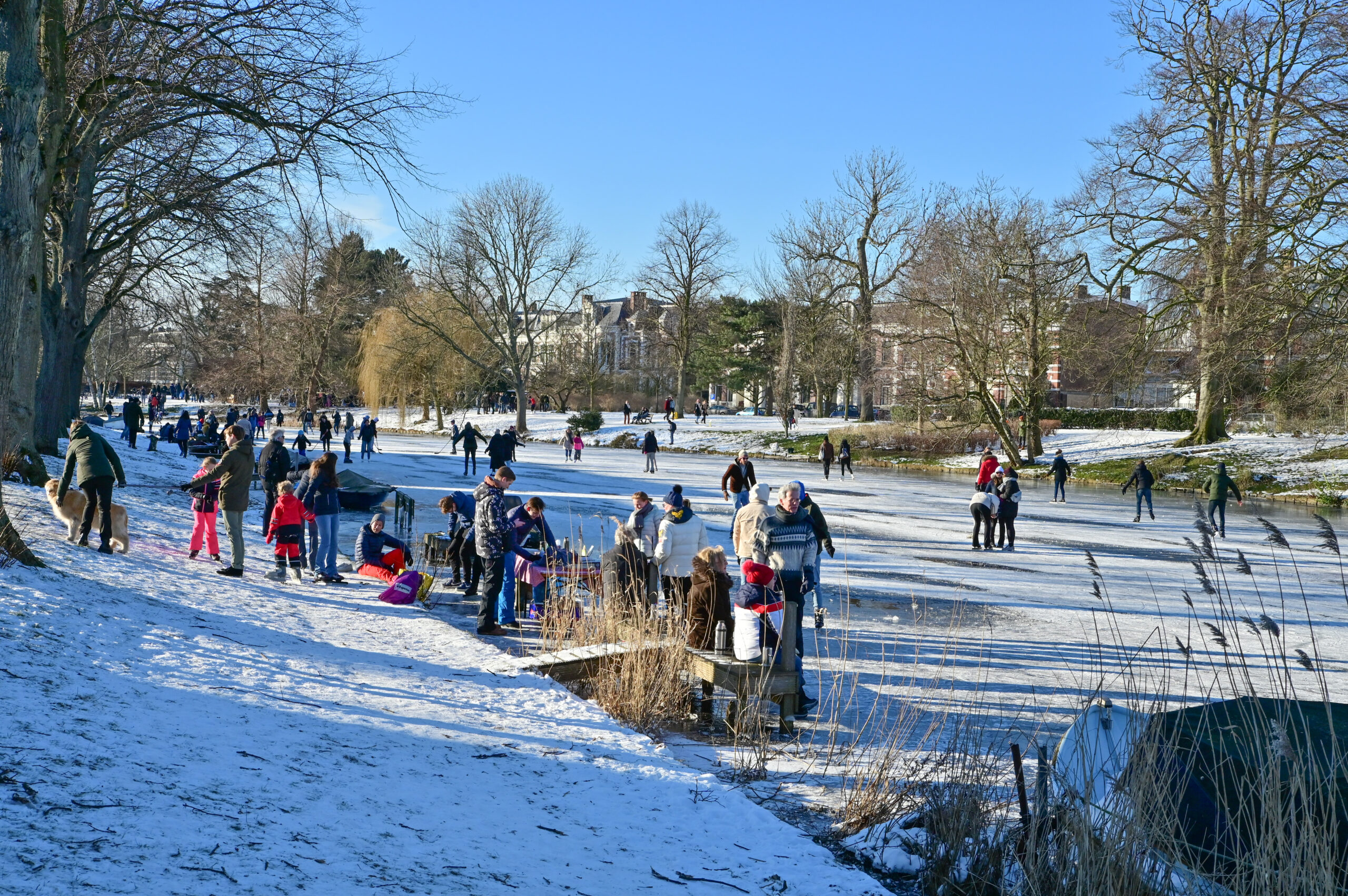 Het ijs op de Zoeterwoudse Singel in Leiden werd vandaag druk beschaatst. Dat trok veel bekijks van mensen in het Plantsoen en er ontstond een goede sfeer op het ijs en daarnaast. Toen in het park een grote groep jongeren met statafels en kratten bier bij elkaar ging staan zonder de coronaregels in acht te nemen, grepen de politie en handhaving in. De groep werd weggestuurd.