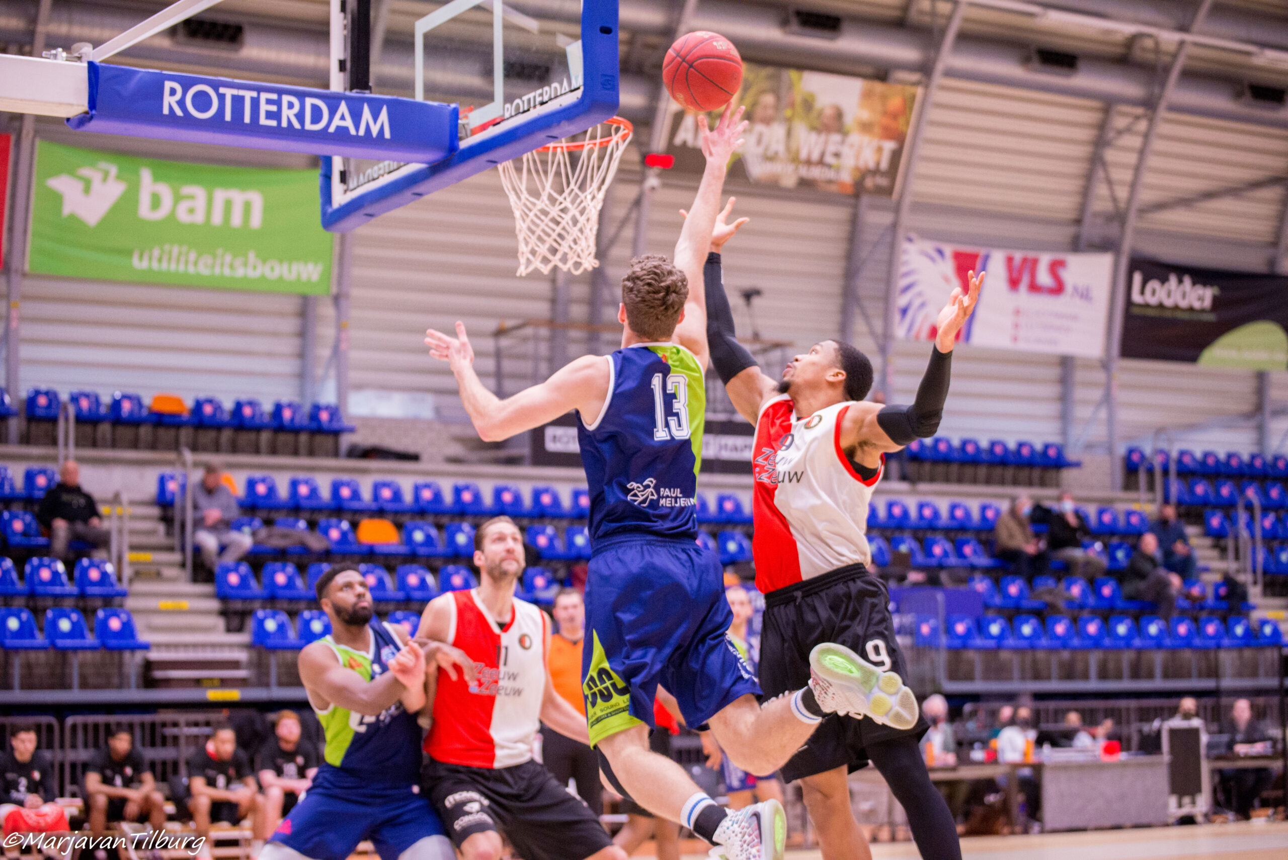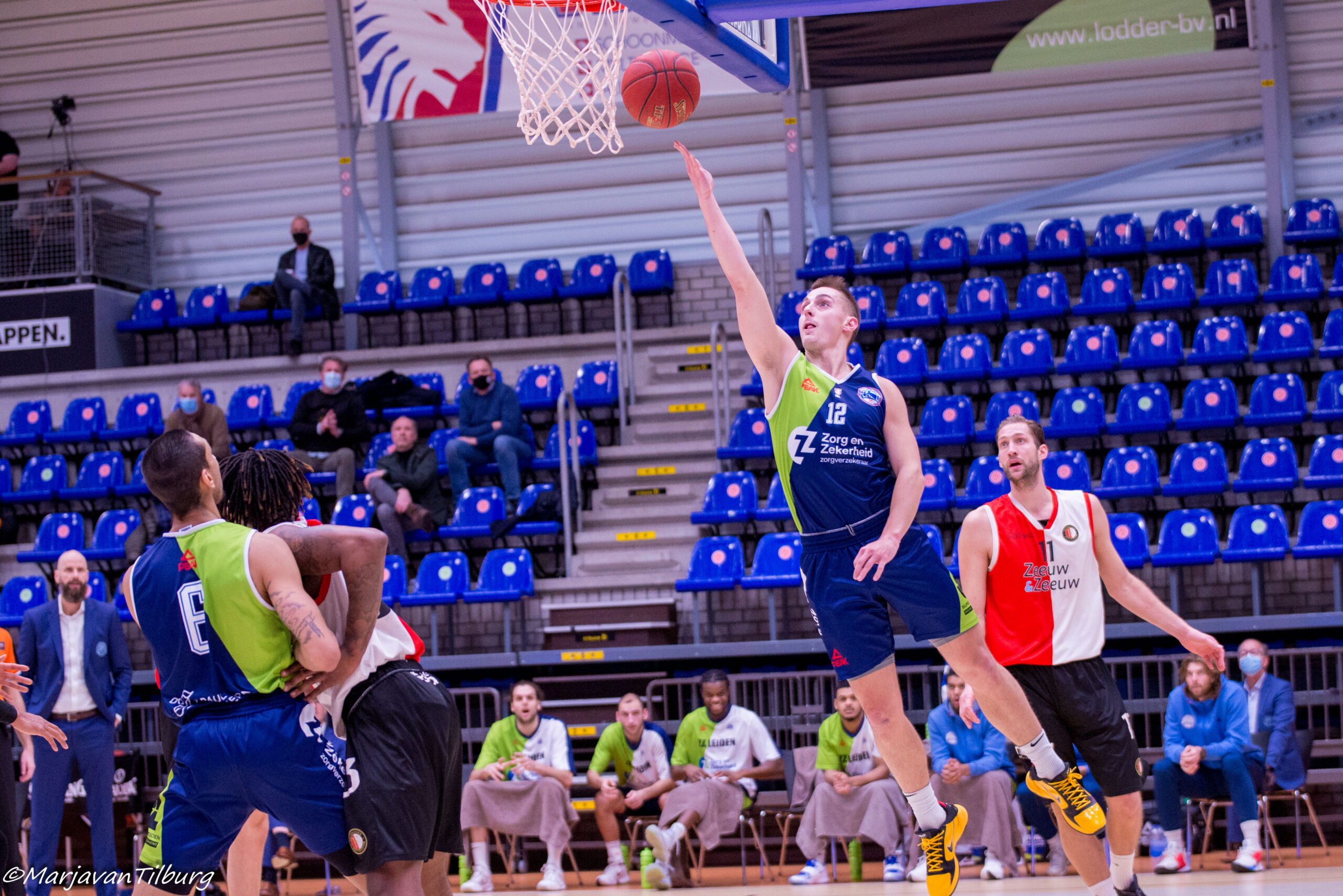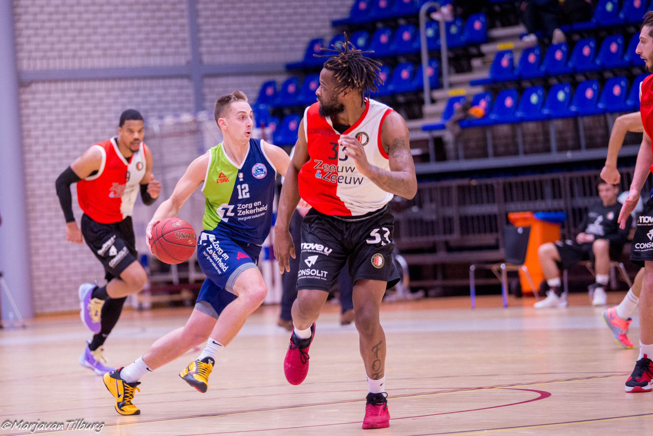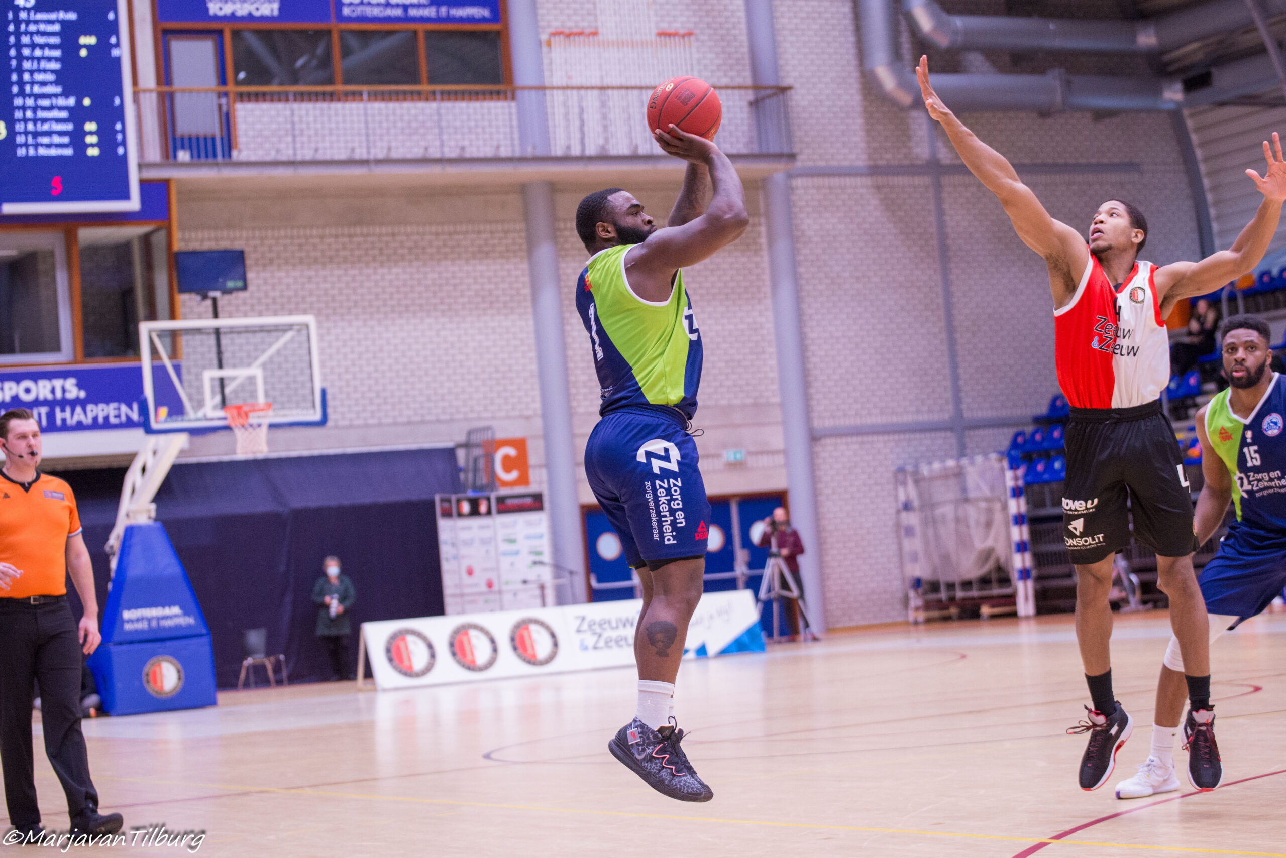 In oktober liep ZZ Leiden nog tegen een forse nederlaag aan in Rotterdam tegen Zeeuw & Zeeuw Feyenoord Basketball, maar daar was gisteren op Valentijnsdag geen sprake van. Luuk van Bree en Worthy de Jong zette de toon met driepunters en een dunk van de ervaren international. Na vier minuten stond er een 9-16 voorsprong op de borden voor de bezoekers uit Leiden.