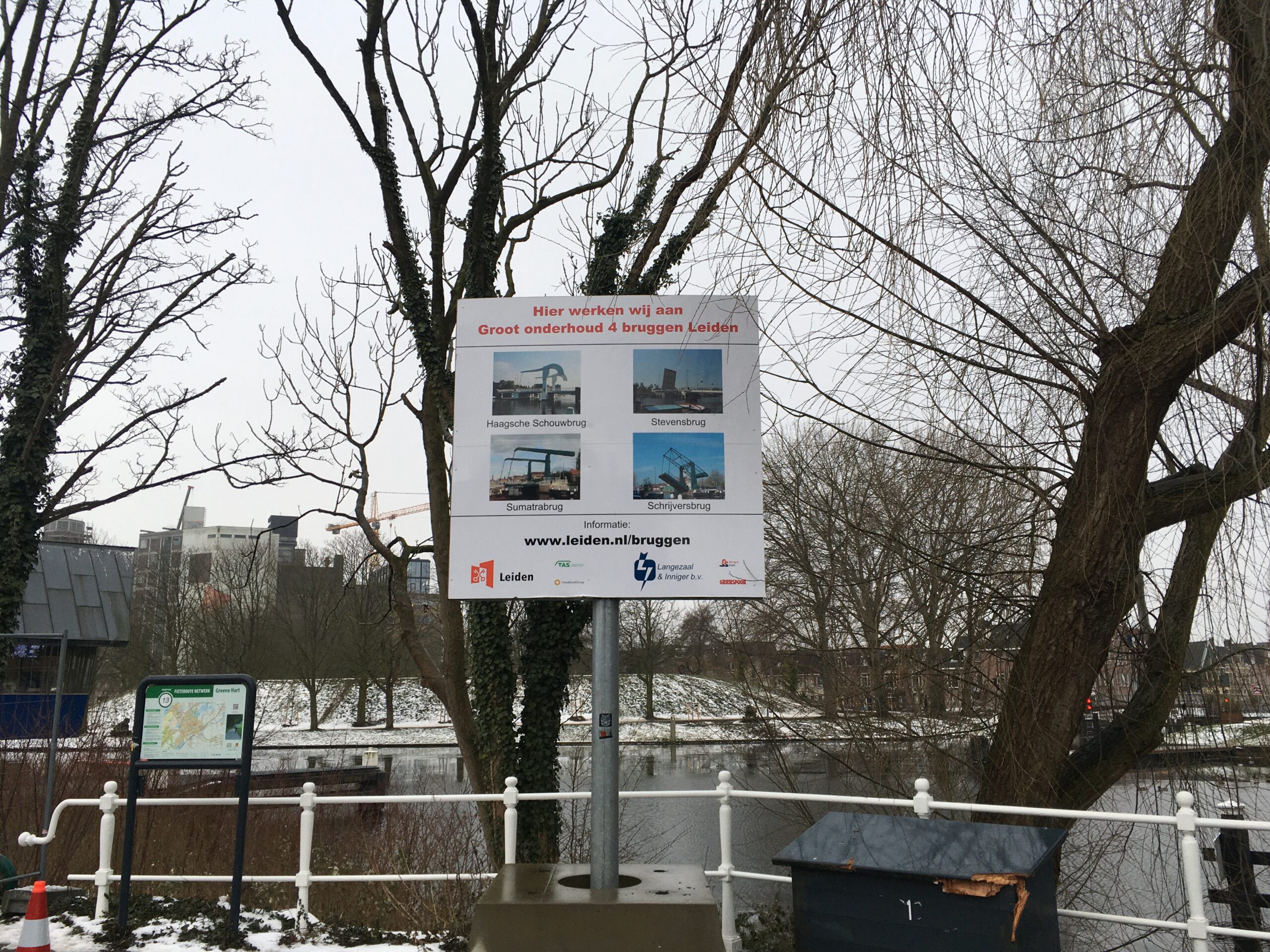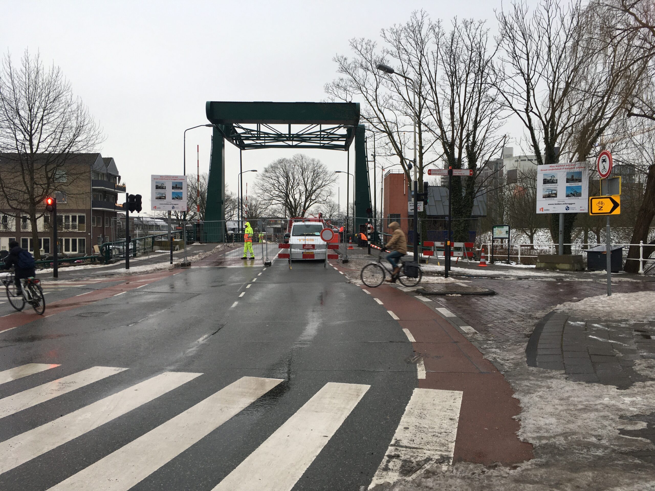 De werkzaamheden aan de Schrijversbrug tussen de Herensingel en de Zijlsingel in Leiden zijn maandagochtend om 7.00 uur begonnen. De brug is tot en met maandag 15 maart afgesloten voor al het verkeer.