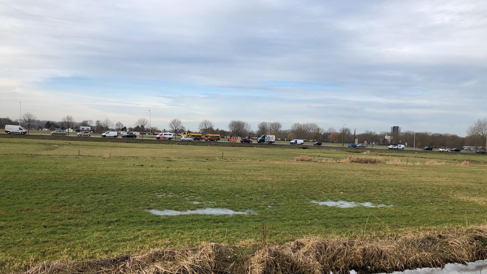 De Europaweg is vanaf de Lammebrug tot aan de snelweg A4 afgezet. Het verkeer richting Leiden wordt over de busbaan geleid zodat het verkeer de andere kant op over de gewone weg kan. “Het rijdt stapvoets door, maar normaal gesproken is het rond dit tijdstip veel rustiger”, zegt Sleutelstad-verslaggever Robbert Beurse ter plaatse.