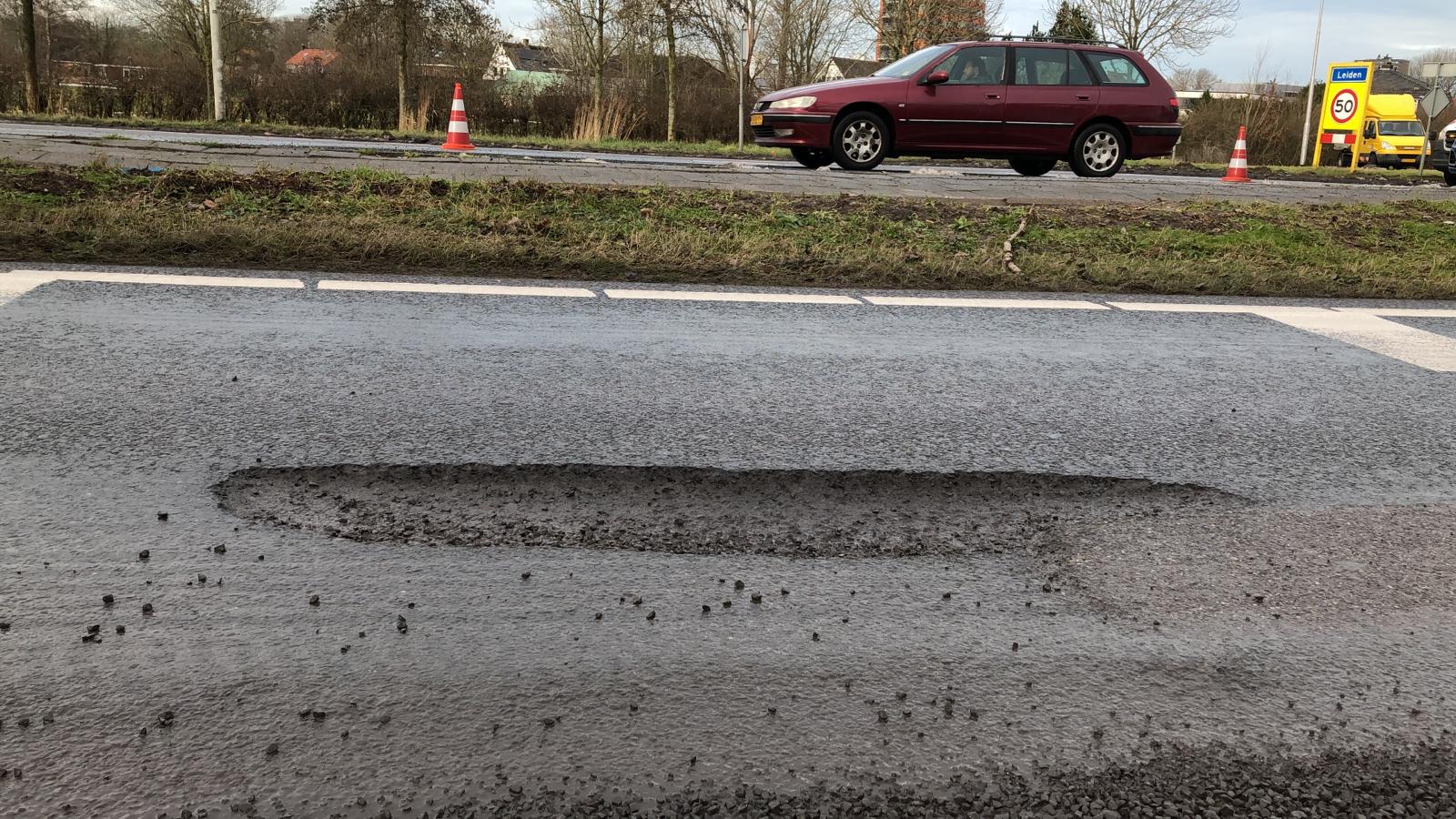 De Provincie Zuid-Holland is naar verwachting nog tot 15.00 vanmiddag bezig met het herstellen van het wegdek.