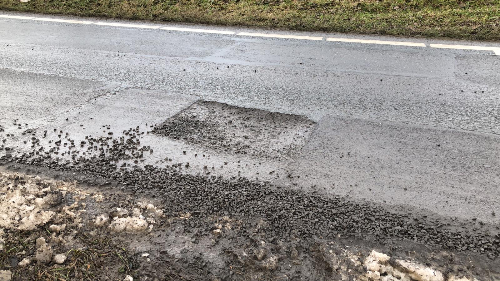 De schade aan het asfalt komt door de kou van afgelopen week, zo meldt Rijkswaterstaat. “Het bindmiddel in het asfalt wordt brosser en er ontstaan scheurtjes. Bij vorst bevriest het water in deze scheurtjes en zet het uit. Daardoor raken meer steentjes los uit het wegdek. Soms leidt het ook tot gaten.