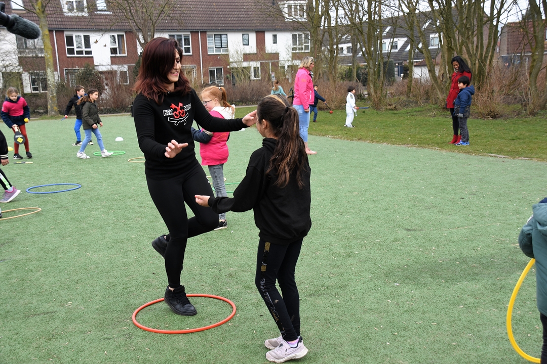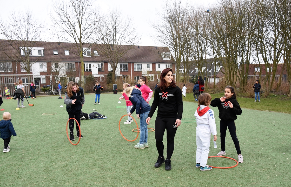 “Mijn sportschool kan nog niet open, maar ik kan niet blijven stilzitten”, zegt Anna Rasouli terwijl de kinderen om haar heen springen van enthousiasme. In de Stevenshof is ze op een veldje bezig met een sport- en spelmiddag voor de jeugd tot 13 jaar. “Ik ben zelf vooral van het judo en de vechtsporten, maar er kan natuurlijk nog veel meer.”