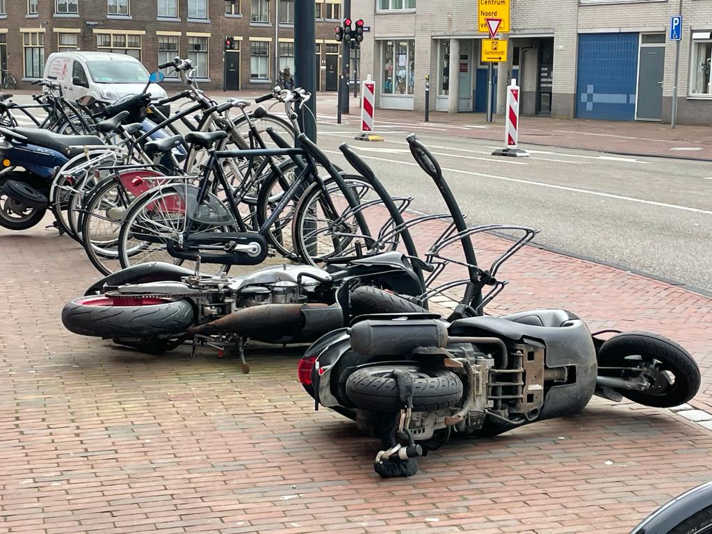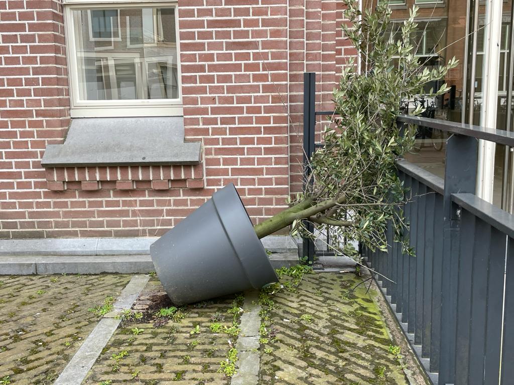 De grote circustent van Gymsport Leiden en Circus Miloco op het voormalige terrein van Leidsche Boys aan de Voorschoterweg is vanochtend door de storm gegrepen en ingestort. Storm Evert kreeg op de Hoge Rijndijk ook een bouwsteiger te pakken. Verder zijn het in de stad voornamelijk fietsen en scooters die ten prooi zijn gevallen aan de storm.
