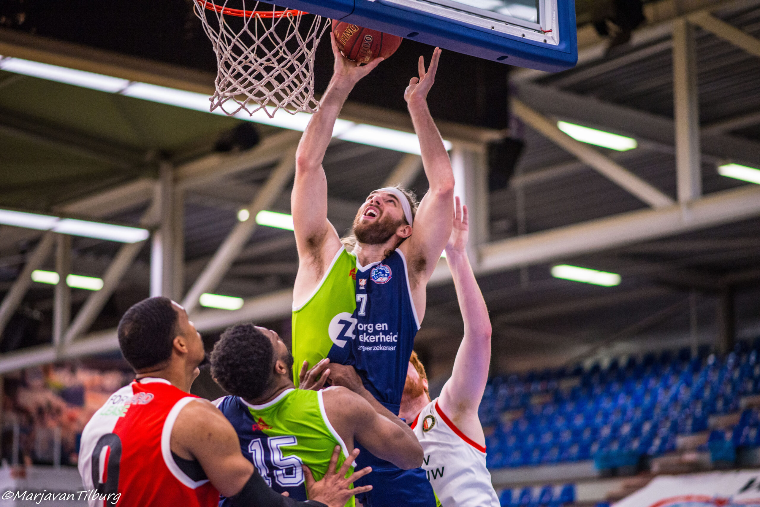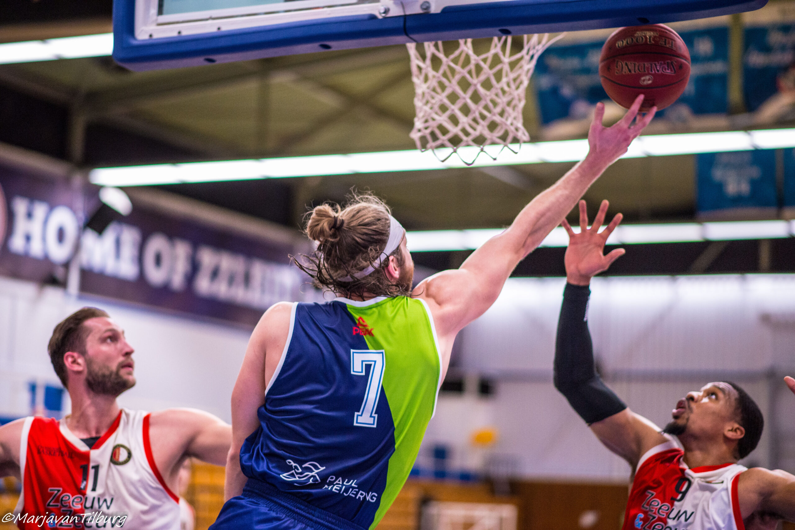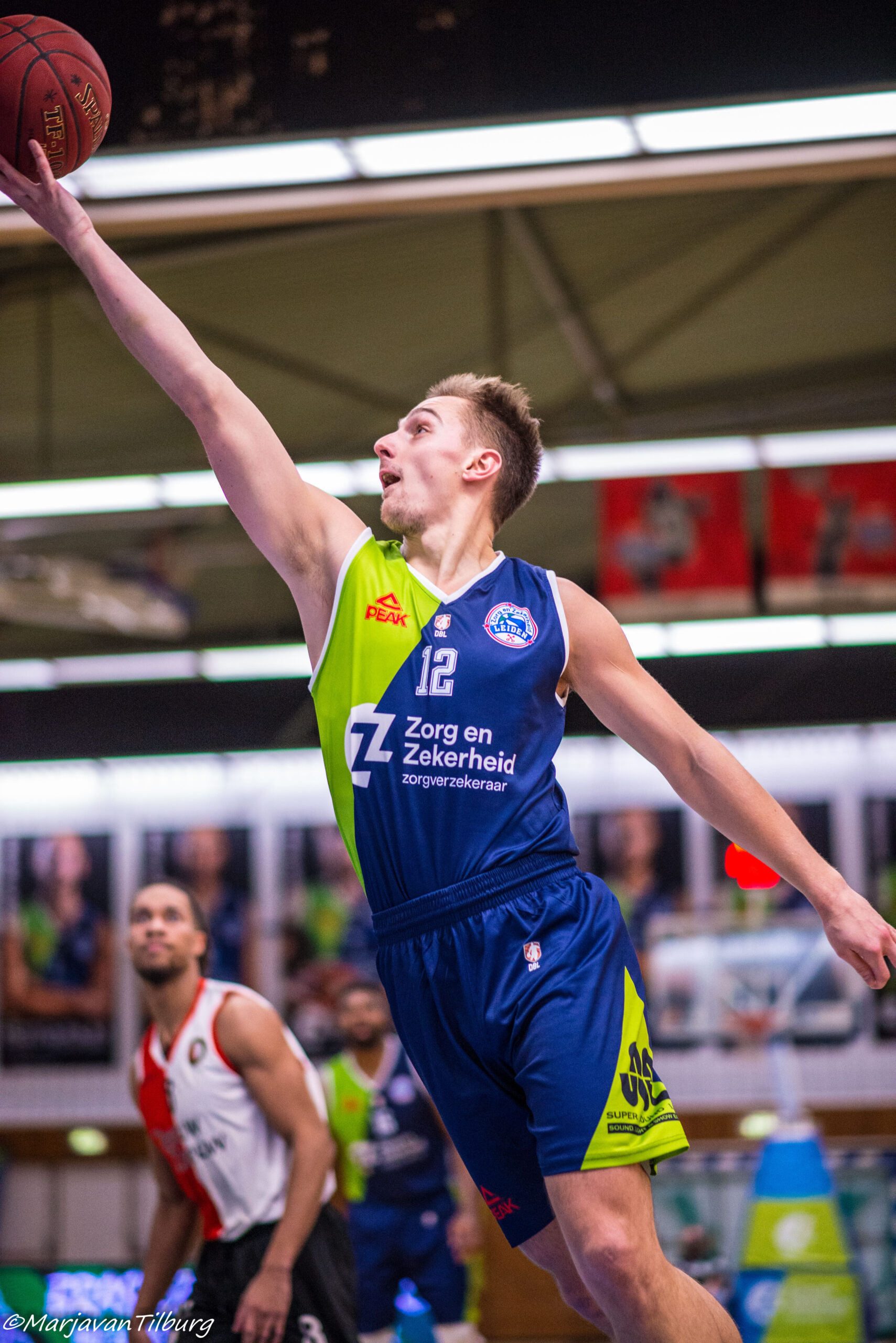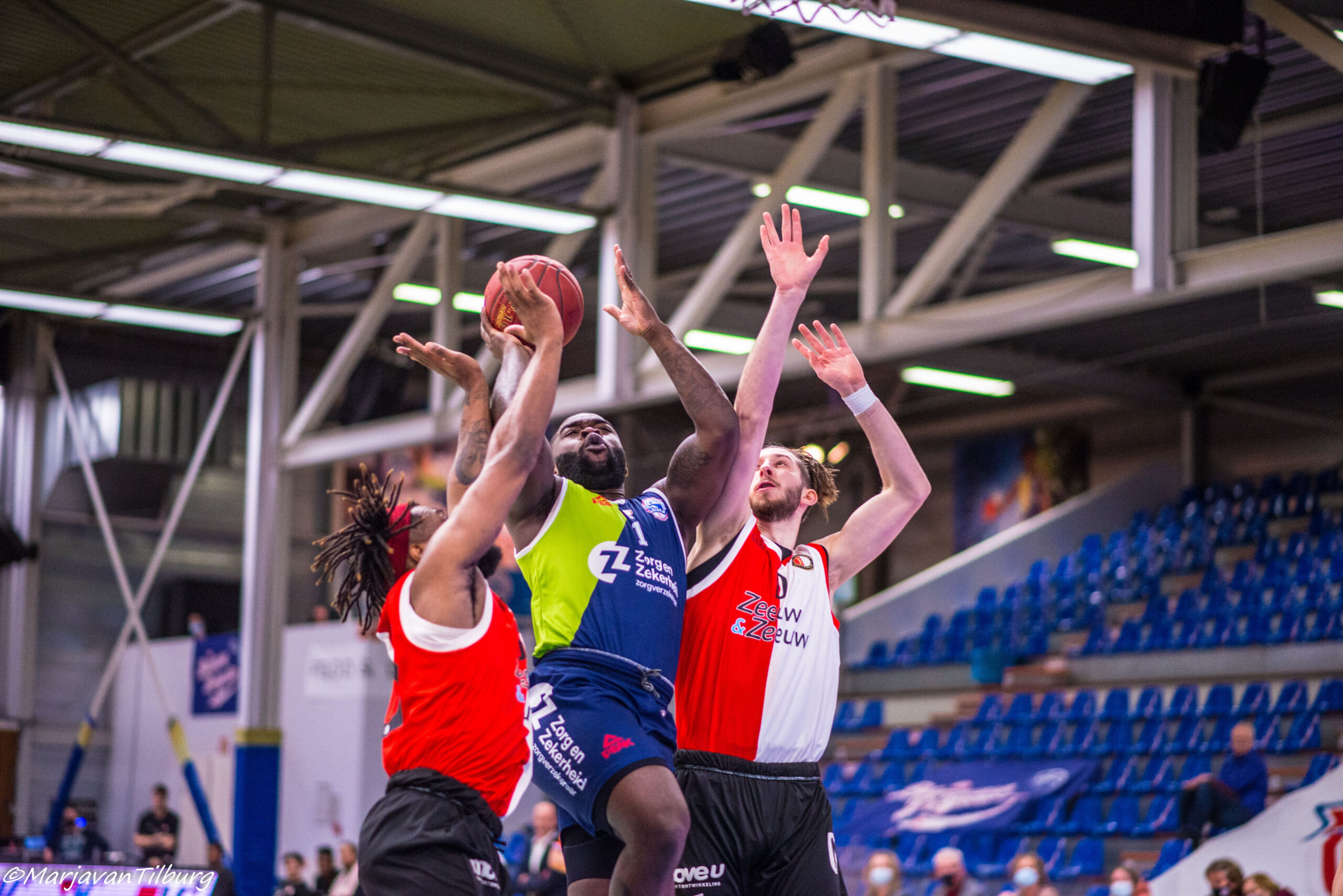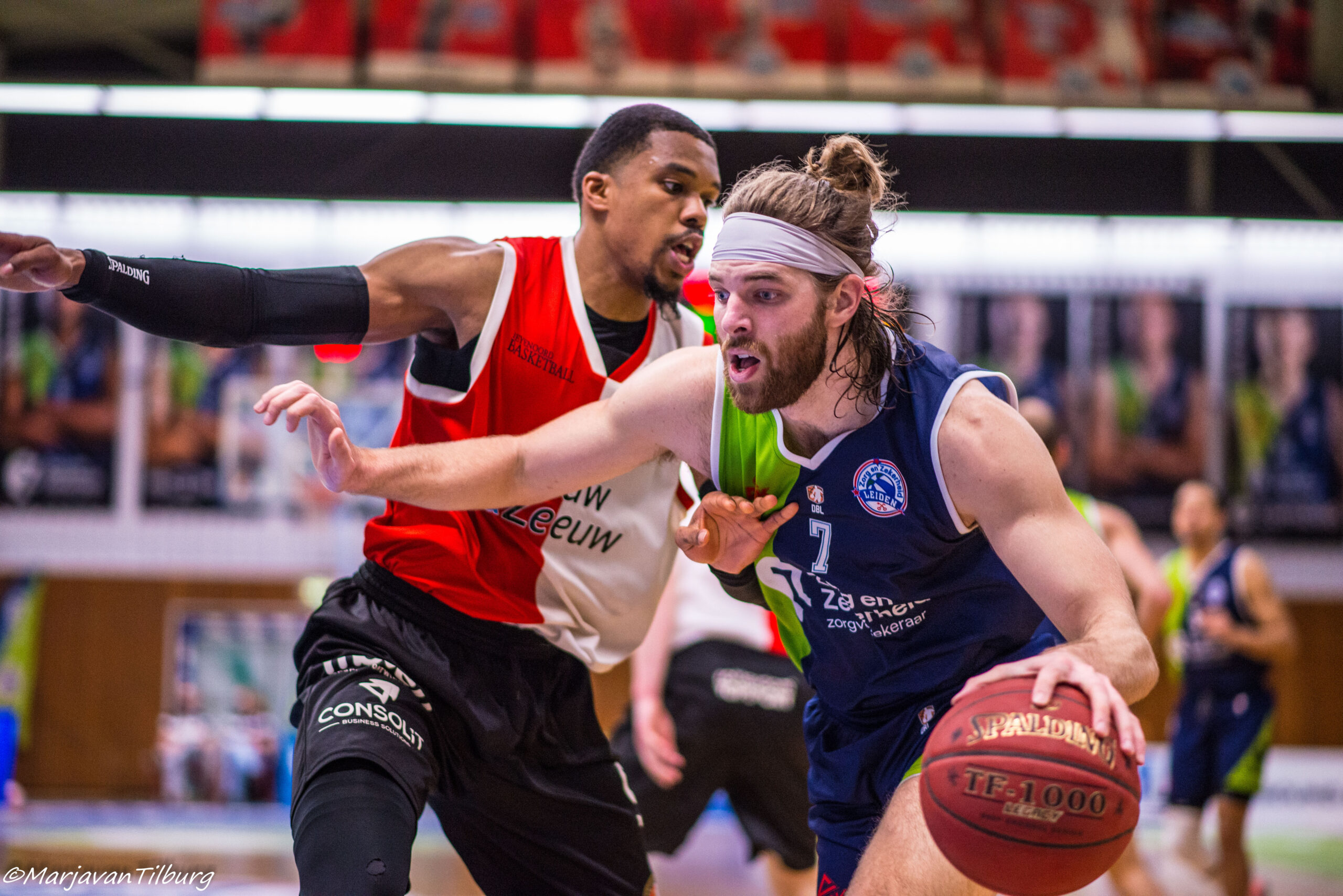 Opvallend was dat de Leidse verdediging na de pauze een stuk beter in het veld stond en ook dat de ploeg de juiste agressiviteit uitstraalde. Het is zaak dat Zorg en Zekerheid Leiden aan de verdediging blijft werken, want met dit spelersmateriaal hoeft scoren geen probleem te zijn. Nzekwesi sloot het duel overigens af met een efficiency van 35: 26 punten via 10 uit 13 schot, 1 driepunter, 7 rebounds, 2 assists, 6 steals en 2 blocks. Finke (16 punten) en De Jong (13 punten) zitten ook in de dubbele cijfers. Ververs en De Jong gaven elk 6 assists en Ververs pakte ook nog eens 3 steals.