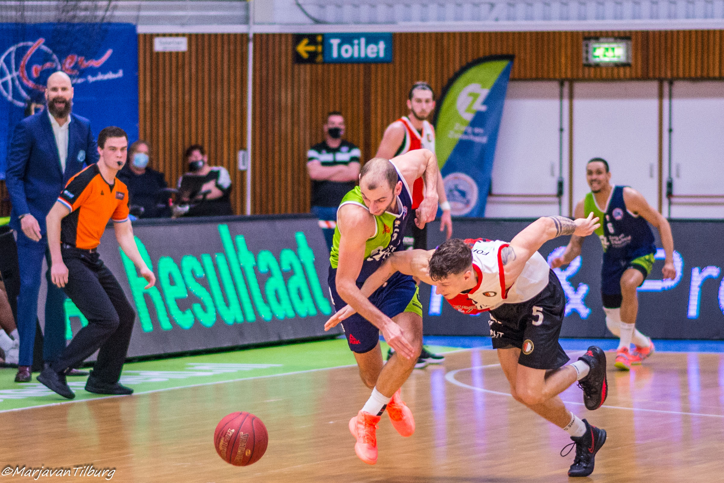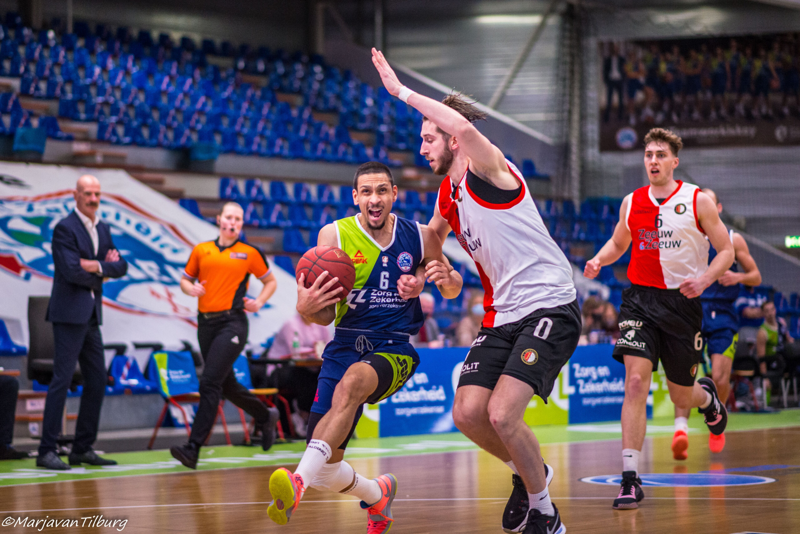 Zeeuw & Zeeuw Feyenoord Basketball vocht als leeuwen en bleven zelfs na het vroeg uitvallen van Ordane Kanda in de race. Halverwege keek Zorg en Zekerheid Leiden nog tegen een 43-50 achterstand. Na de pauze stond de Leidse ploeg de Rotterdammers nog maar 28 punten toe. Doordat Zorg en Zekerheid Leiden na rust wel op hetzelfde niveau bleef scoren, leverde dat een 84-78 zege voor de Leidse formatie op.
