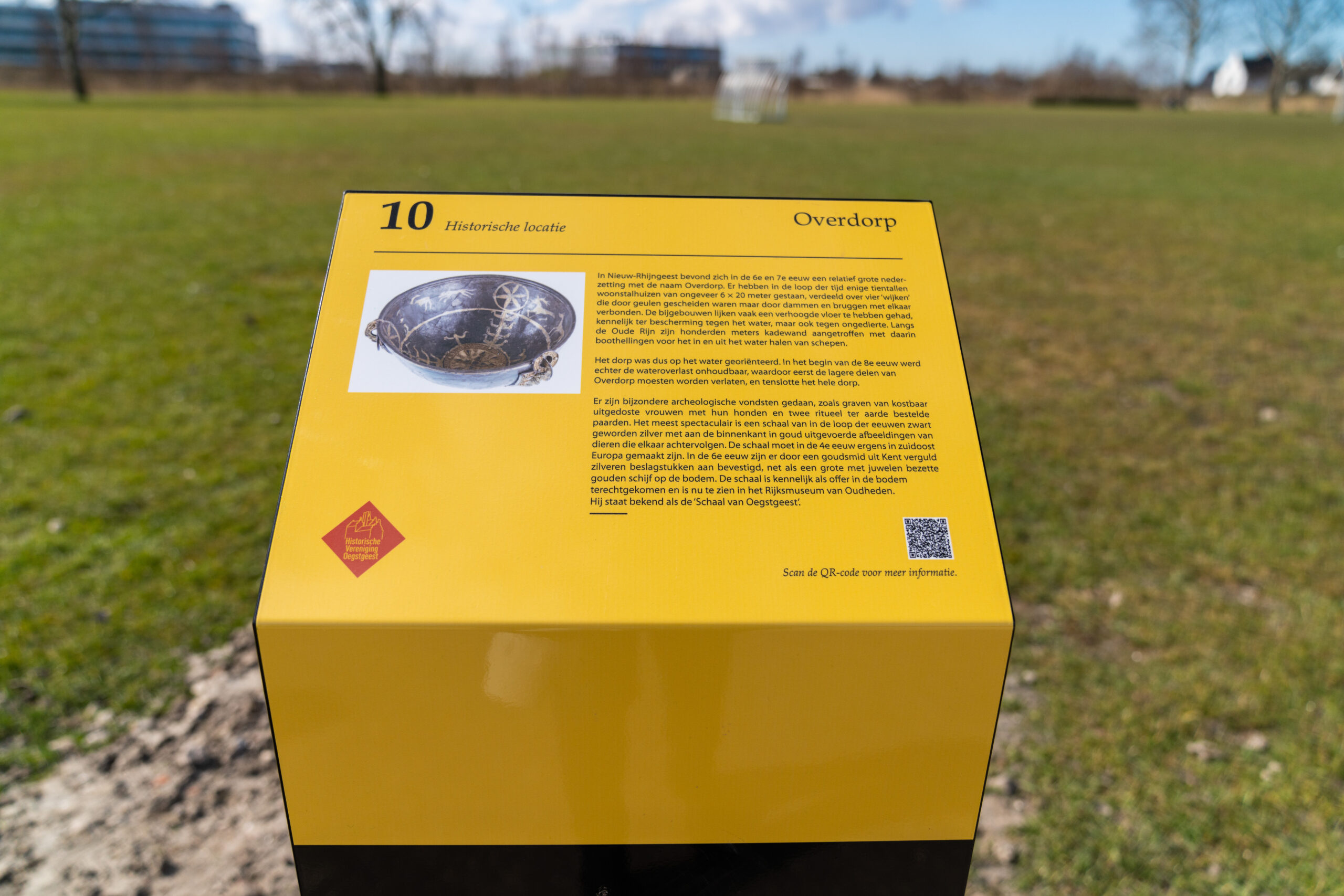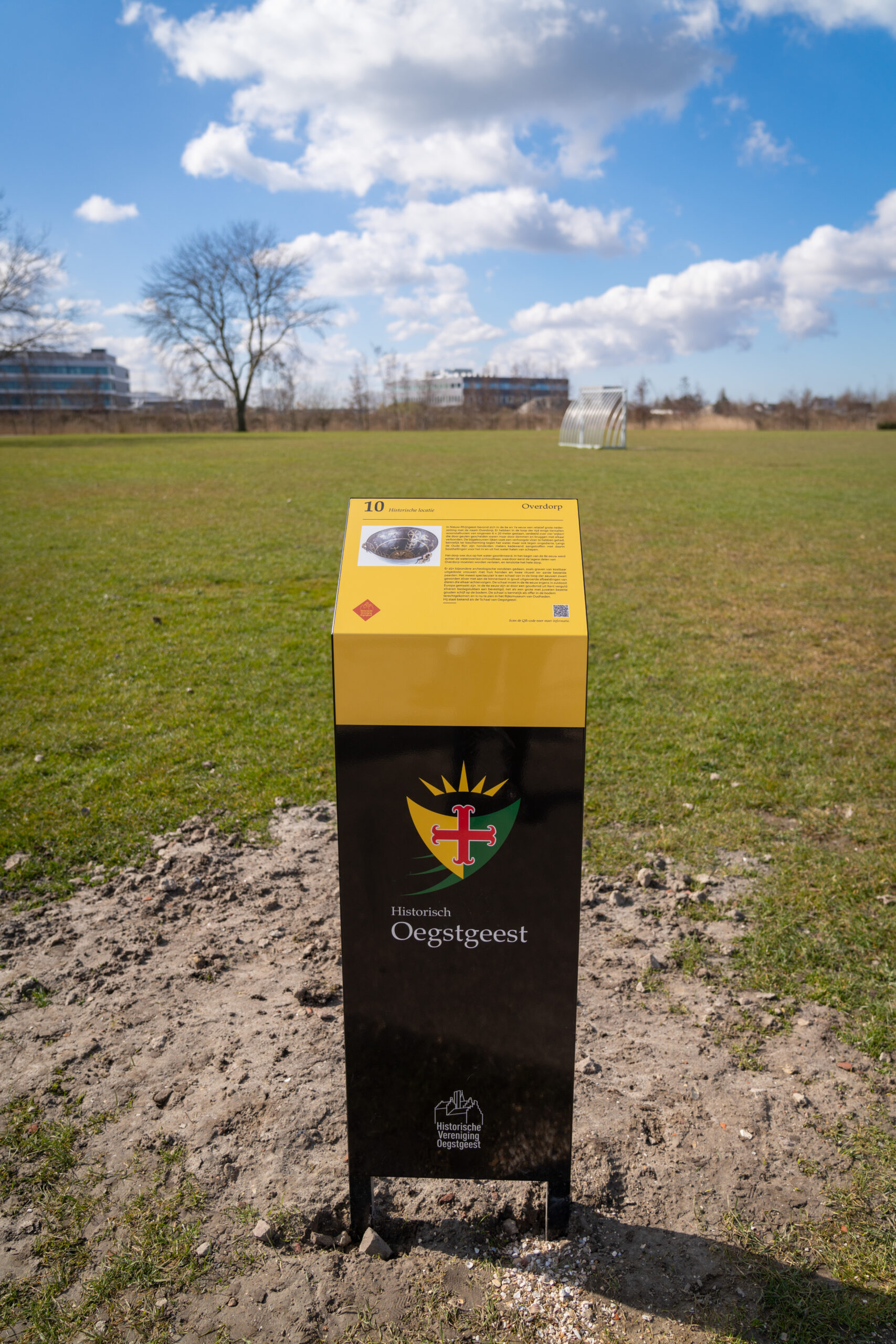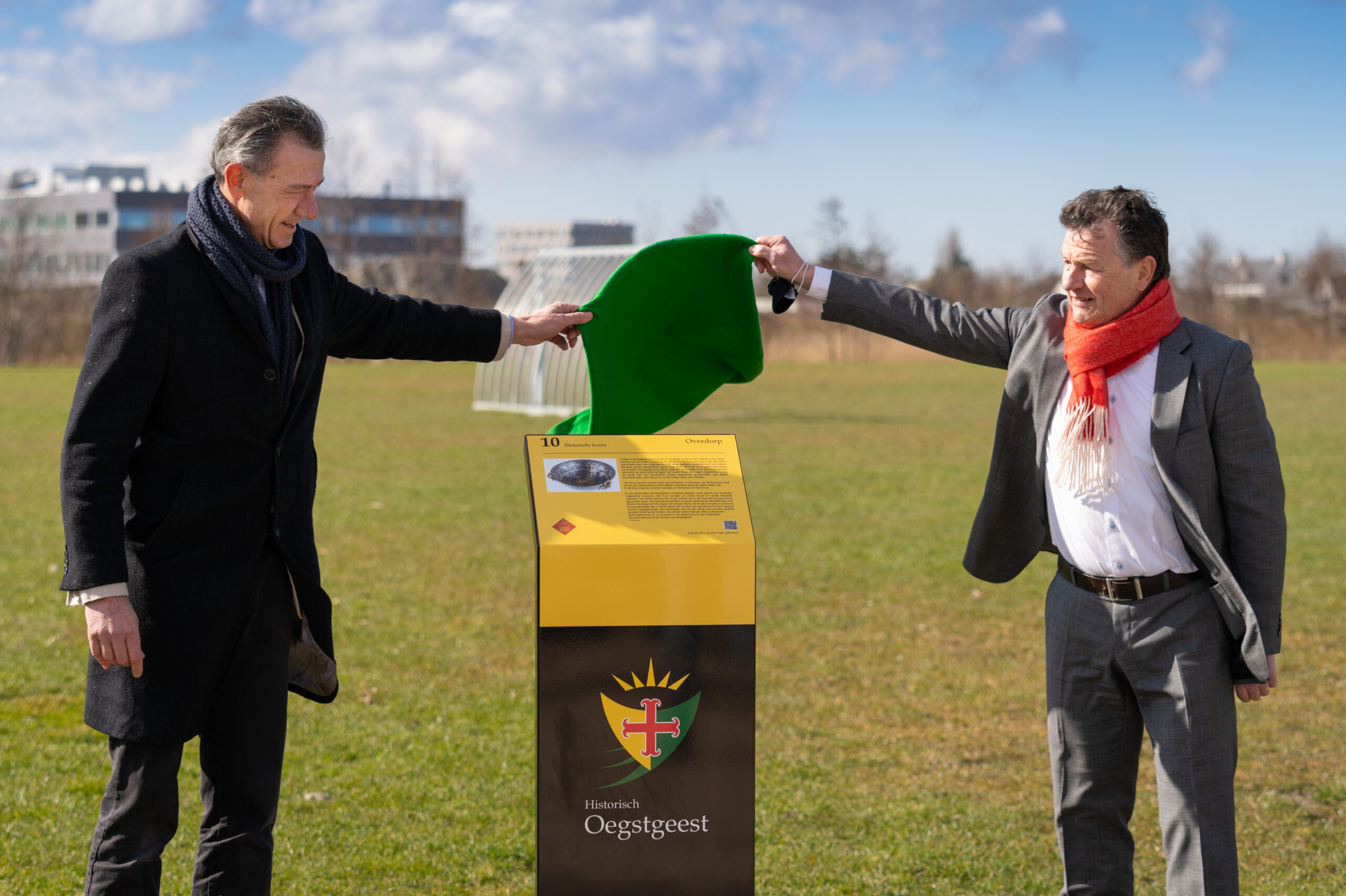 Op een aantal historische plekken in Oegstgeest komen informatiezuilen die meer vertellen over de geschiedenis van het dorp. De zuilen geven informatie over hoe de plek er vroeger uitzag en welke betekenis die ooit heeft gespeeld. Het is een initiatief van de Historische Vereniging Oegstgeest en de gemeente Oegstgeest. Afgelopen vrijdag werd de zuil bij park Landskroon onthuld door wethouder Mathijs Huizing.