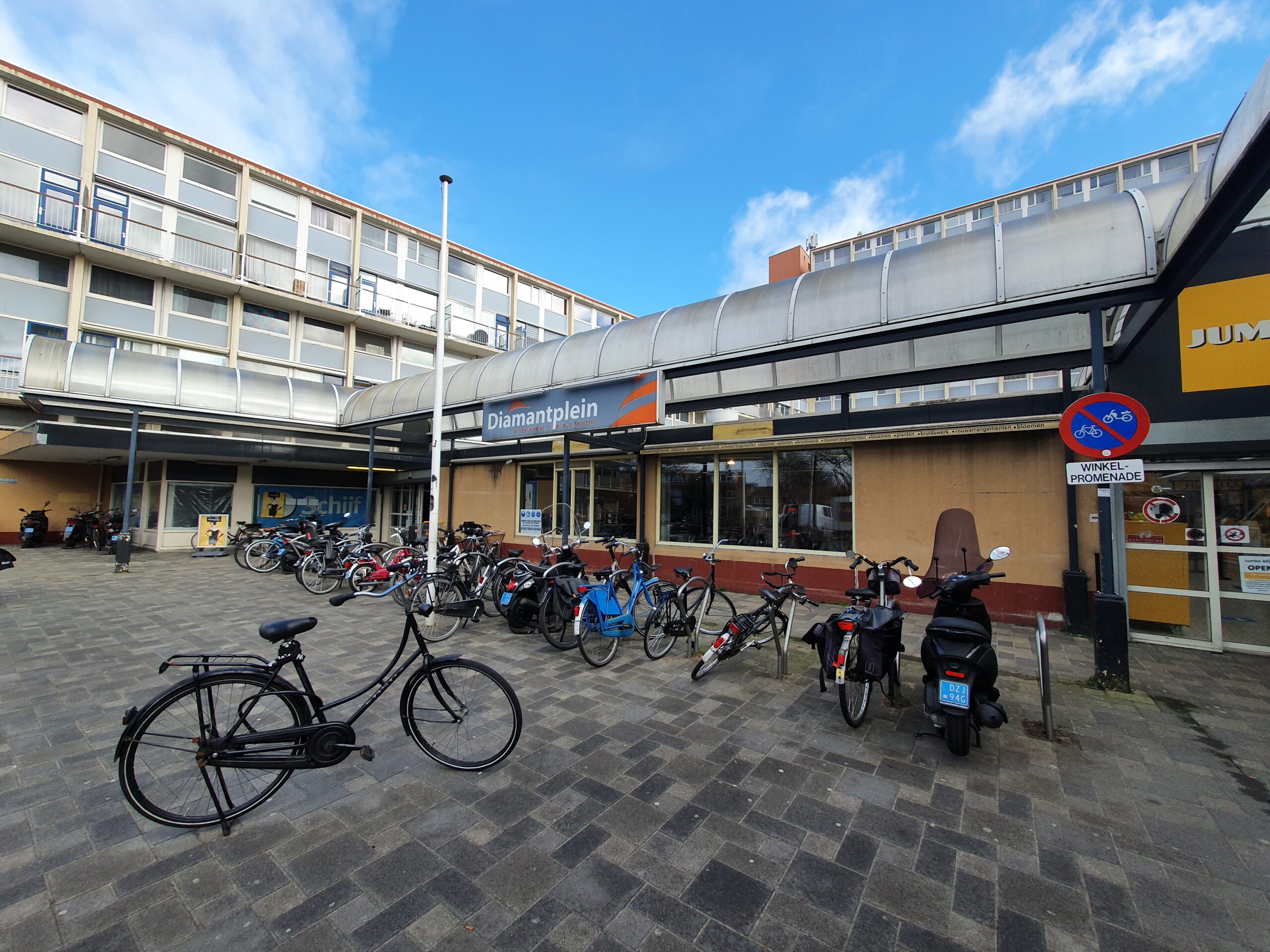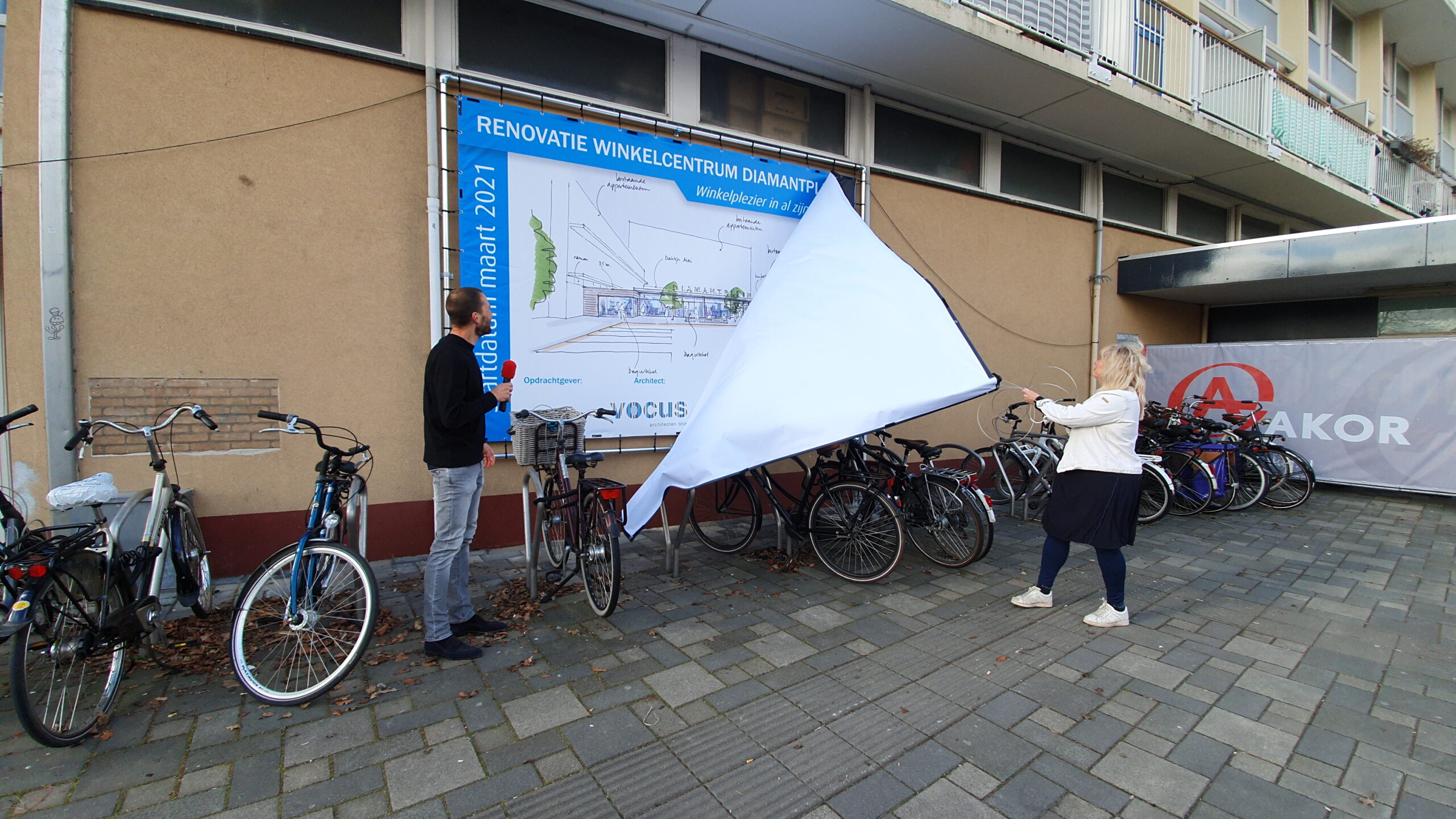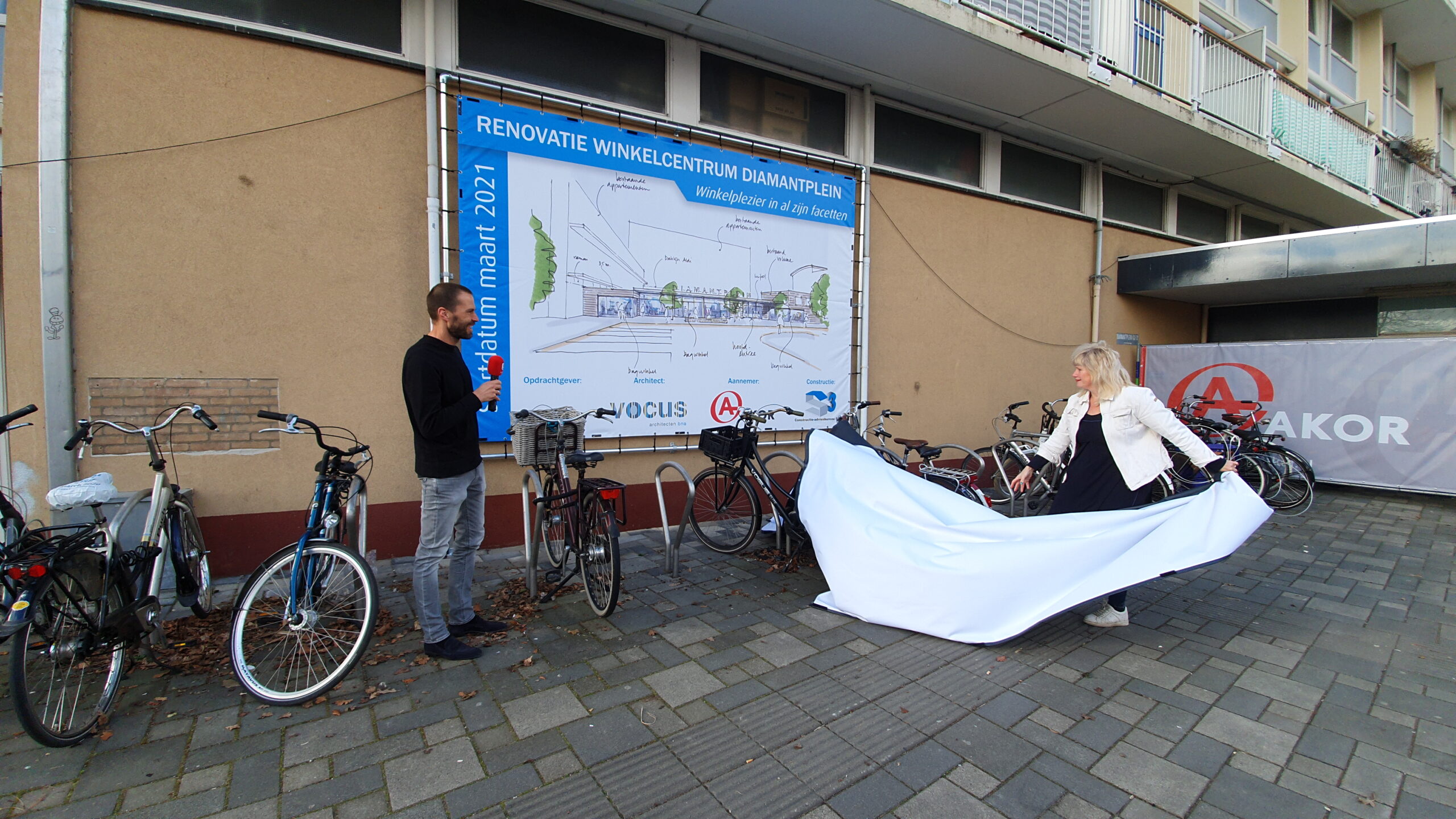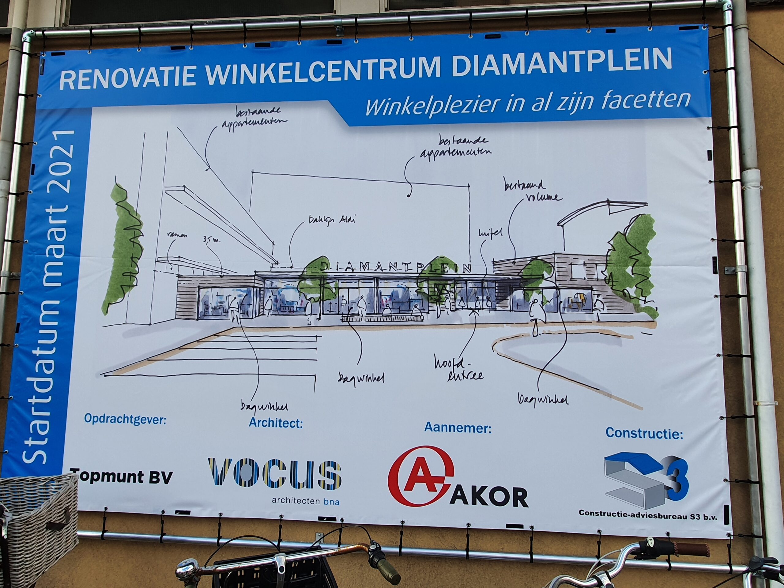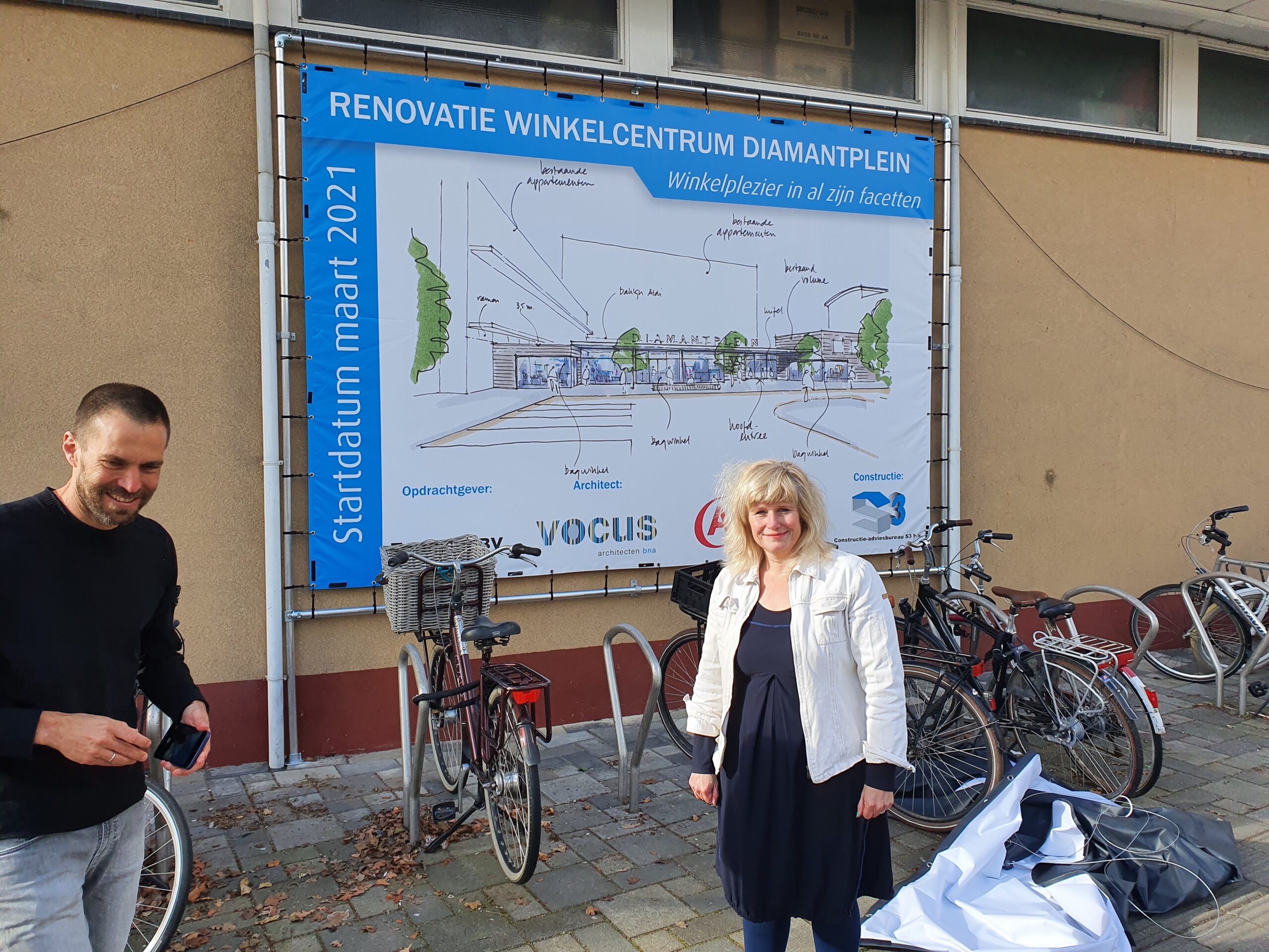 Met het onthullen van het bouwbord heeft wethouder Yvonne van Delft (economie) het officiële startsein gegeven voor renovatie van het Diamantplein in de Hoge Mors. Geen eenvoudige verbouwing, maar een complete make-over van het sterk verouderde wijkwinkelcentrum dat al jaren op een opknapbeurt wacht.