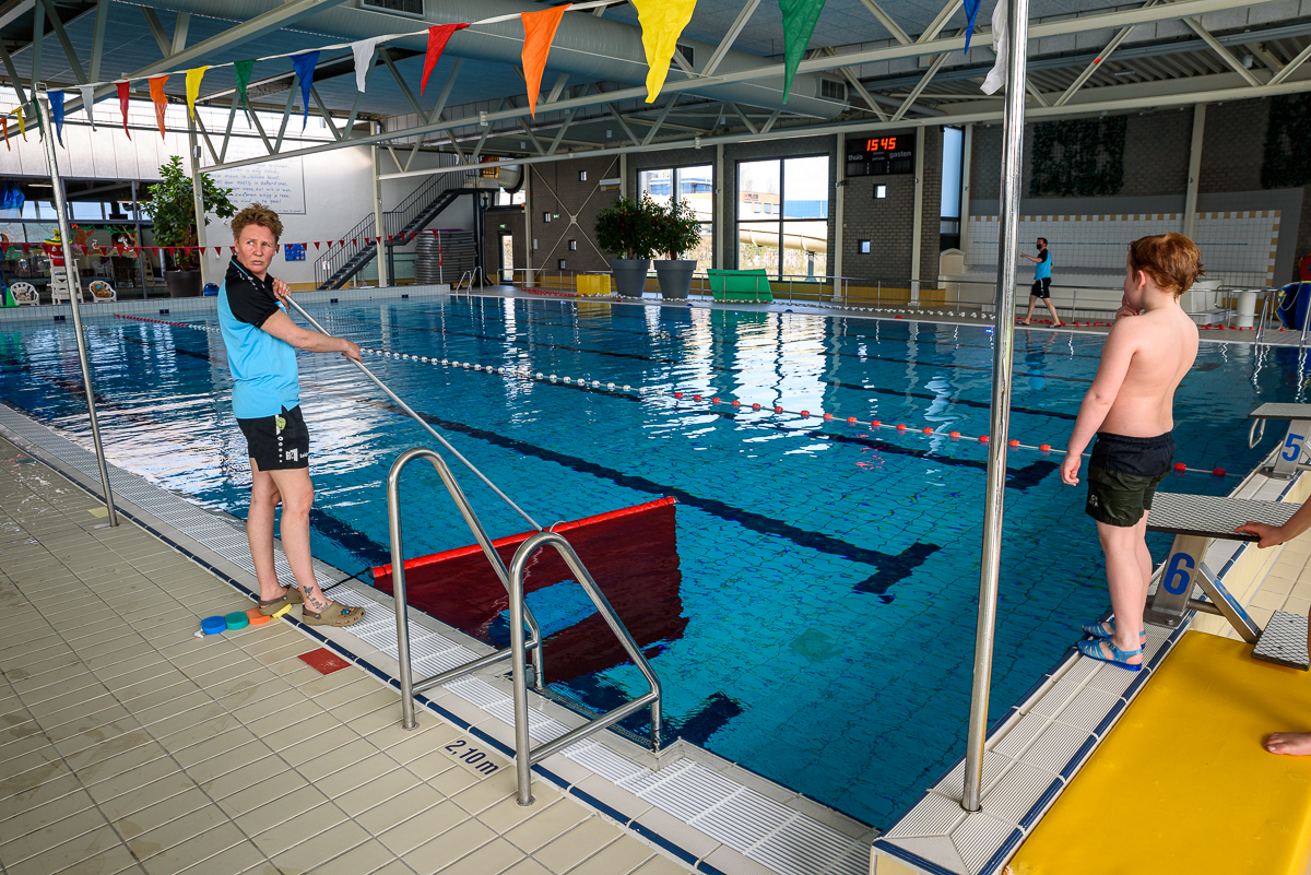 Het mag dus weer: afzwemmen. Maar het gaat wel anders dan normaal. De ouders moeten vanwege de coronamaatregelen buiten het zwembad blijven. De kinderen slaan deze mijlpaal in hun leven dus zelfstandig, of eigenlijk met elkaar en met de zwemmeesters en -juffen.