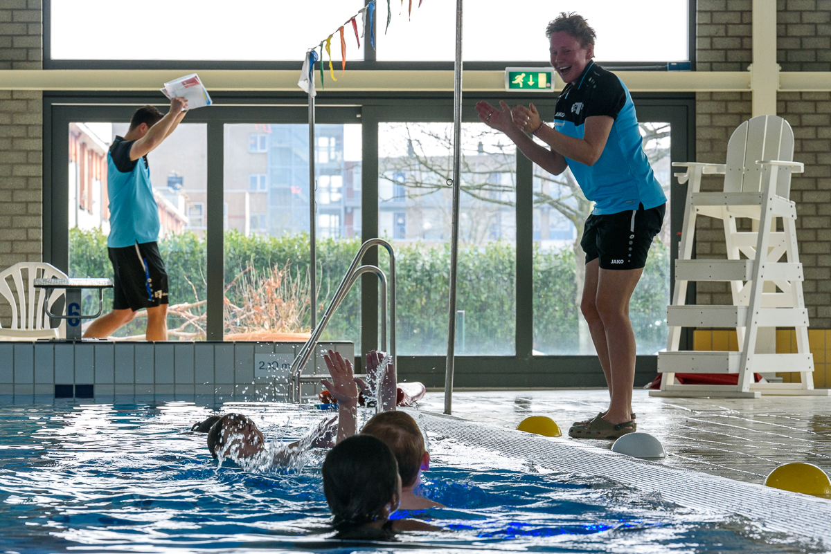 Trotse ouders, maar niet op de tribune maar in hun auto kijkend naar een livestream op hun schermpje. “Ze klappen voor jullie op het parkeerterrein”, vertelt de zwemleraar tegen de jonge kinderen die net in zwembad De Zijl hun zwemdiploma hebben gehaald.