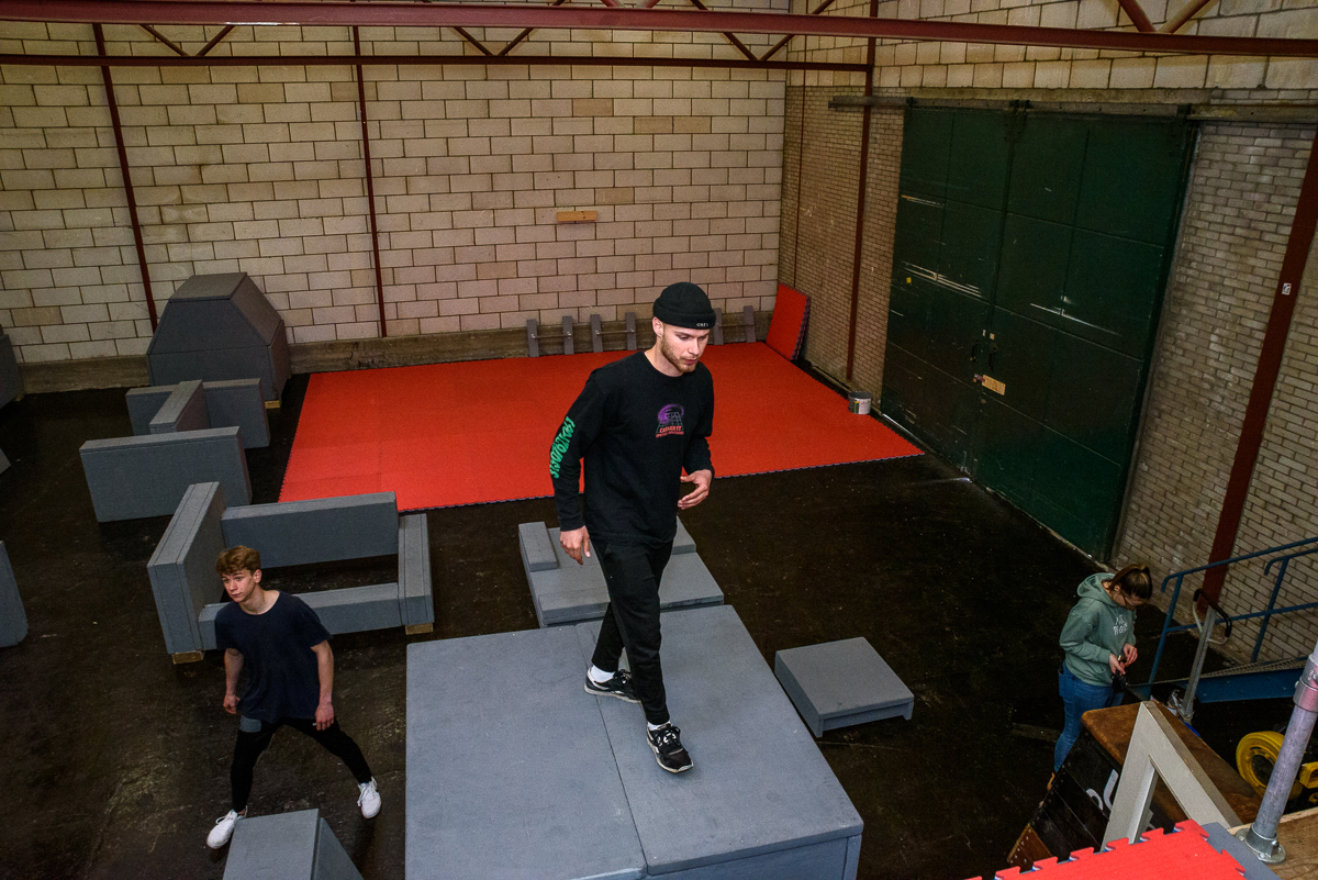 Wanneer de coronamaatregelen het straks weer toelaten, kan er volop worden gefreerund in het nieuwe gebouw van de Play Freerun Academy aan de Lopsenstraat in Leiden. Met een nieuwe, eigen zaal hoopt oprichter Andre Sannikov dat de Leidse ‘freerun community’ een boost krijgt.