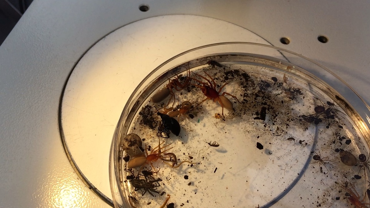 Jeremy Miller is enthousiast over de aangetroffen soorten. Hij bekijkt ze even snel onder de microscoop die in de tuin van Albers staat opgesteld. Daarna mogen Bart en zijn vriendin een kijkje nemen. “O ja, je kunt de ogen van deze spin goed zien”, zeggen ze allebei enthousiast en zonder een zweem van afgrijzen. Miller verwacht meer bijzonderheden te kunnen vertellen als hij de spinnen op zijn gemak heeft kunnen bestuderen. Daarvoor is het wachten op de persconferentie.