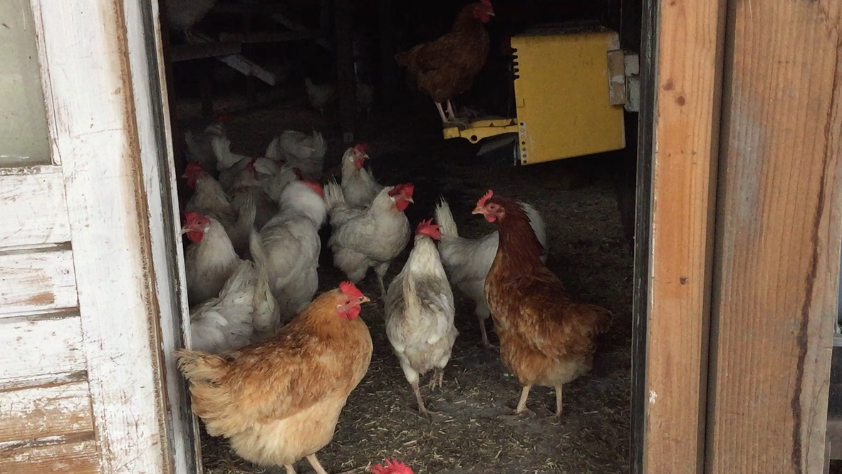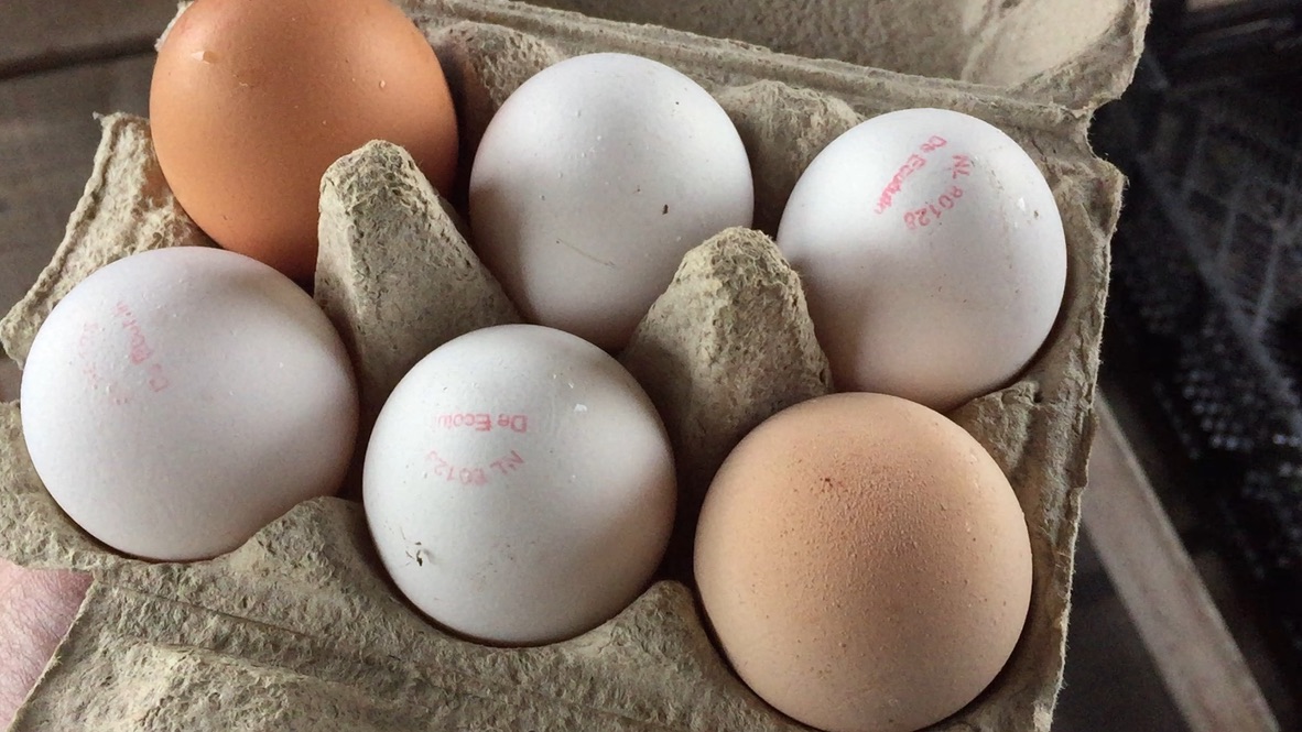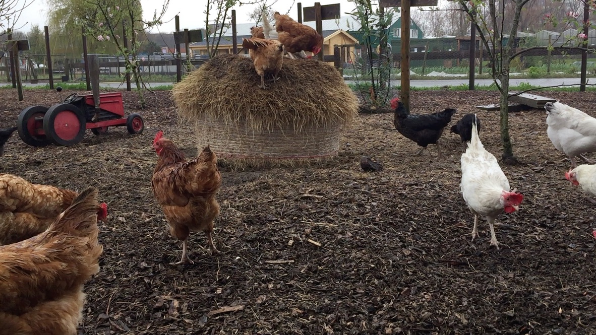 Naast de moestuin lopen er ook tweehonderd kippen rond op de Ecotuin. Met recht de gelukkigste kippen van Leiden en omstreken, want ze hebben een grote ren, krijgen prima voer en worden niet opgejut om zoveel mogelijk eieren te leggen. Maar ze leggen er genoeg om elke donderdag wat doosjes weg te zetten in het winkeltje van de Ecotuin en te leveren aan een paar grote afnemers zoals het eigen cateringbedrijf en woonzorglocatie Van Wijckerslooth in Oegstgeest.