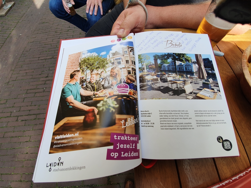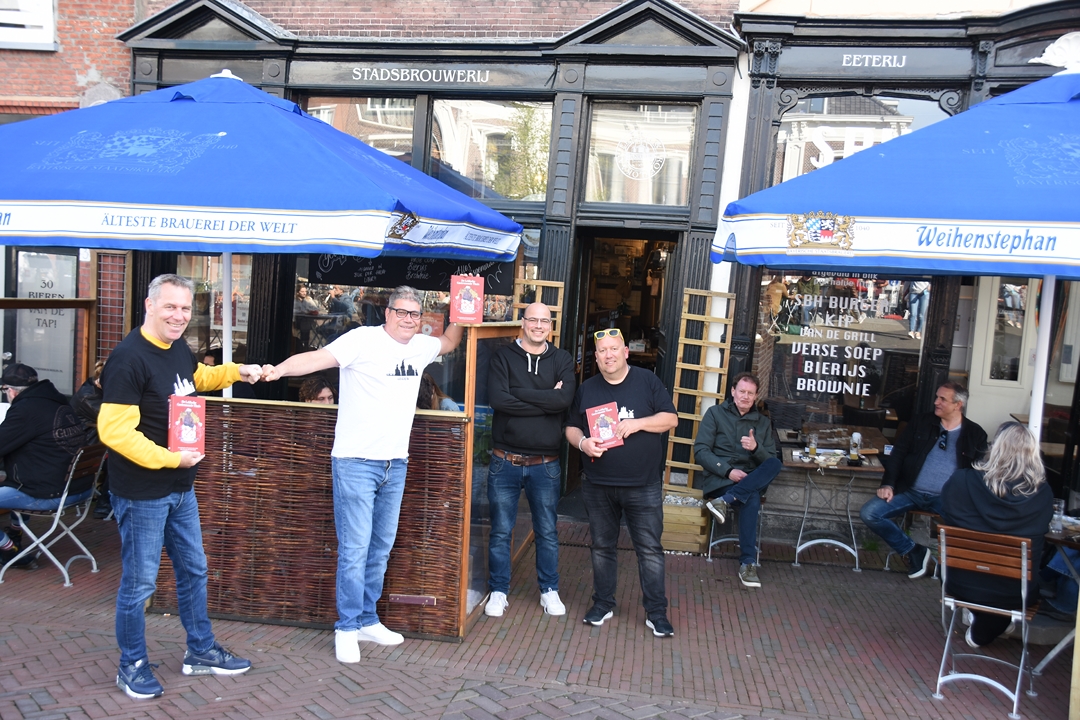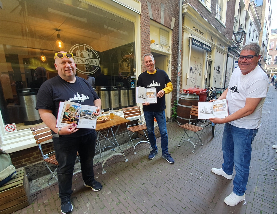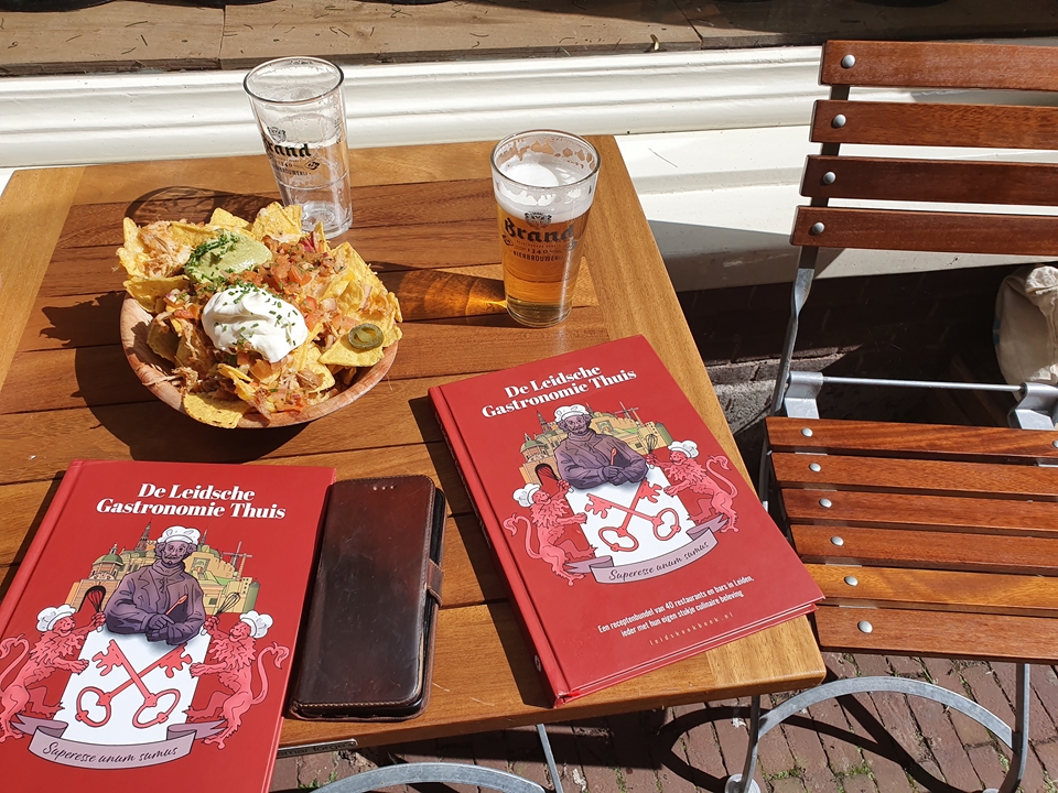 Stefan benadrukt dat je niet overal een vijf gangen menu hoeft te halen. “Wij kunnen niet in andermans portemonnee kijken. Met een biertje of kopje thee help je ze ook. Maar het begint dus met het boek ‘De Leidsche Gastronomie thuis’ kopen. En dan lekker alle veertig zaken aan doen de komende zestien maanden. Als het een succes is doen we nog even een recordpoging met elkaar en dan zijn we vlak voor Leidens Ontzet 2022 klaar. Mooie timing toch?”