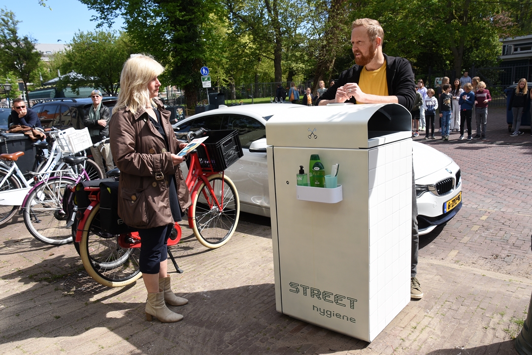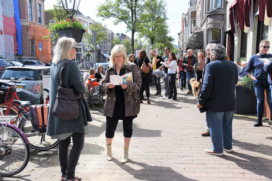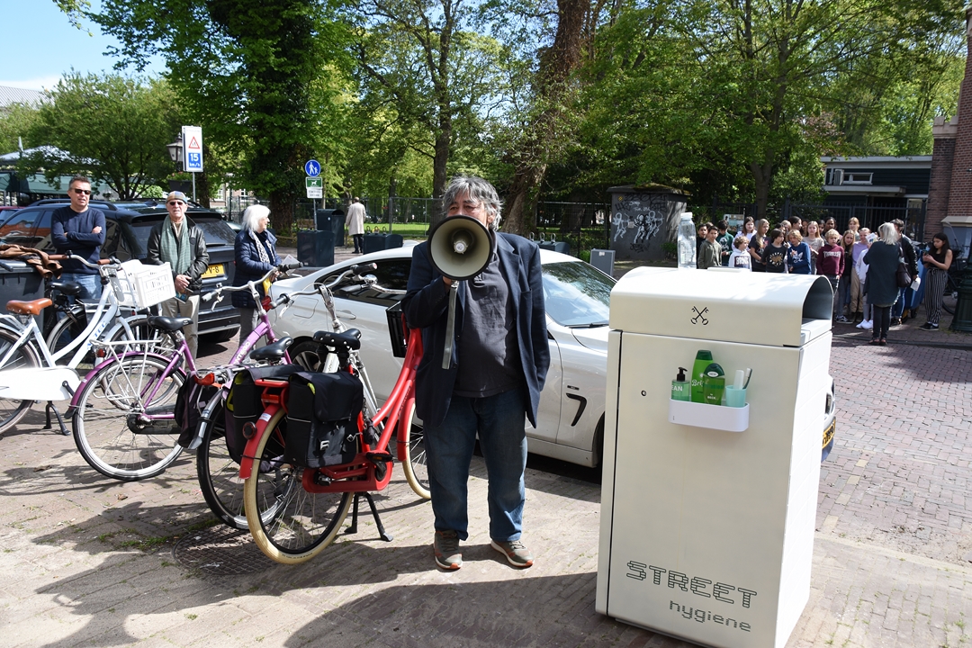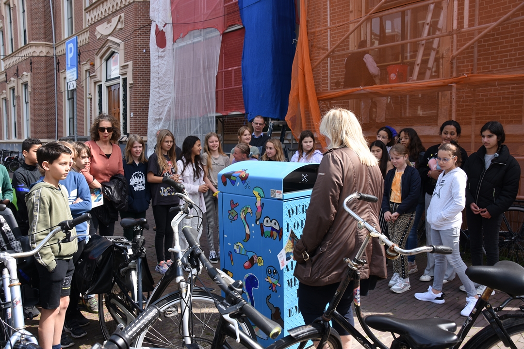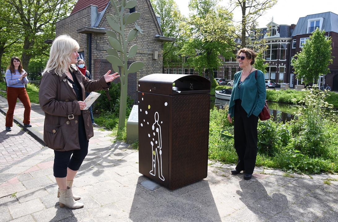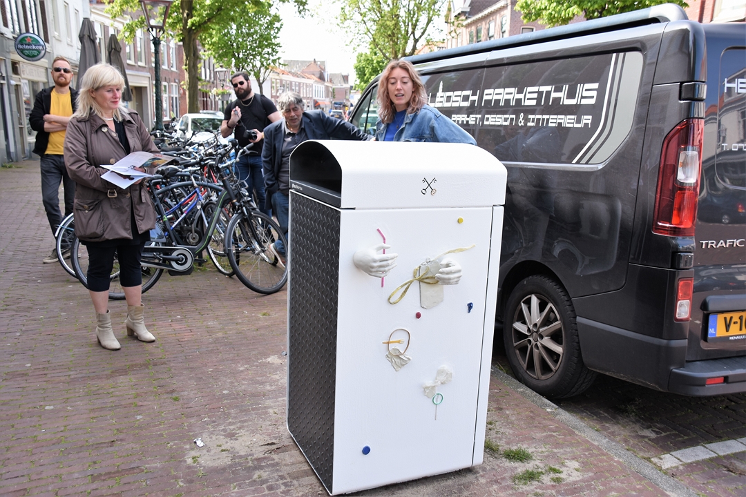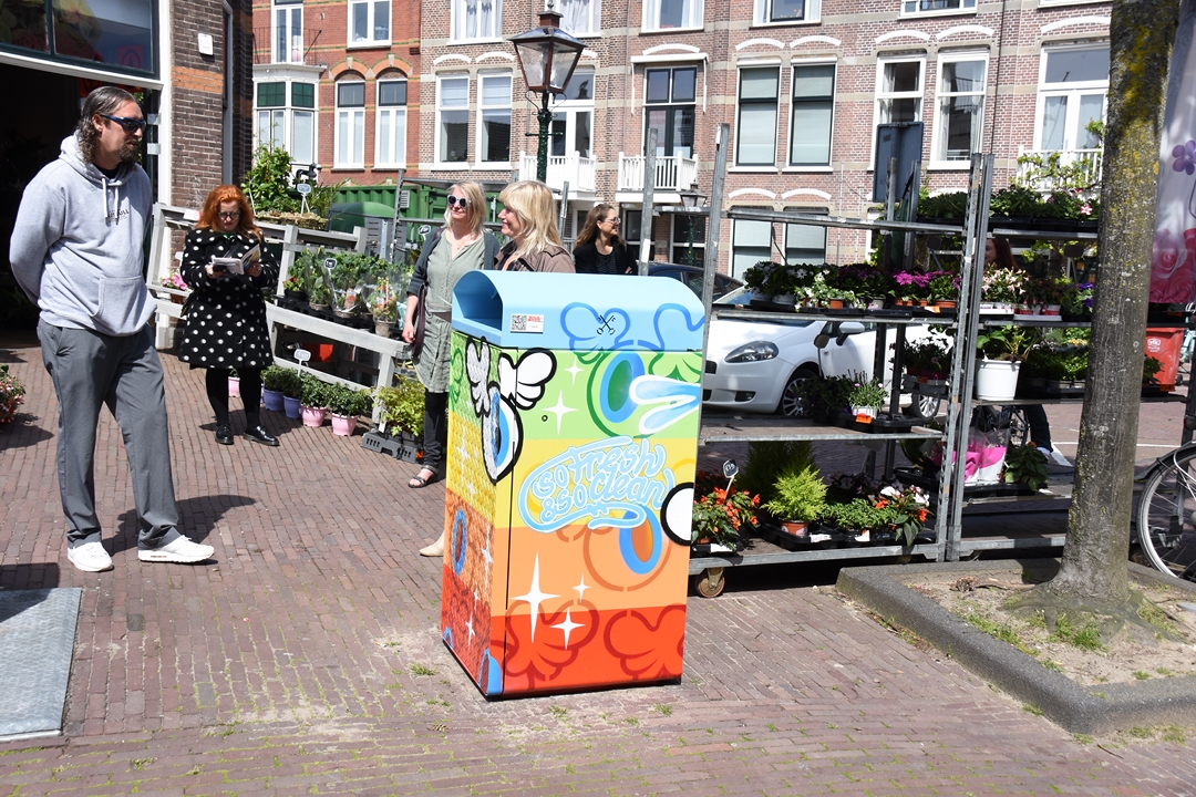 Zaterdagochtend is in de Leidse Heren- en Doezastraat de ‘Walk of Waste’ geopend. Wethouder Yvonne van Delft liep met de initiatiefnemers en nieuwsgierige buurtbewoners langs de bijzondere kunstexpositie. Leidse kunstenaars hebben namelijk de afvalbakken omgetoverd tot kunstwerken.
