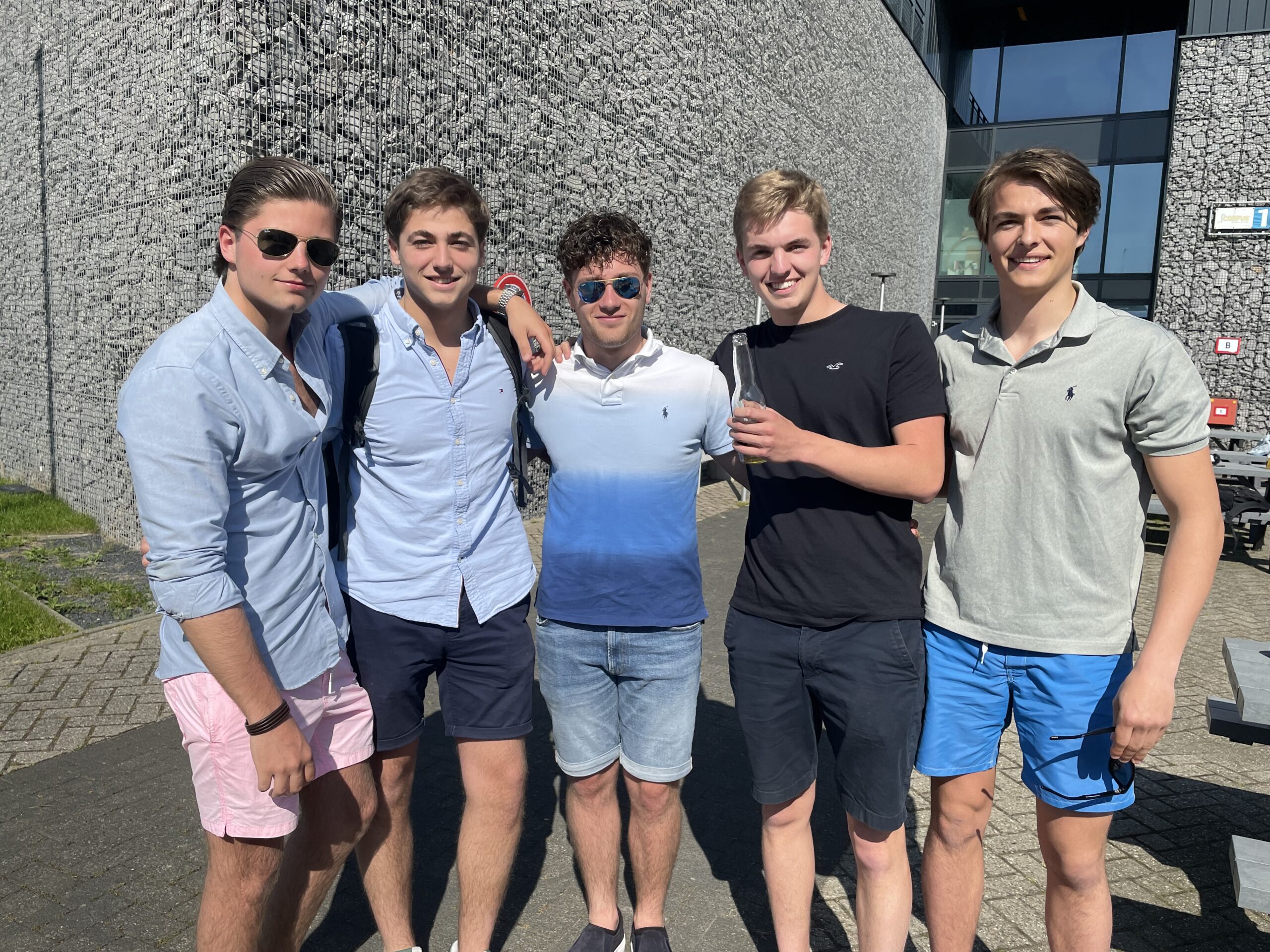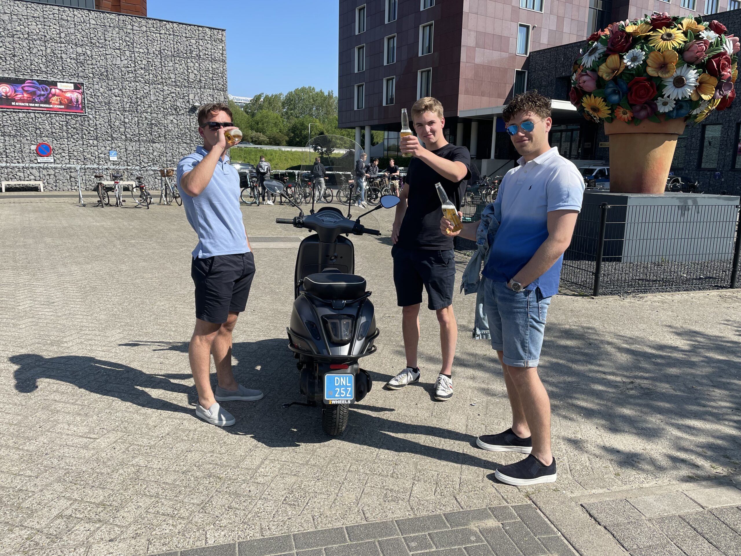 Dat is het moment waarop zijn maten naar hem toekomen en het glas geheven wordt. Wat ze gaan doen vanavond? “Feesten en misschien varen.” Ze realiseren zich wel degelijk dat het bij elkaar komen qua corona eigenlijk nog niet mag, maar de euforie voert de boventoon. Jelle trekt eerst een fles bubbels open met zijn ouders.
