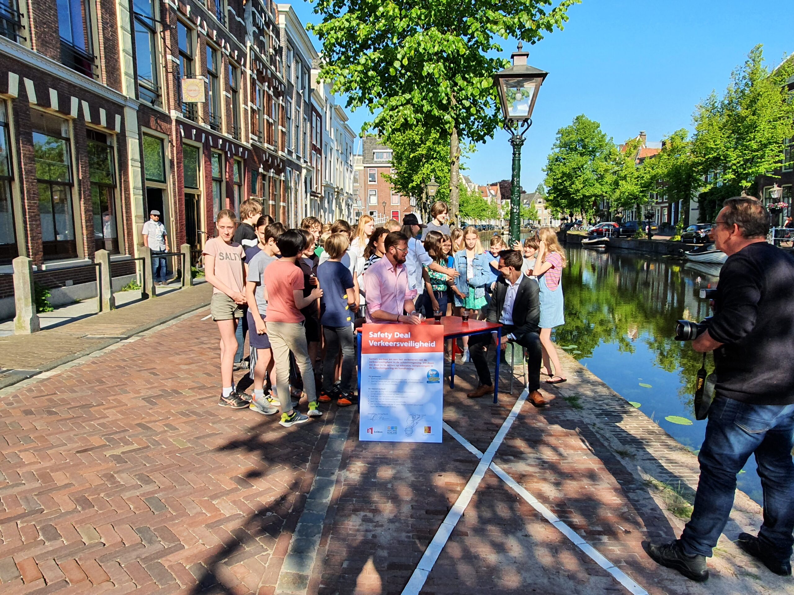 Voordeel is dat de kinderen nu niet meer het soms drukke Rapenburg hoeven over te steken. Schooldirecteur Brian Groot is opgetogen. “Ik sta nu gewoon met een kop koffie de kinderen en hun ouders ’s morgens te verwelkomen als de school open gaat in plaats van het verkeer te regelen. Ook wethouder North ging een paar dagen geleden al even stiekem een kijkje nemen hoe het er nu in praktijk aan toe gaat. “En dat is heel goed”, had de wethouder zelf kunnen constateren.