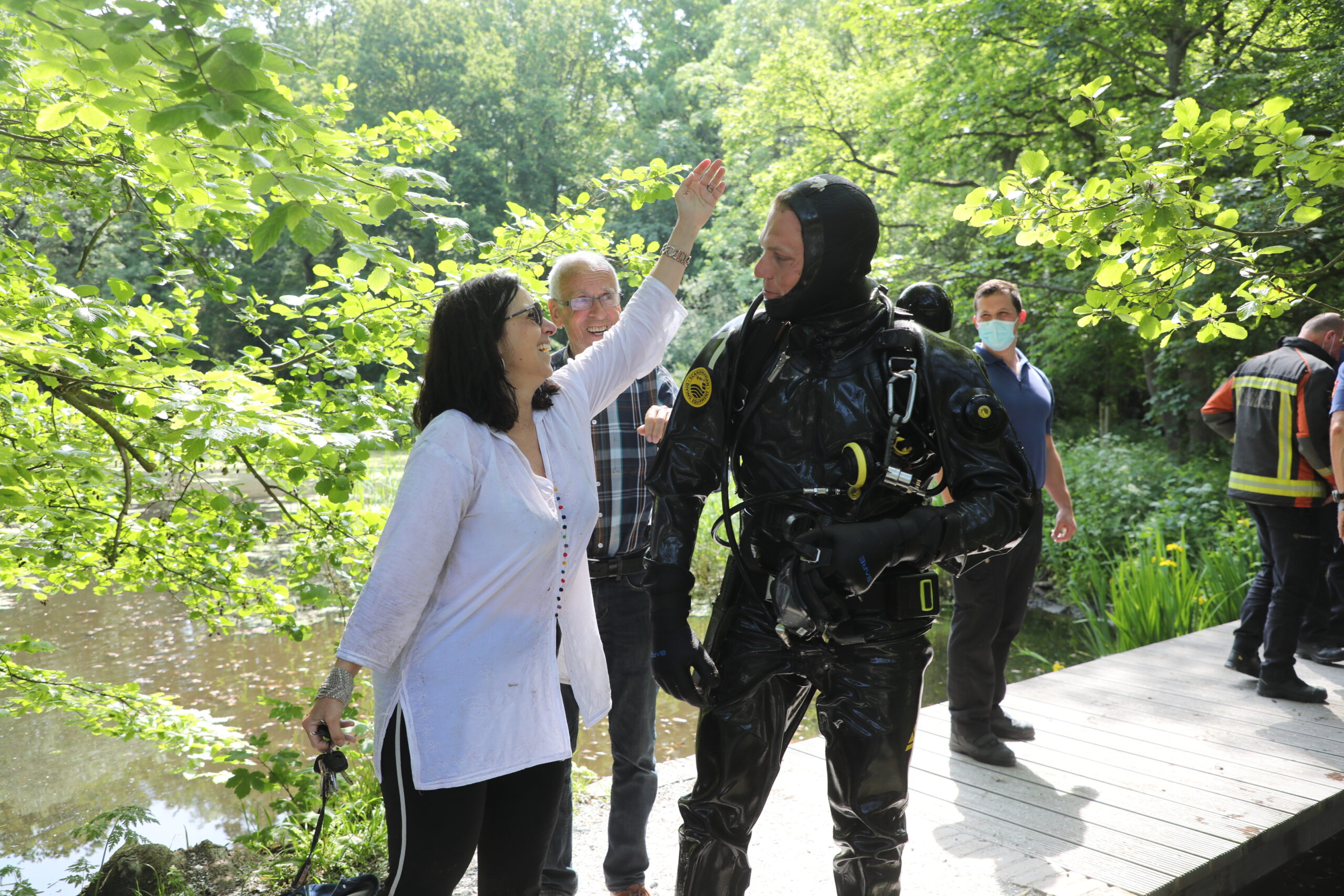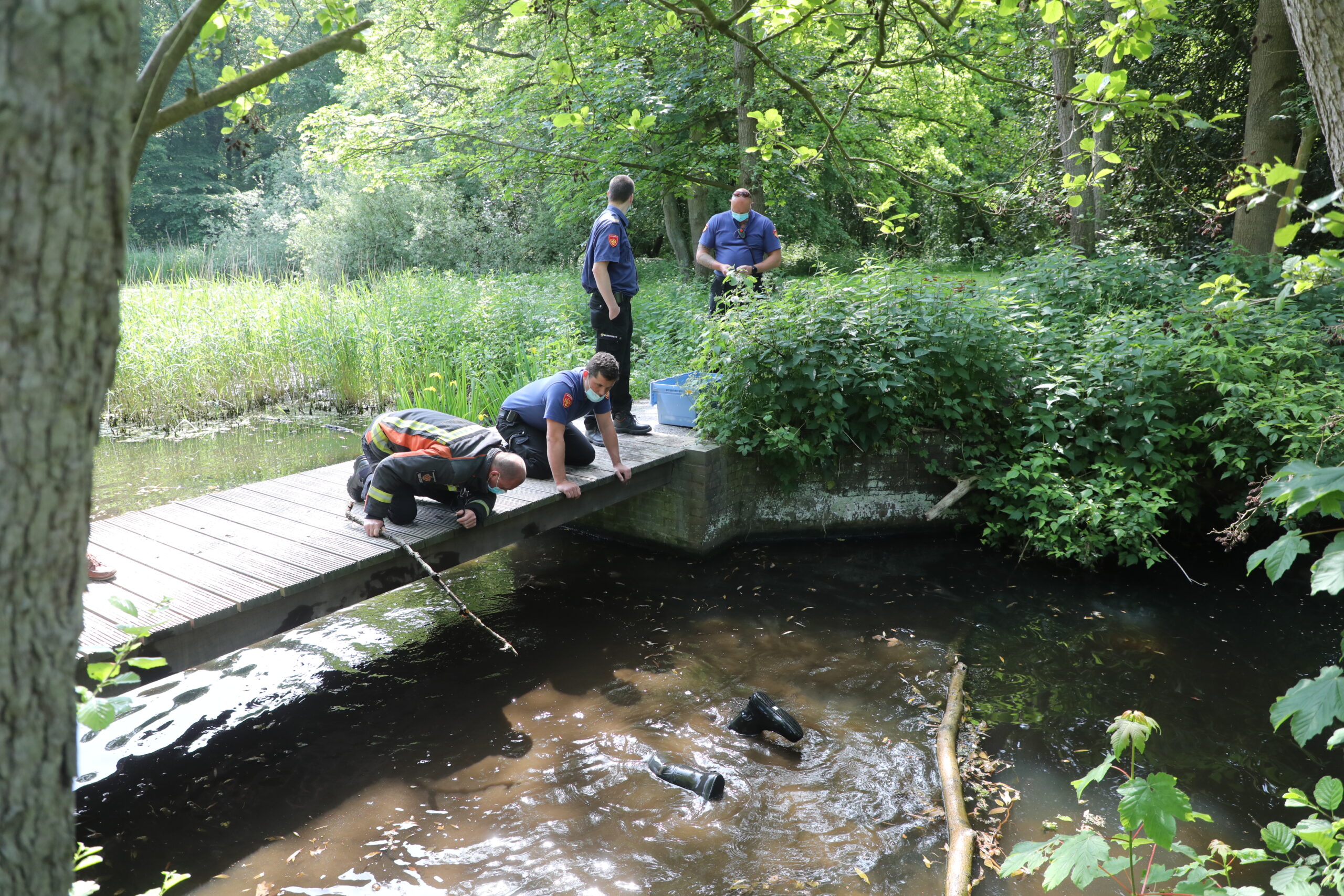 Een duiker van de brandweer greep het ’technische weer’ aan voor een oefening en zocht geruime tijd de bodem van de moddersloot langs het Leidse Hout af. Net toen hij het op wilde geven, voelde hij iets hards in de blubber en kwam hij inderdaad met de verloren sleutelbos naar boven.
