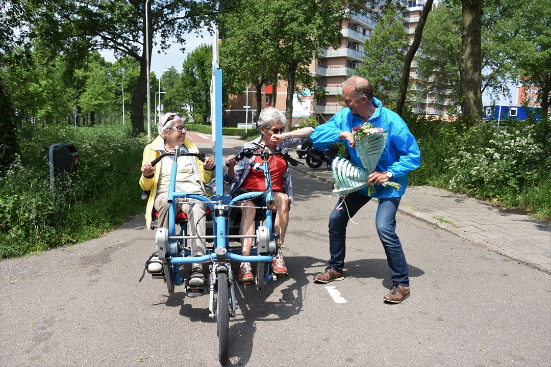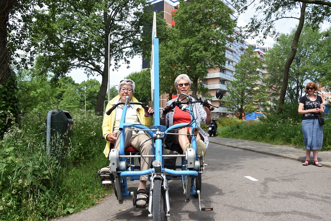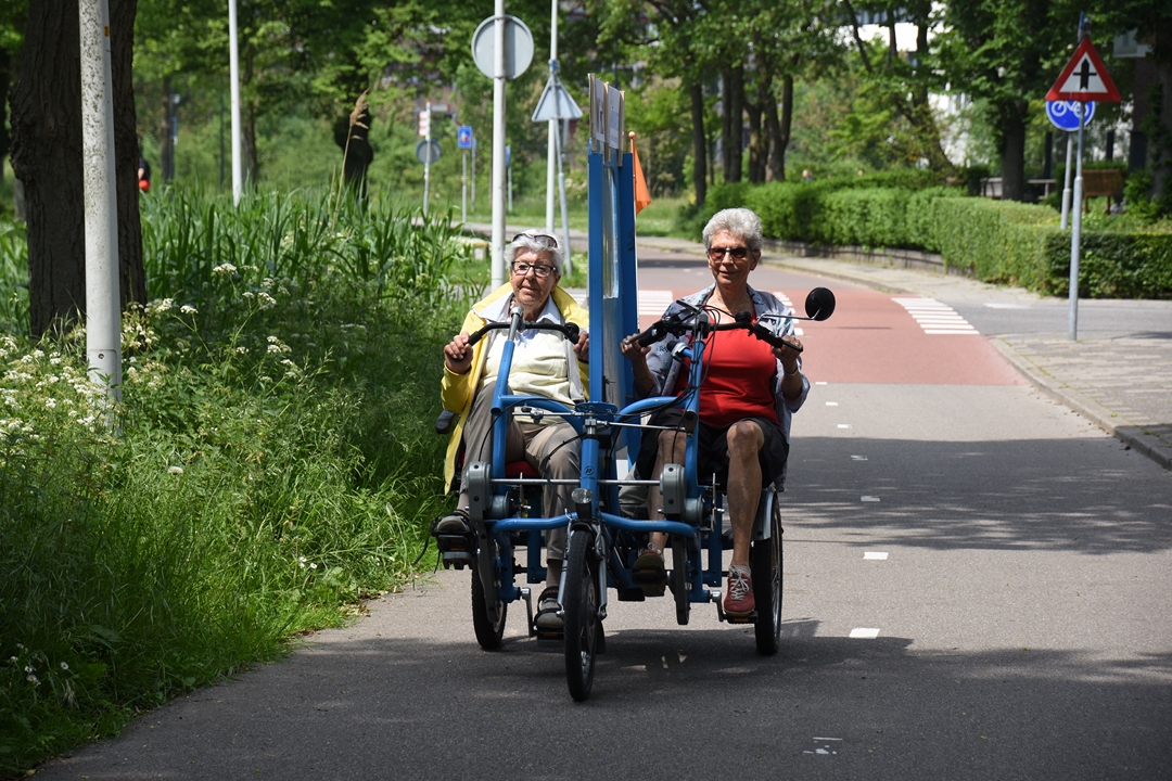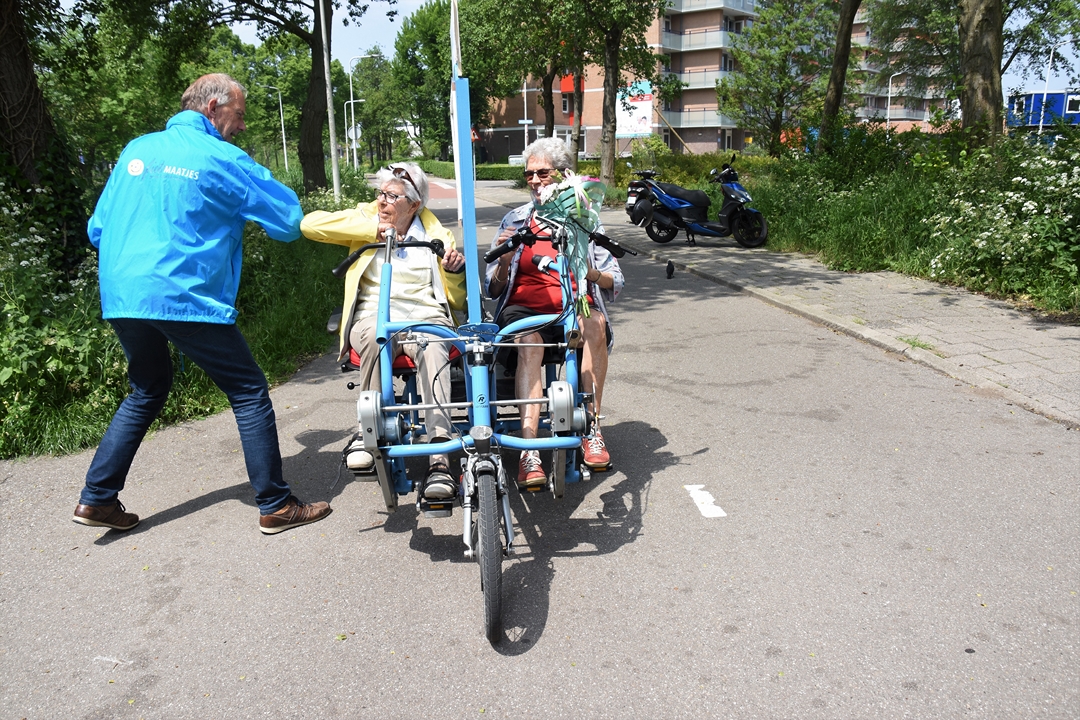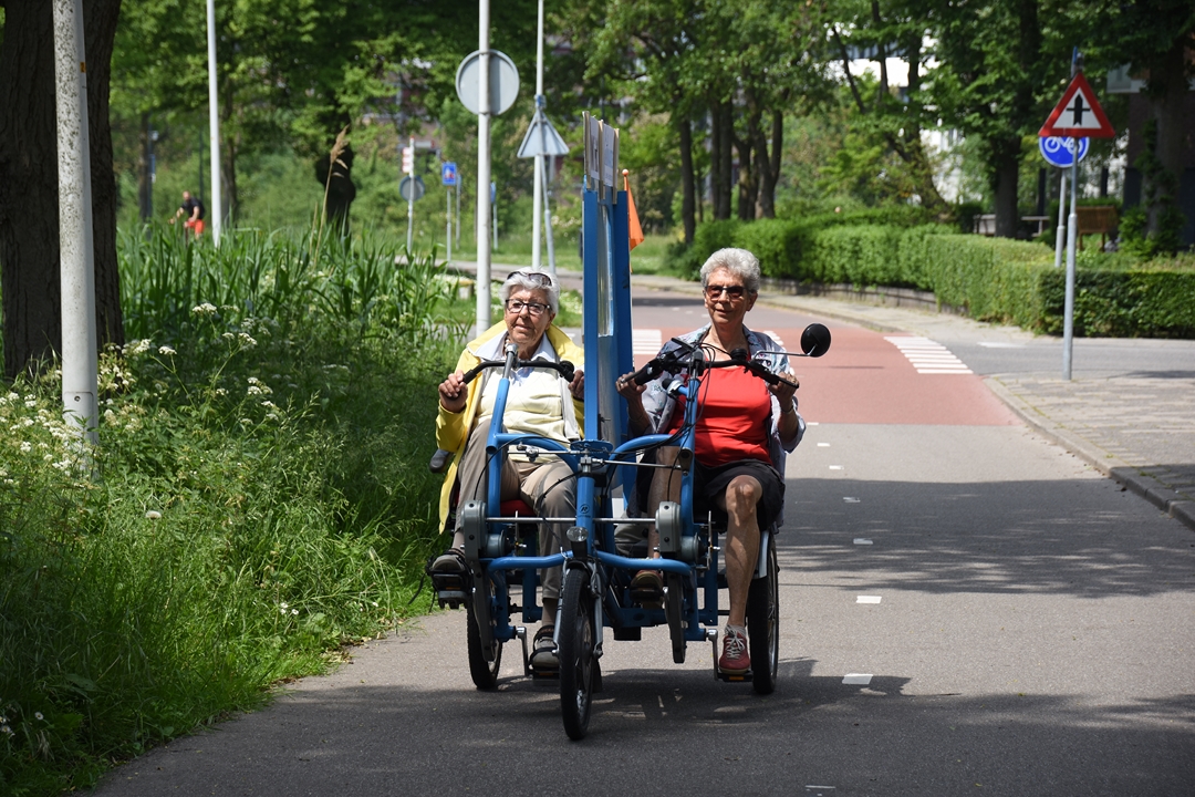 De organisatie begon met zes fietsen, maar de ‘vloot’ is inmiddels uitgebreid naar achttien blauwe e-bikes. De vrijwilligers gaan met stadsgenoten die om wat voor reden dan ook niet (meer) zelfstandig kunnen fietsen op pad. Meijer en haar maatje Liefers zijn een voorbeeld van hoe duofietsen plezier en voldoening geeft voor twee.