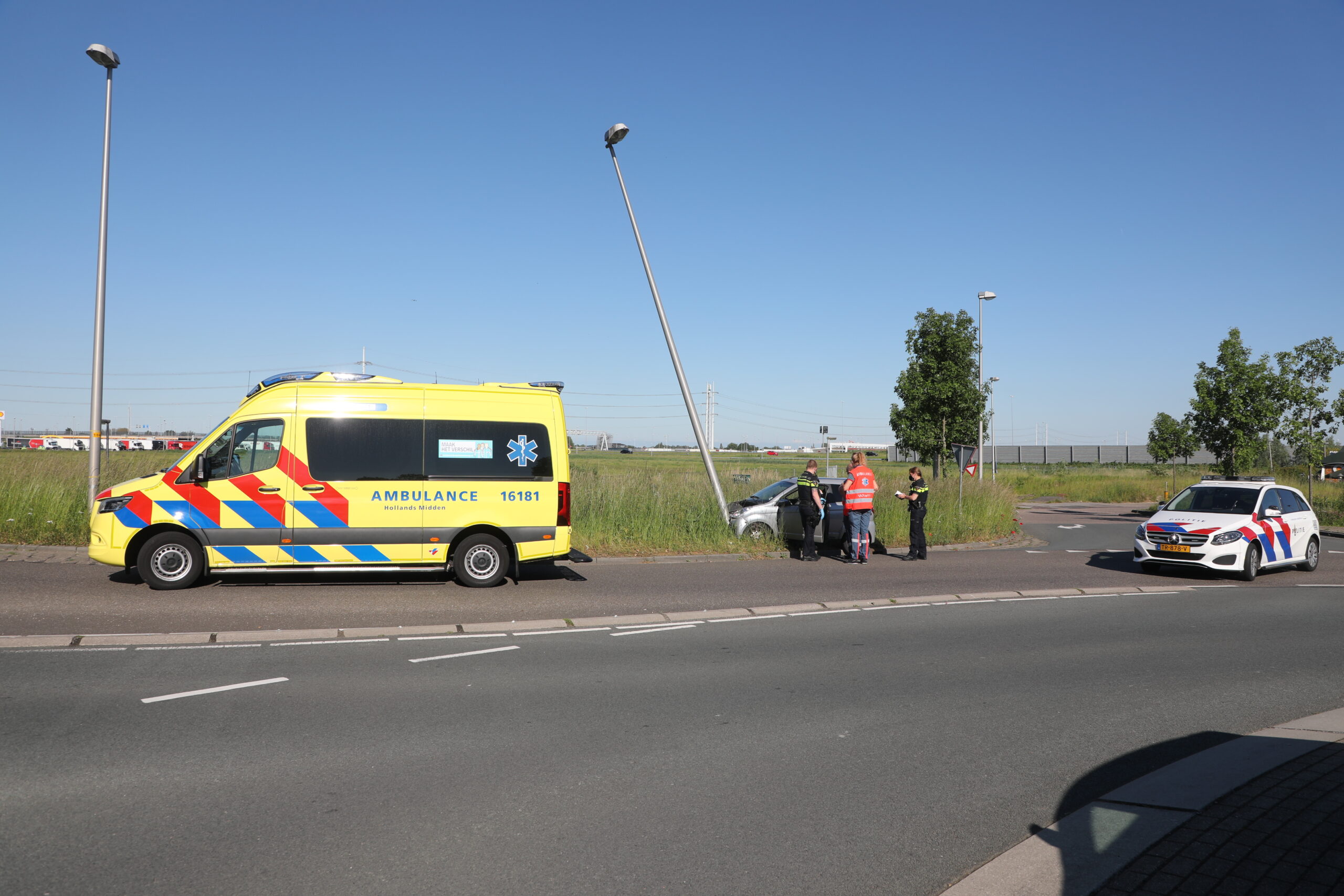 De bestuurder van een 45 km/u voertuig is zondagavond in Leiderdorp uit de bocht gevlogen en tegen een lantaarnpaal gebotst. Dat gebeurde bij de rotonde op de Persant Snoepweg toen de bestuurder het terrein van het McDonald’s verliet. De bestuurder is ter plaatse door ambulancepersoneel gecontroleerd en vervolgens overgebracht naar een ziekenhuis.