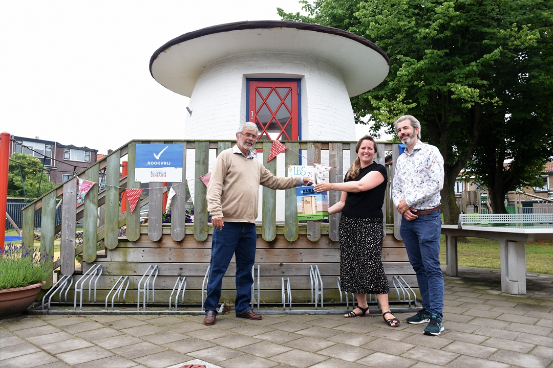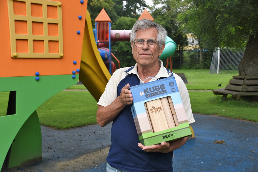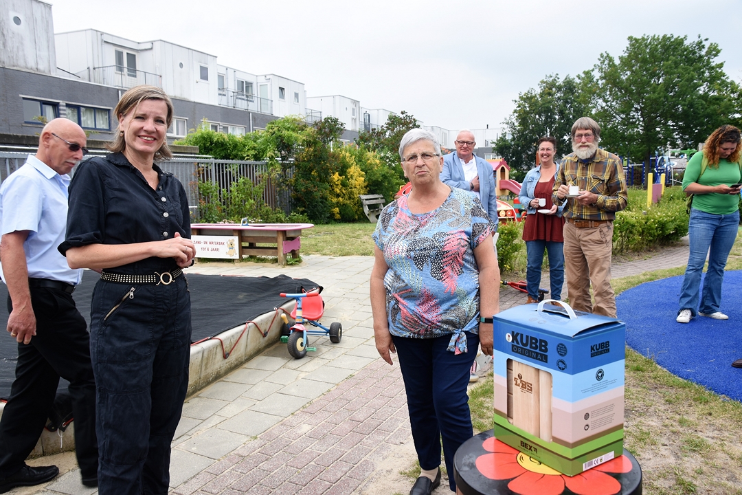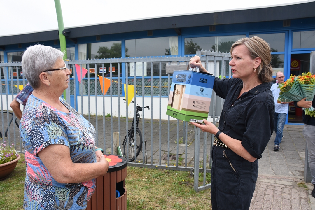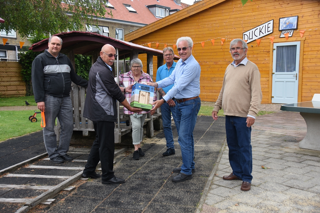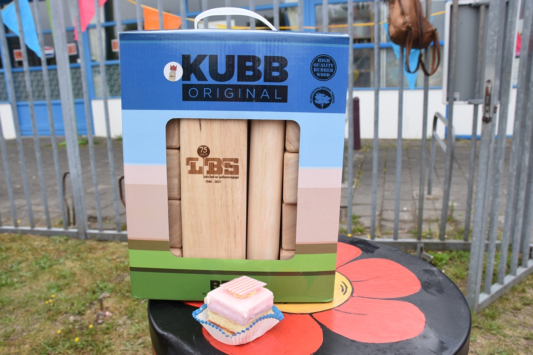 De Leidse Bond van Speeltuinverenigingen vierde zaterdag het 75-jarig bestaan. Een mijlpaal die de LBS niet zomaar voorbij wilde laten gaan en daarom kregen de besturen van alle veertien aangesloten speeltuinen een cadeautje: het spel KUBB, waarbij de kinderen met houten stokken een stapel eveneens houten blokken omver moeten gooien.