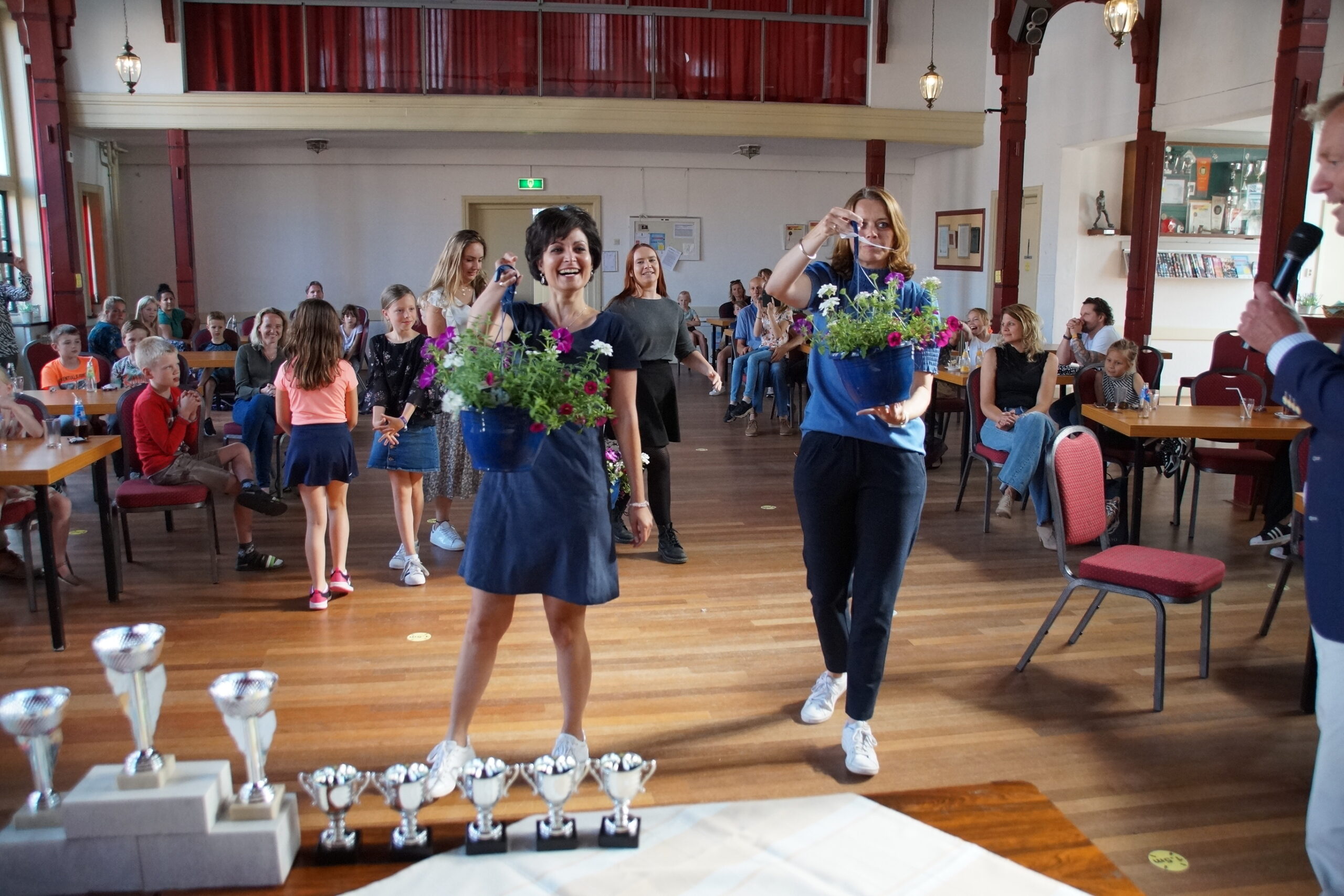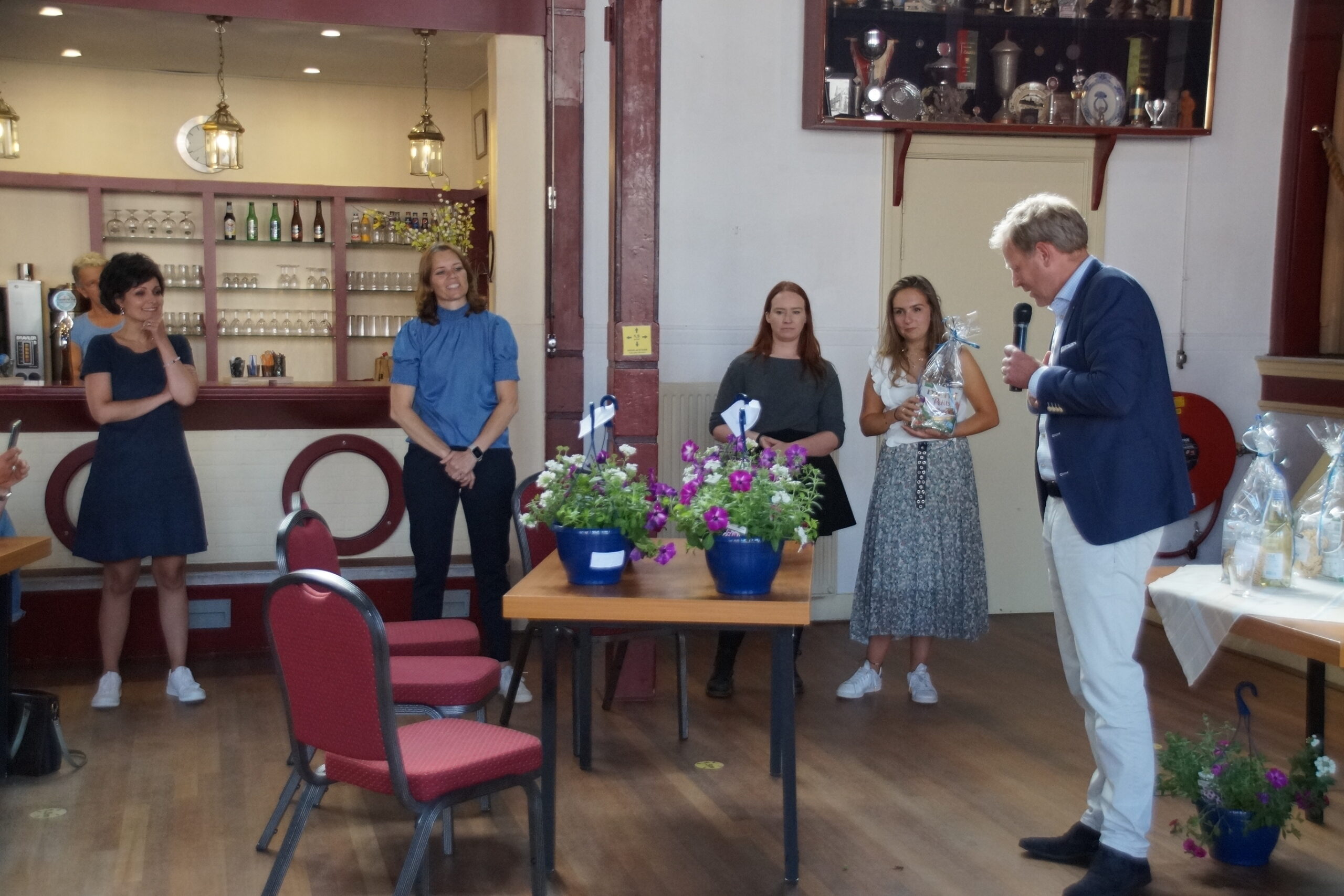 De juffen van de drie klassen deden mee in een eigen competitie. De leraressen presenteerden hun Bloemenzee op een originele wijze. “Na een zorgvuldige analyse reikte burgmeester Fred van Trigt de eerste prijs uit aan Juf Romee van basisschool het Avontuur.”