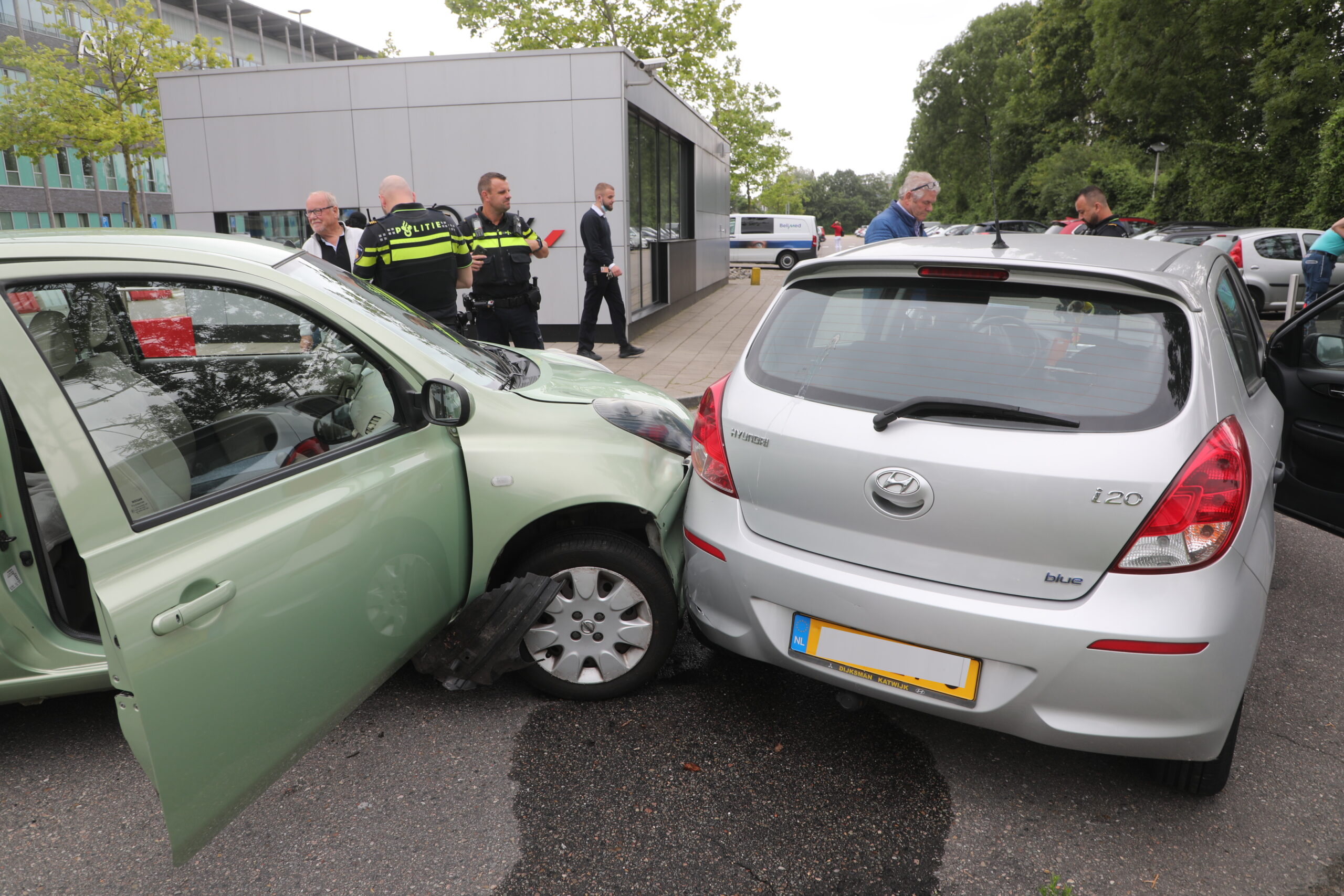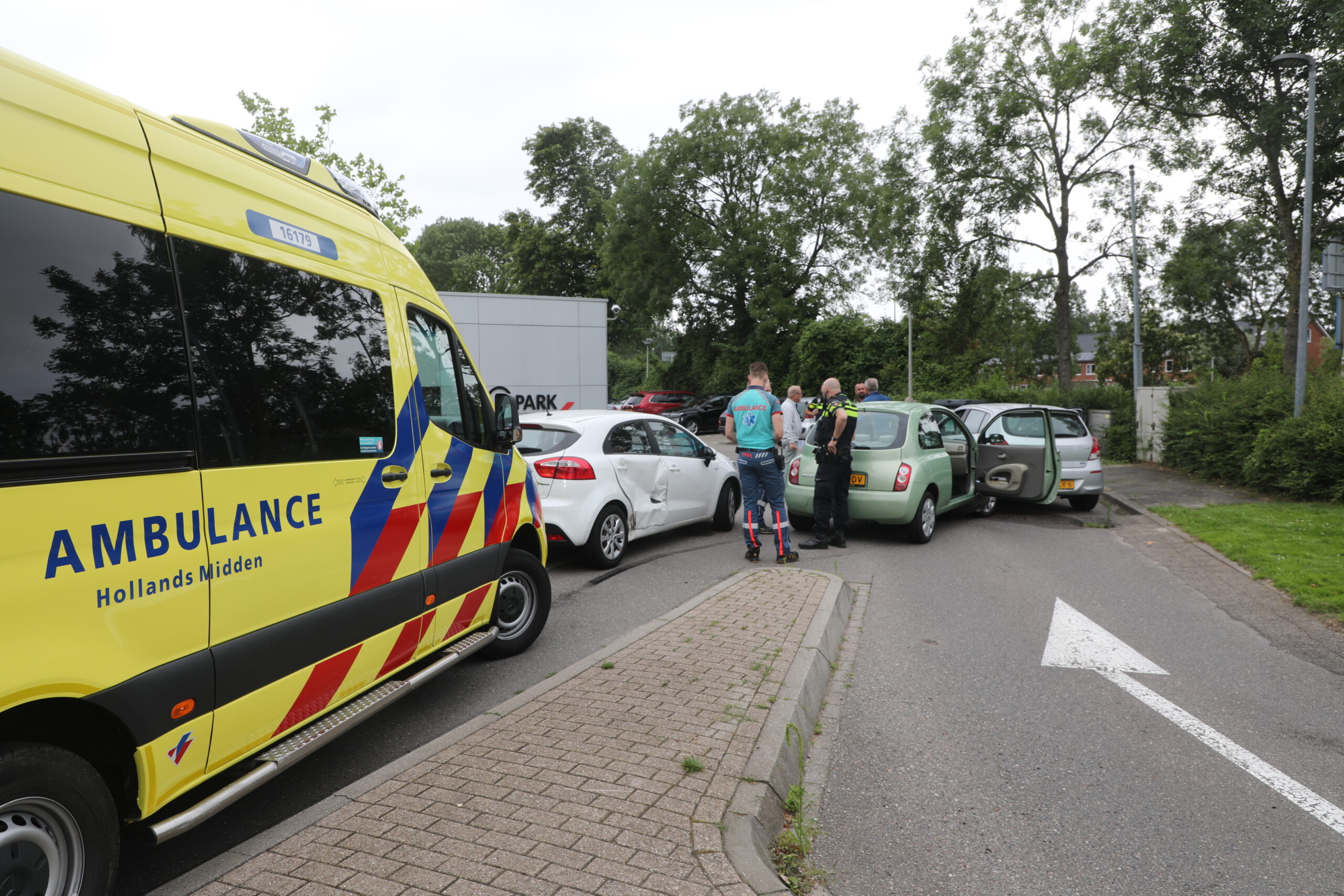 Op de parkeerplaats van het Alrijne Ziekenhuis aan de Simon Smitweg in Leiderdorp zijn donderdagmiddag drie personenauto’s op elkaar gebotst. De bestuurster van het groene voertuig is in de ambulance gecontroleerd maar hoefde niet mee naar het ziekenhuis.
