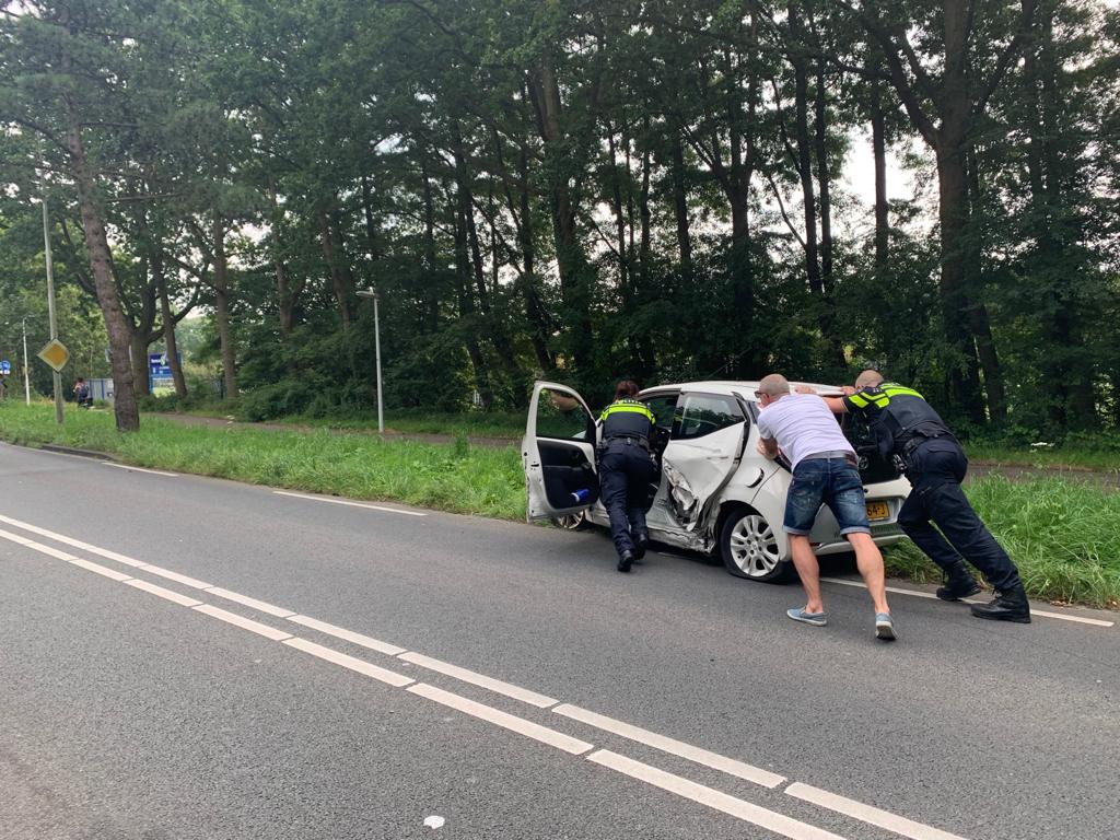 De botsing gebeurde ter hoogte van de voetbalvelden van UVS. Allebei de auto’s raakten zwaar beschadigd. De bestuurder die de aanrijding veroorzaakte, is in de ambulance aangehouden voor bezit dan wel handel in harddrugs. De bestuurster van de tweede auto is ter plekke nagekeken in de ambulance.