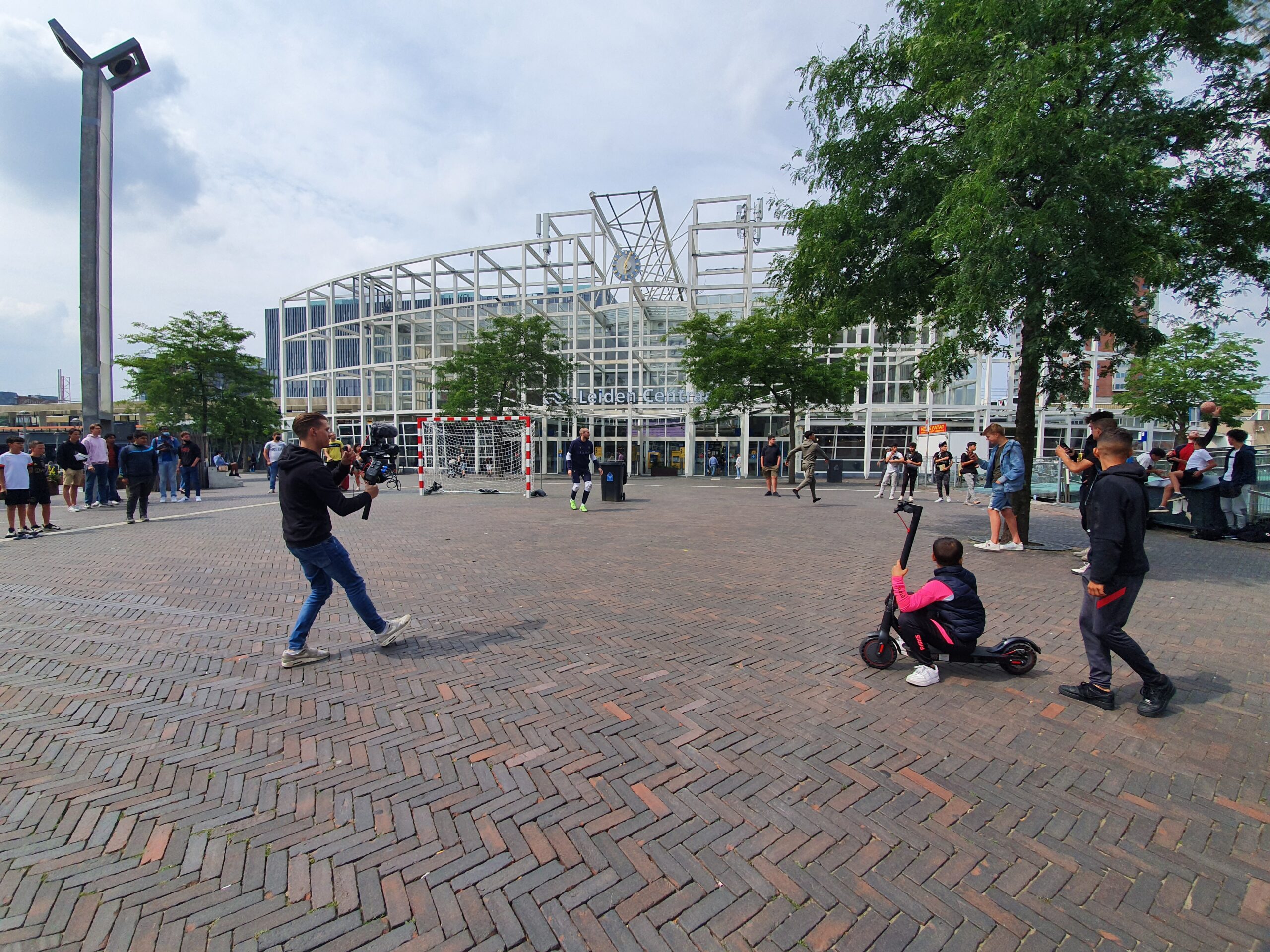 Soufiane Touzani zette gisteren zijn doeltjes voor Leiden Centraal. Leidse kinderen lieten daar hun kunsten zien aan de wereldberoemde freestyle-voetballer uit Rotterdam.