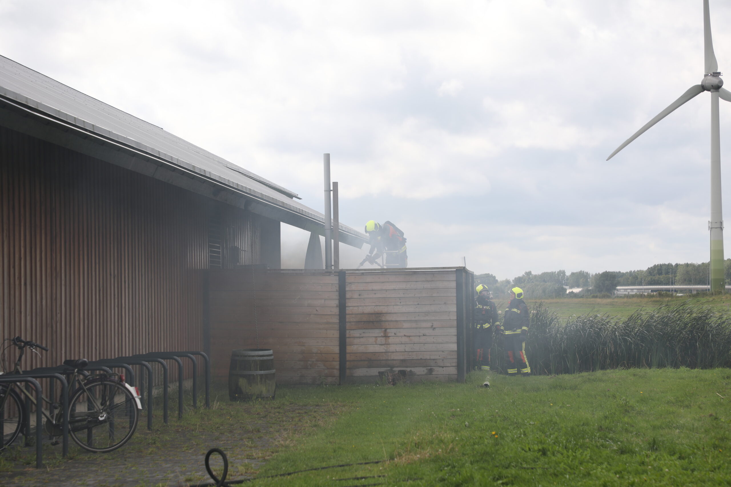 Bij de brand, die is ontstaan in een aanbouw, kwamen dikke rookwolken vrij. Rond 14.30 uur was het vuur onder controle en heeft de brandweer de houten beplating gesloopt om zeker te stellen dat in de muur geen brand meer woedde.