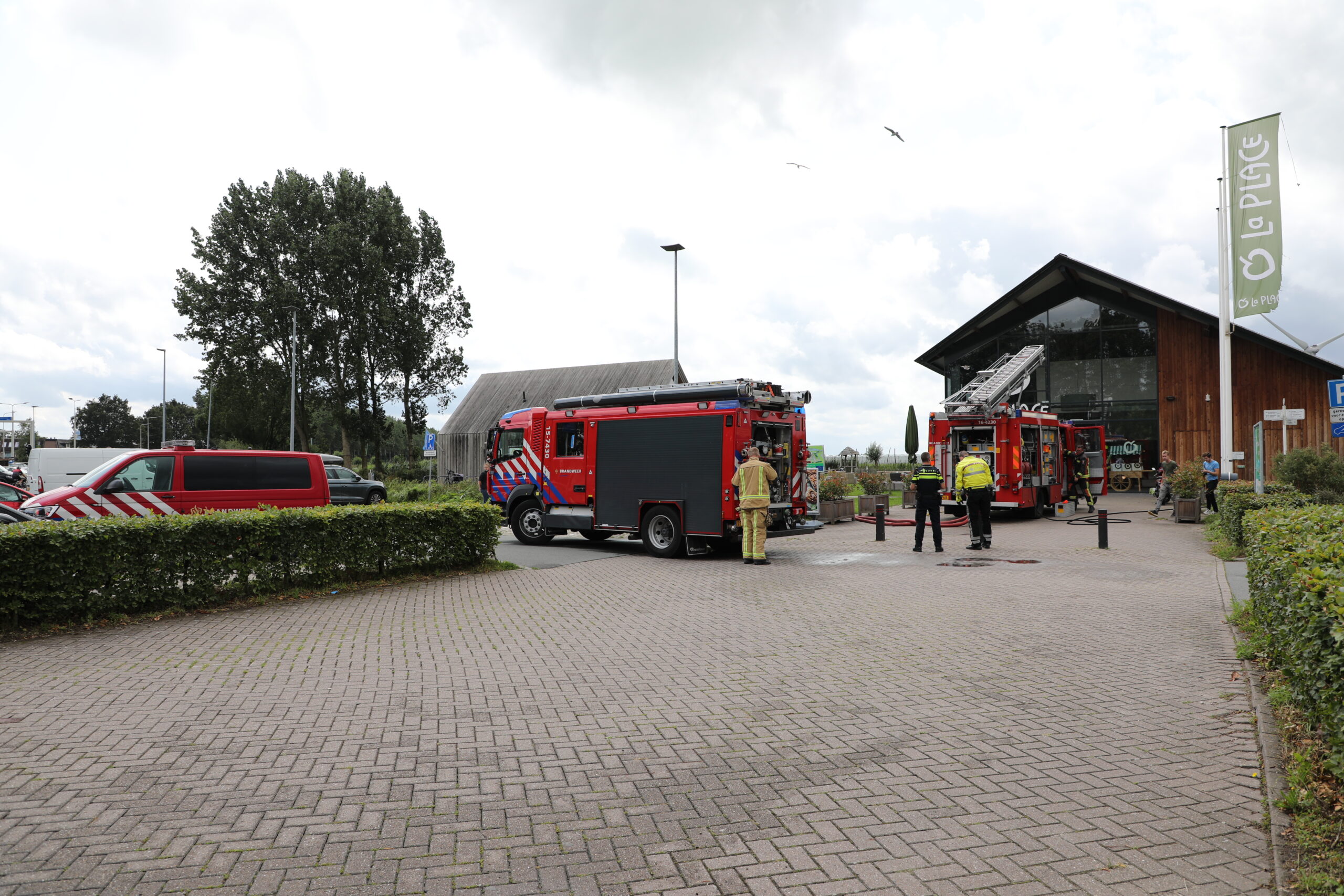 De La Place-vestiging aan het Groene Hartplein in Zoeterwoude is kort voor 14.00 uur ontruimd nadat brand was uitgebroken. De brandweer hield er direct na de eerste melding rekening mee dat het vuur zich verder zou verspreiden en ging daarom met meerdere blusvoertuigen richting Zoeterwoude. Later bleek van uitbreiding geen sprake te zijn.