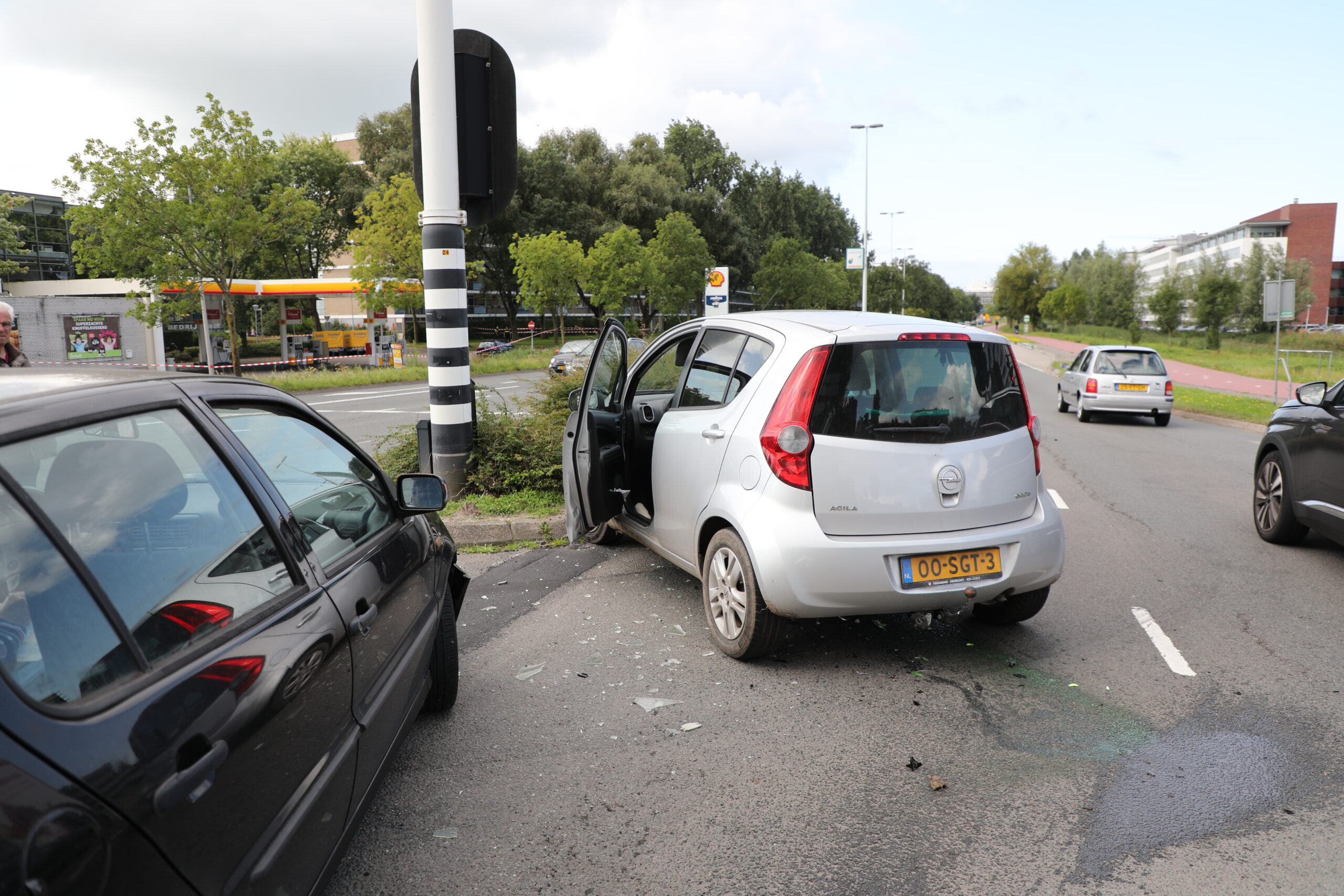 Op de kruising van de Plesmanlaan en de Darwinweg is zaterdagmiddag een aanrijding geweest tussen een tweetal personenauto’s. De aanrijding vond niet ver van het tankstation plaats. Daar loste de politie eerder vandaag een waarschuwingsschot bij een aanhouding.