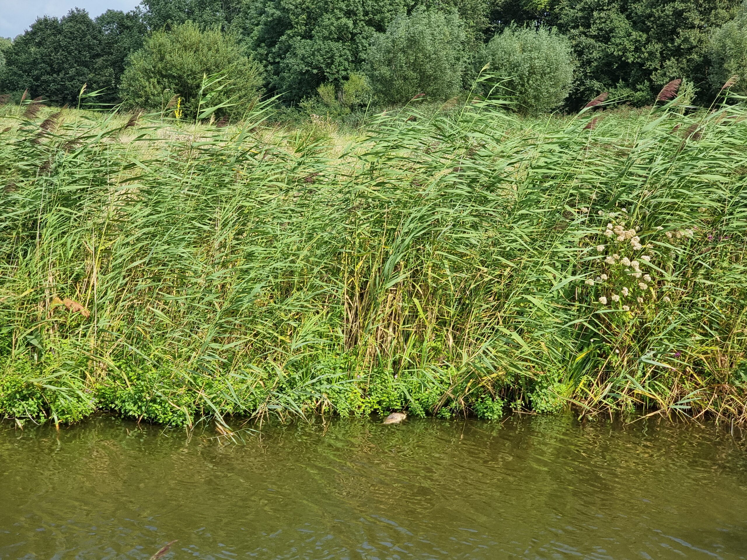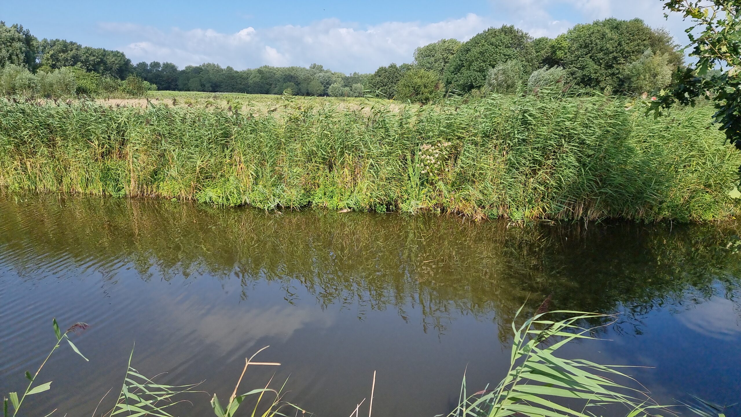 Wandelend langs de donkere sloten valt inderdaad op dat er geen waterplanten te zien zijn. Ook het riet is op veel plekken weg. “Kijk”, zegt Van Royen: “De oevers kalven helemaal af. Dat komt door de kreeften. Die opstaande aarden randen die je overal ziet, zitten vol gangen. Dat zijn hun nesten. En de rivierkreeften leggen honderden eieren per keer, dus het loopt hier finaal uit de hand.” De rivierkreeft graaft lange gangen, waardoor oevers inzakken. Dat is dan ook overal te zien.
