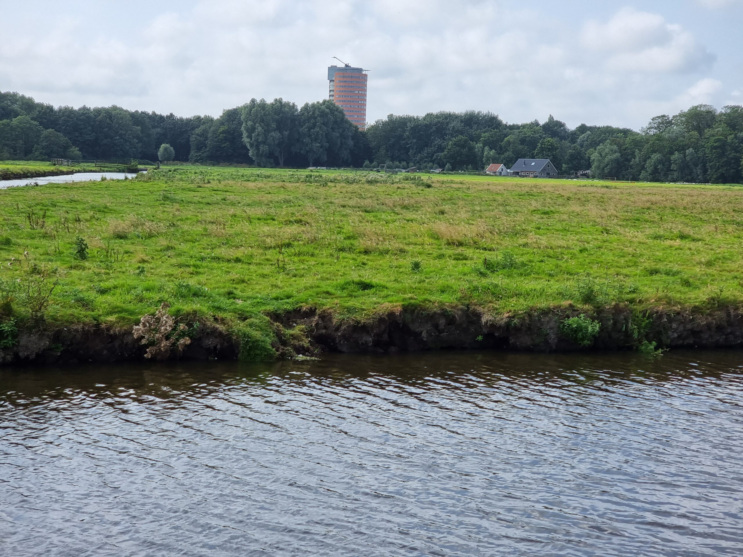Afkalvende oevers in Polderpark Cronesteyn, veroorzaakt door de Amerikaanse rivierkreeften die het gebied hebben overgenomen.