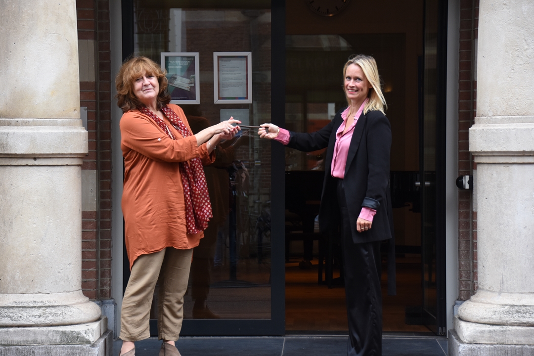 Vanaf 1 september is Pronk officieel de nieuwe algemeen directeur van de Leidse Schouwburg en Stadsgehoorzaal. Symbolisch kreeg zij daarom de sleutel van Schouwburg overhandigd. Een kleine ceremonie vond plaats; het echte afscheid van Ris staat nog op de planning.