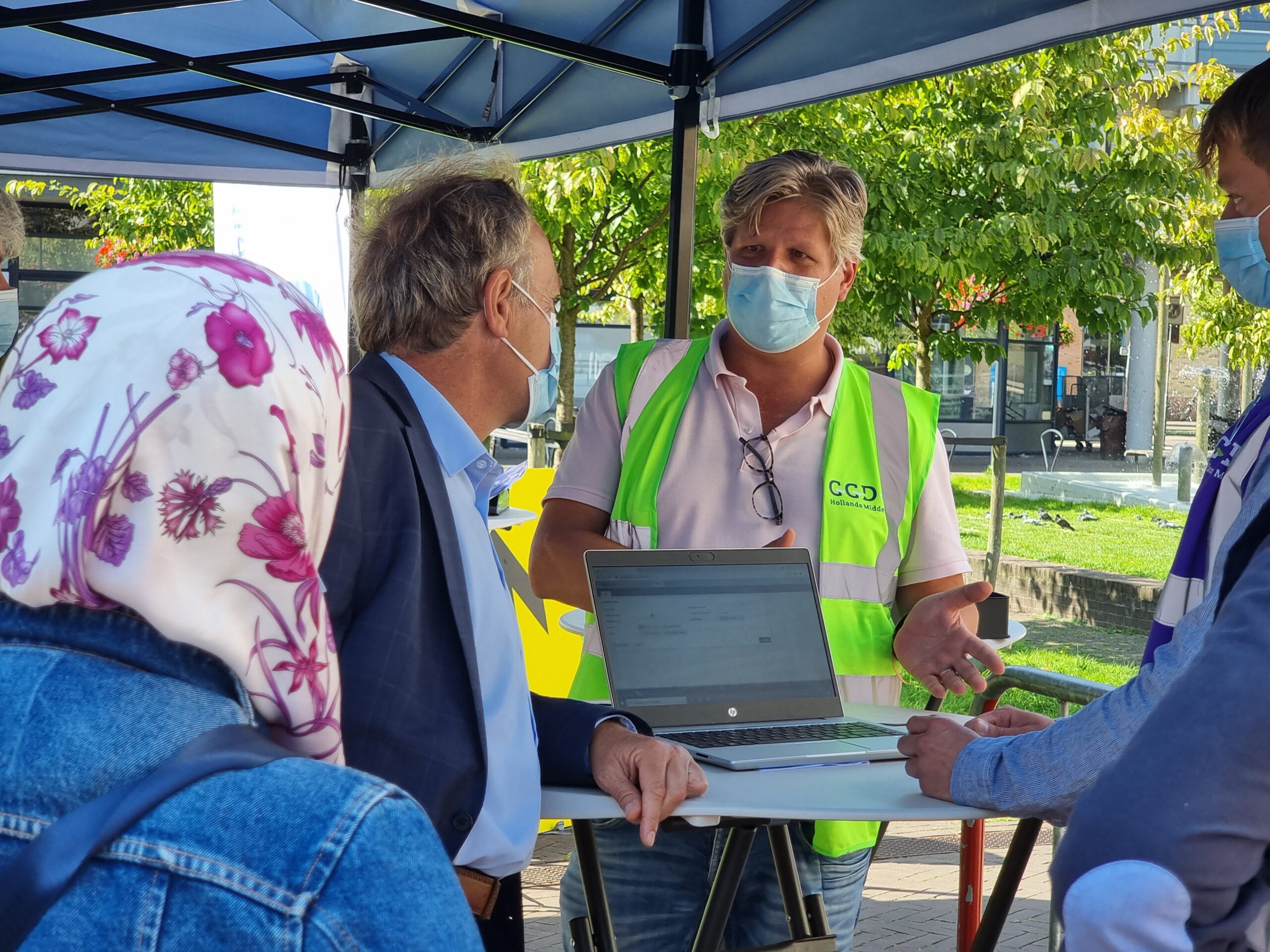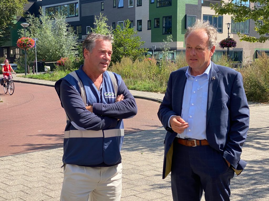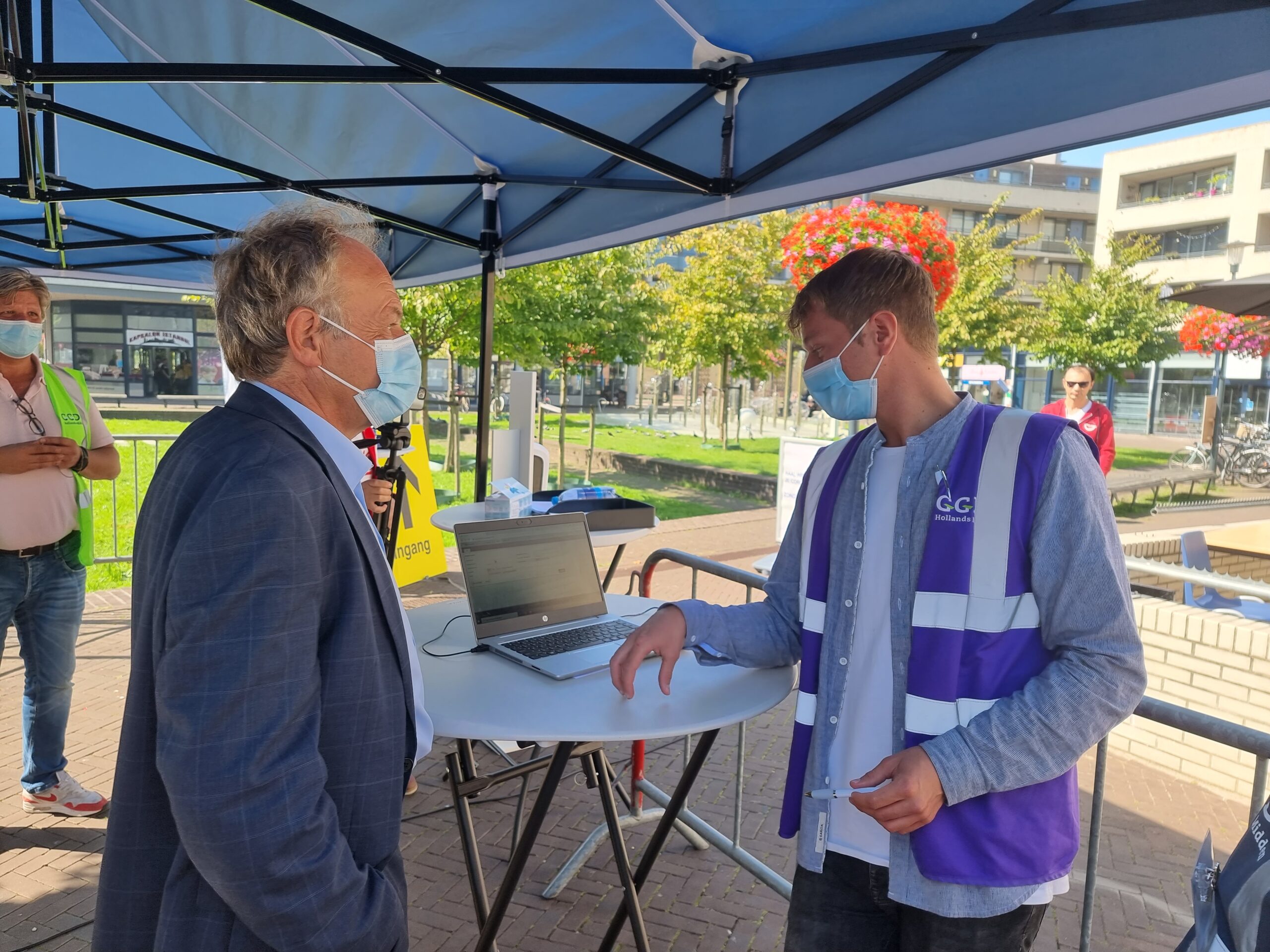 Vanmiddag kwam de Leidse burgemeester Lenferink ook even bij de prikbus kijken. Hij liet zich er door manager coronabestrijding Pieter Haasbeek van de GGD informeren over de manier van werken. Ook sprak hij met voorzitter Göksel Aribas van het bestuur van de Mimar Sinan Moskee. De moskee roept de eigen achterban voortdurend op om zich te laten vaccineren.