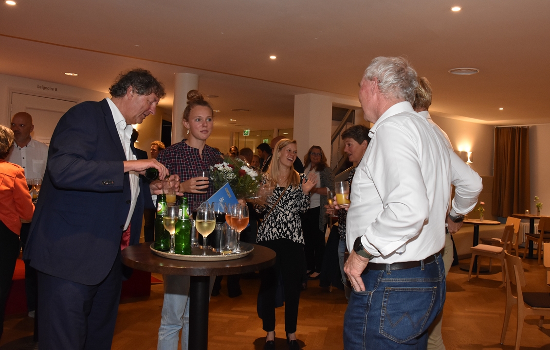 Wethouder Paul Dirkse bedankt de sporters voor hun mooie prestaties. Als eerbetoon kregen zij allen een zilveren Leidse legpenning en de medaillewinnaars kregen ook nog een cheque voor een weekend Scheveningen.