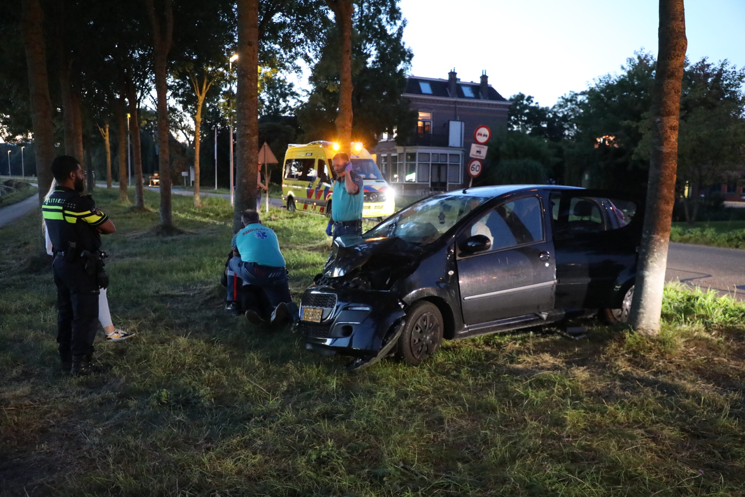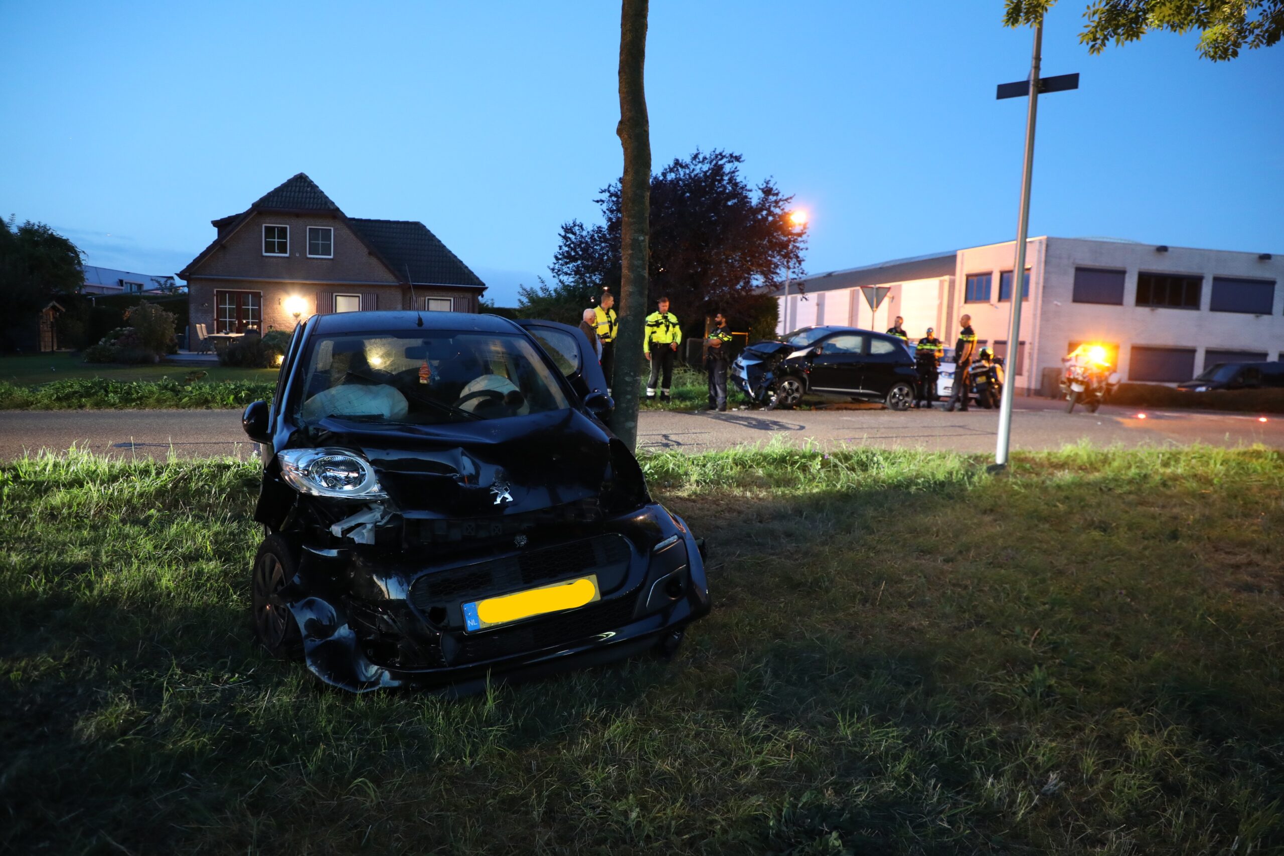 Door de klap van de botsing is één van de auto’s bovenop een biggenrug tot stilstand gekomen. De andere auto’s is aan de waterzijde van de weg tussen de bomen geschoven. Beiden auto’s zijn opgehaald door een bergingsbedrijf. De oorzaak van de botsing wordt door de politie onderzocht.
