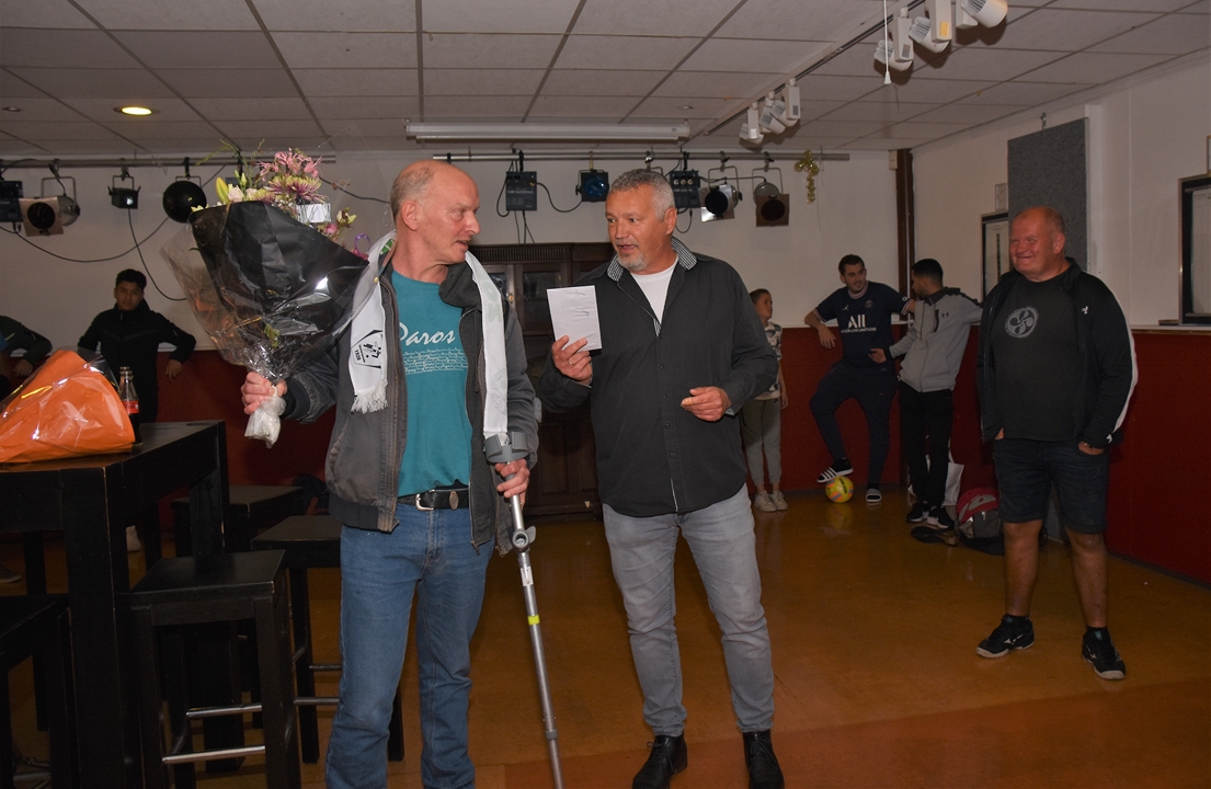 Reportage met speech van opvolger Hennie Kanbier en reacties van Aad Siera, Hennie Kanbier en oud-deelnemers aan de zaalvoetbalcompetitie.