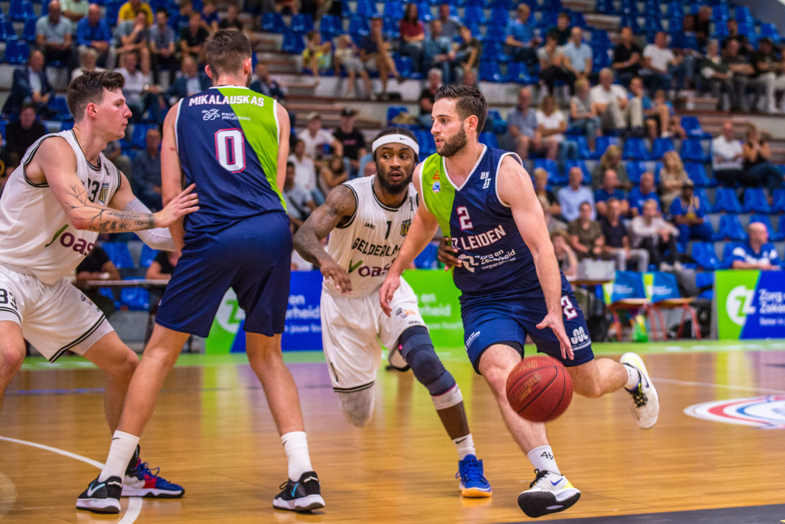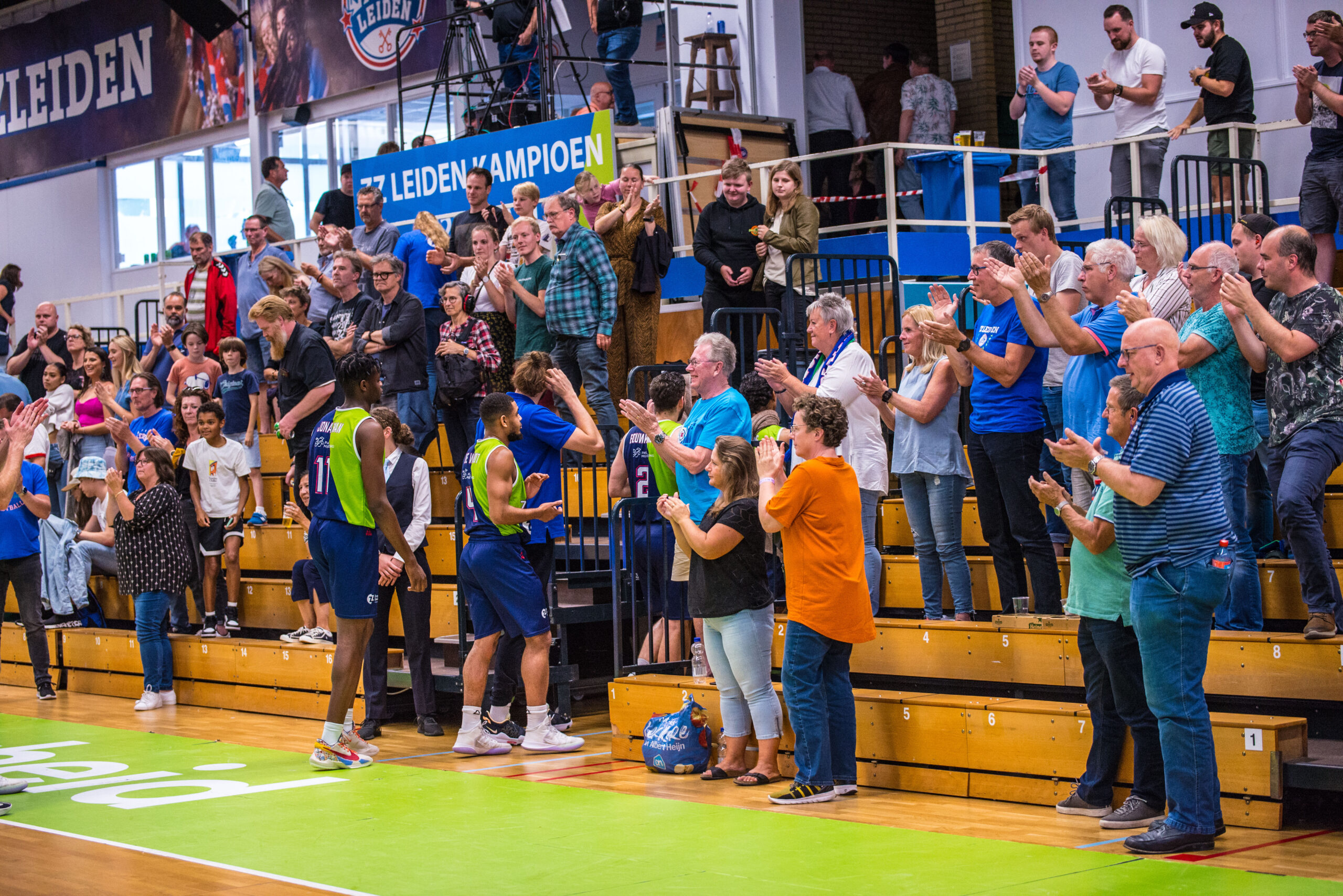 In het vierde kwart pakte Bouwknecht uit met vier driepunters, liet De Jong een staaltje ballhandling zien en plaatste Mikalauskas na een steal een lekker dunkje. Quincy Tjon Affo verzorgde zijn eerste Leidse score in competitieverband. Met een drietje schoot Bouwknecht zijn ploeg door de grens van de 100 punten heen: 101-72 en dat was meteen de grootste voorsprong. Jamayro de Windt tekende met een rake vrij worp voor de laatste Leidse score. Met 104-82 werd uiteindelijk de eerste winstpartij van de competitie in de wacht gesleept.
