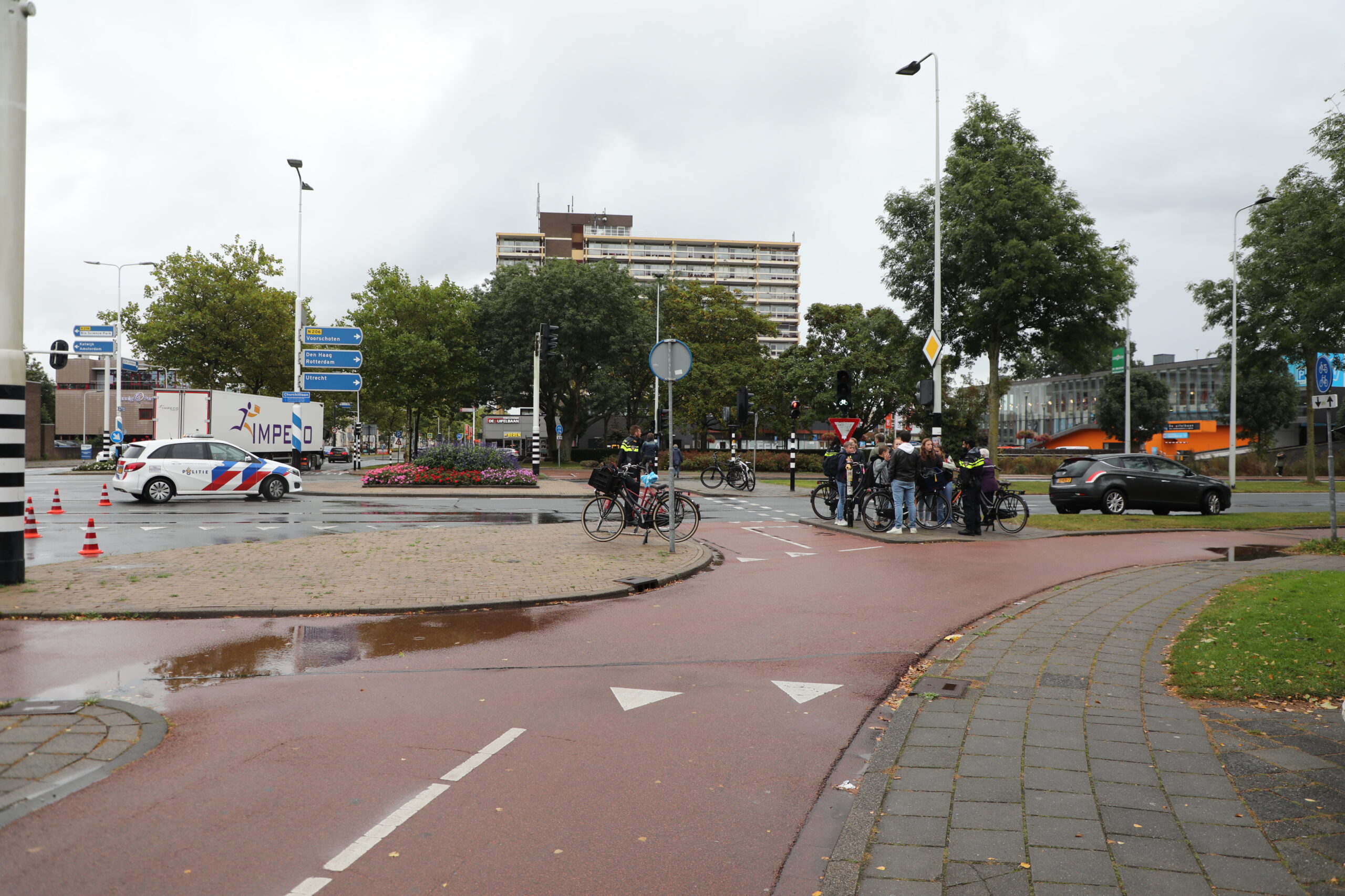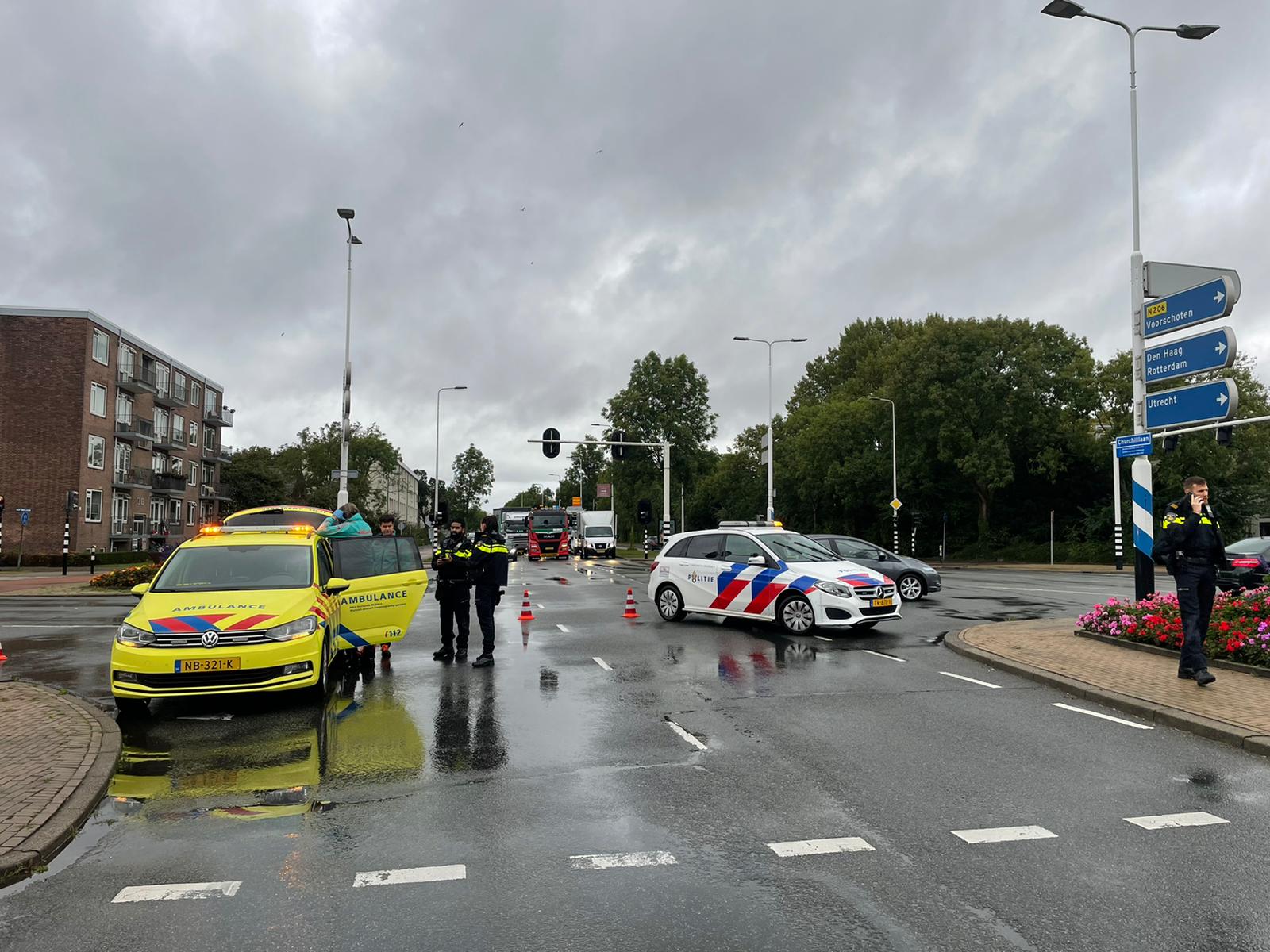 De Churchilllaan werd ter hoogte van de Vijf Meilaan in de richting van de Voorschoterweg korte tijd afgesloten voor al het autoverkeer. De politie doet verder onderzoek naar de doorgereden automobilist. Het ‘verlaten van een plaats ongeval’ is een misdrijf.