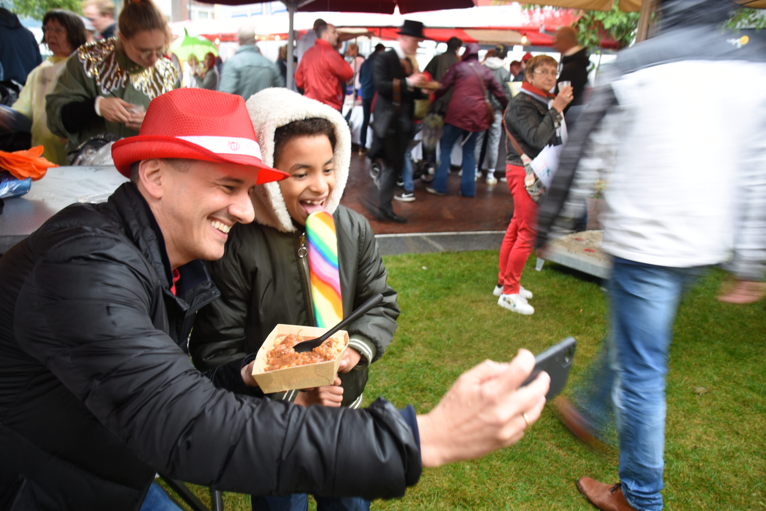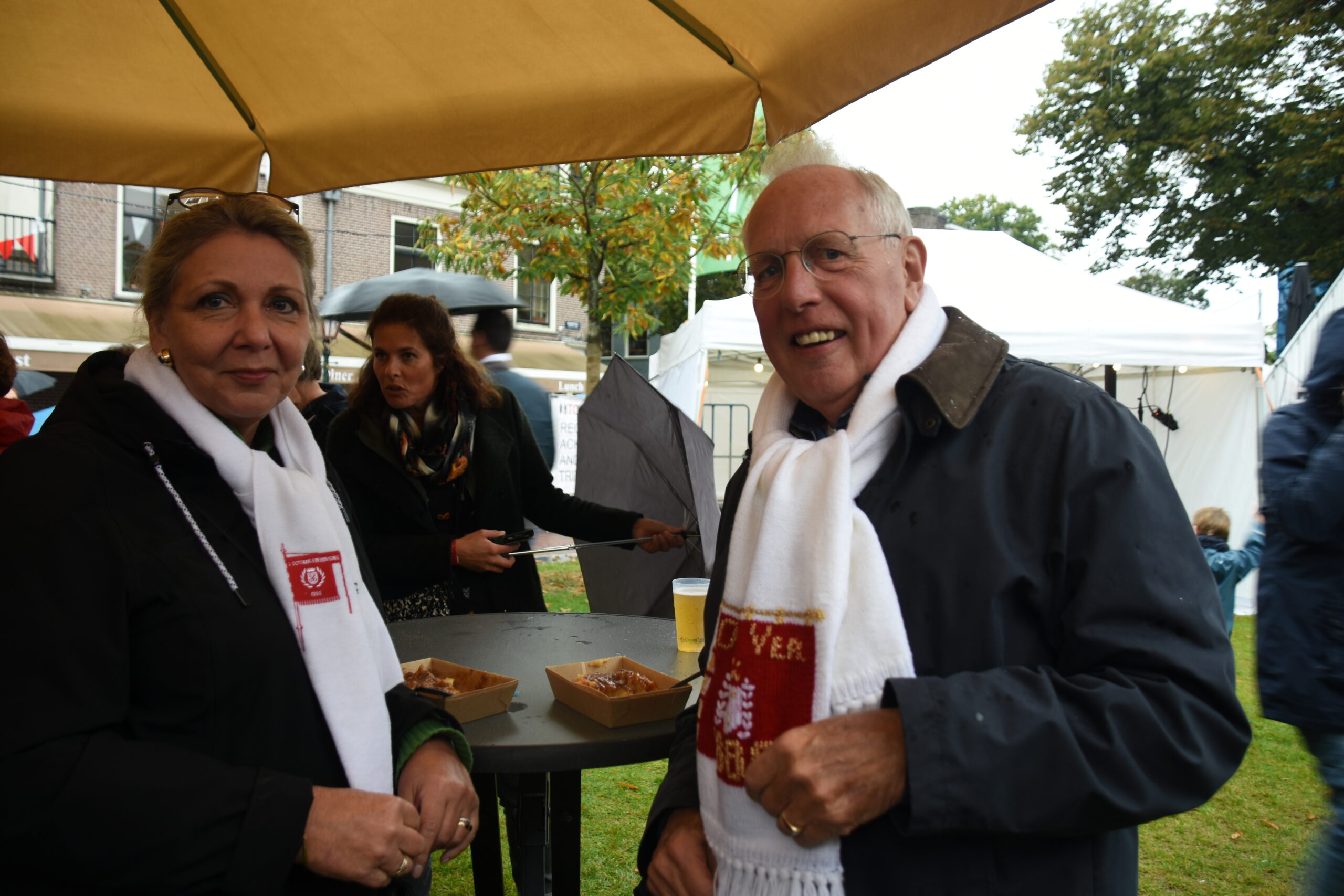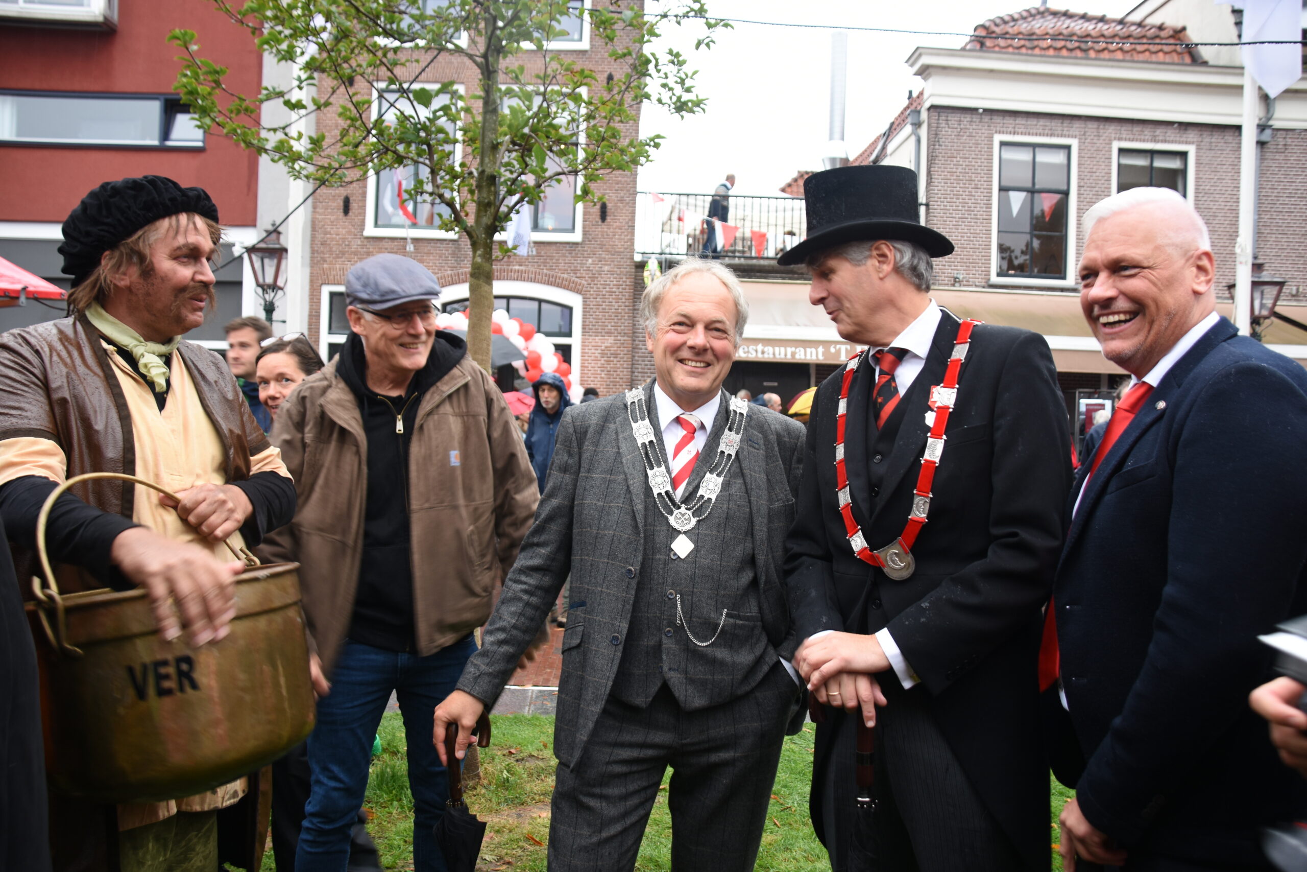 De hutspotmaaltijd was dit jaar op het Garenmarktplein in plaats van op de Hooglandse Kerkgracht. En dat had natuurlijk alles te maken met de coronamaatregelen. Als het aan de burgemeester ligt, wordt dat geen traditie. “Ik hoop dat het volgend jaar weer bij de kerk is, het is daar altijd heel gezellig.”