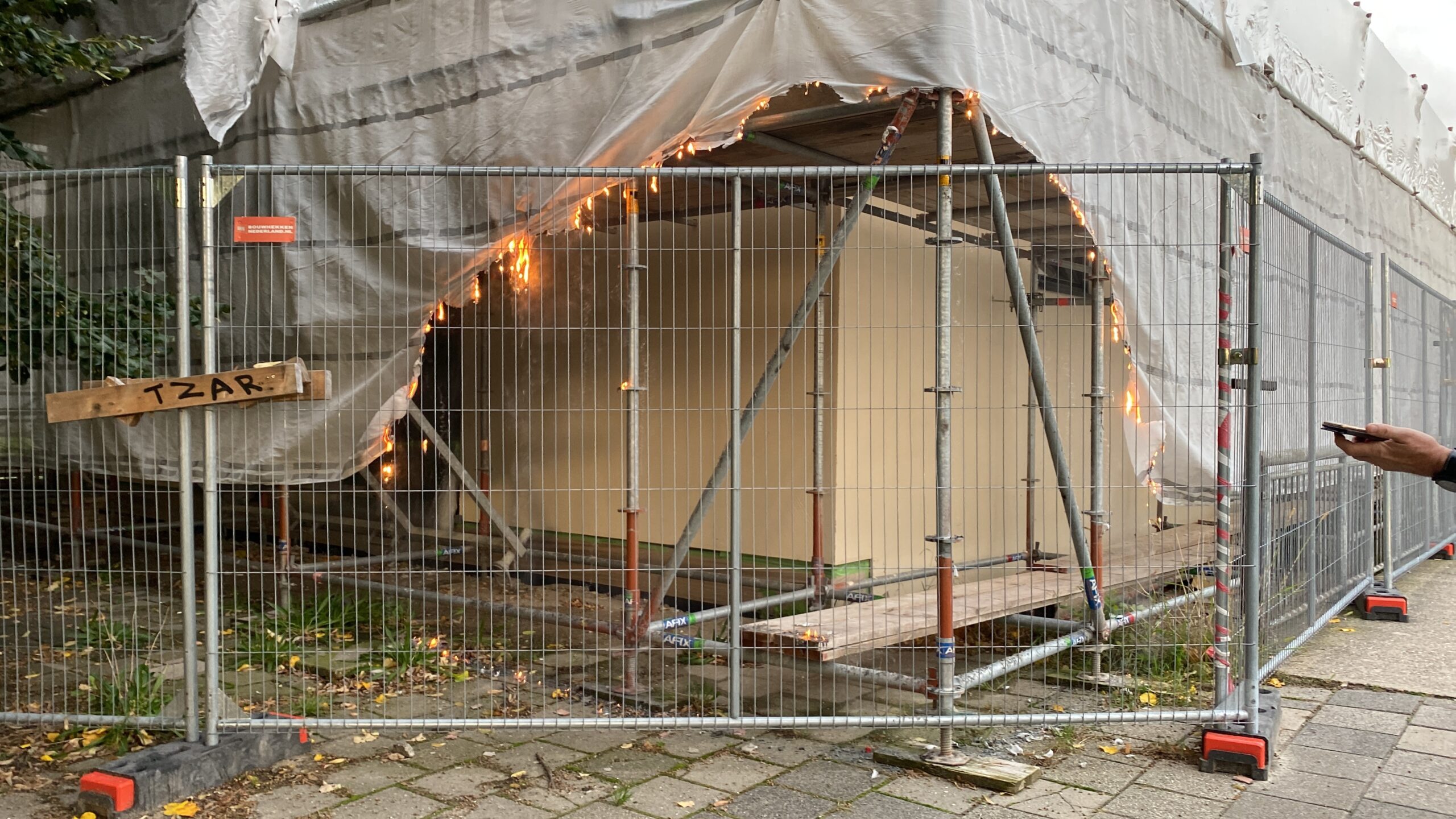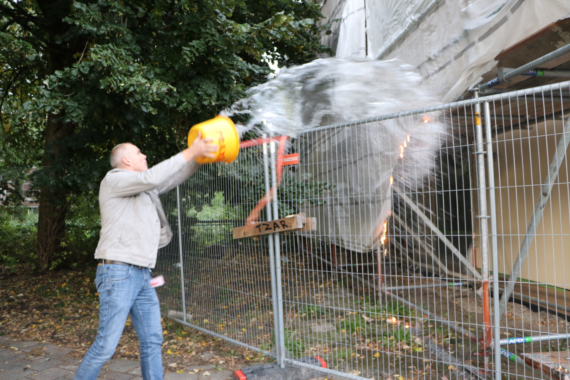 Een steigerdoek aan een gebouw op een bouwplaats aan de Tollenaersingel in Leiderdorp is donderdag rond 18.00 uur in brand gevlogen.