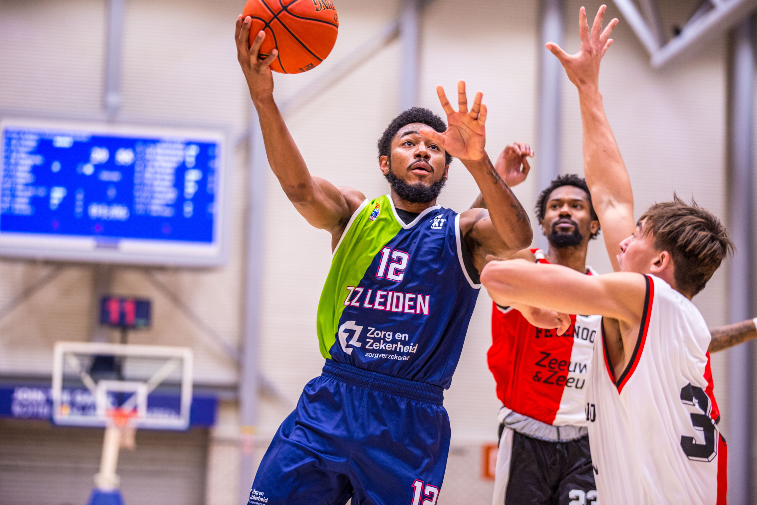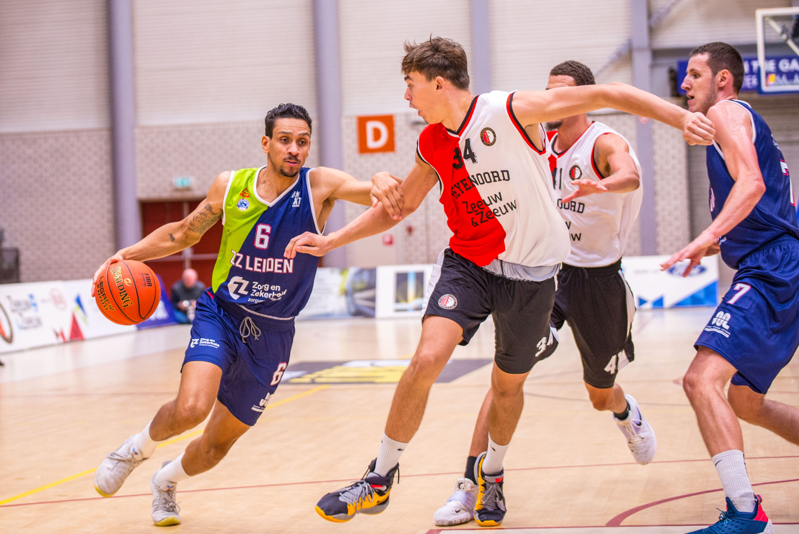 Feyenoord had in de laatste wedstrijd tegen Basketbal Academie Limburg laten zien dat het een goede ploeg heeft, maar de Limburgers werden eenvoudig aan de kant gezet. De afwezigheid van de 2.06 meter lange Amerikaan Jonathan Holton betekende wel minder lengte bij de Rotterdammers. En dat buitte ZZ Leiden vakkundig uit.